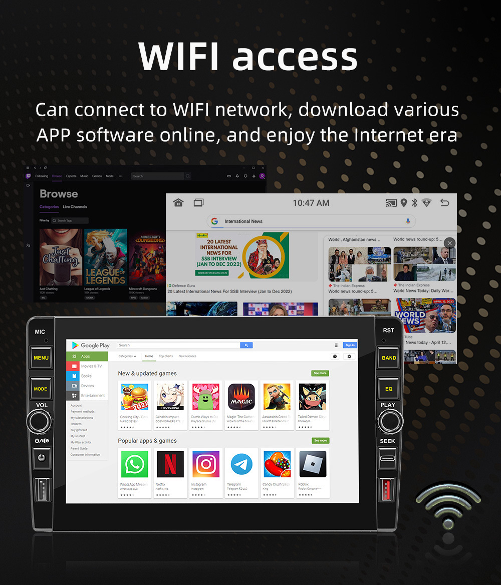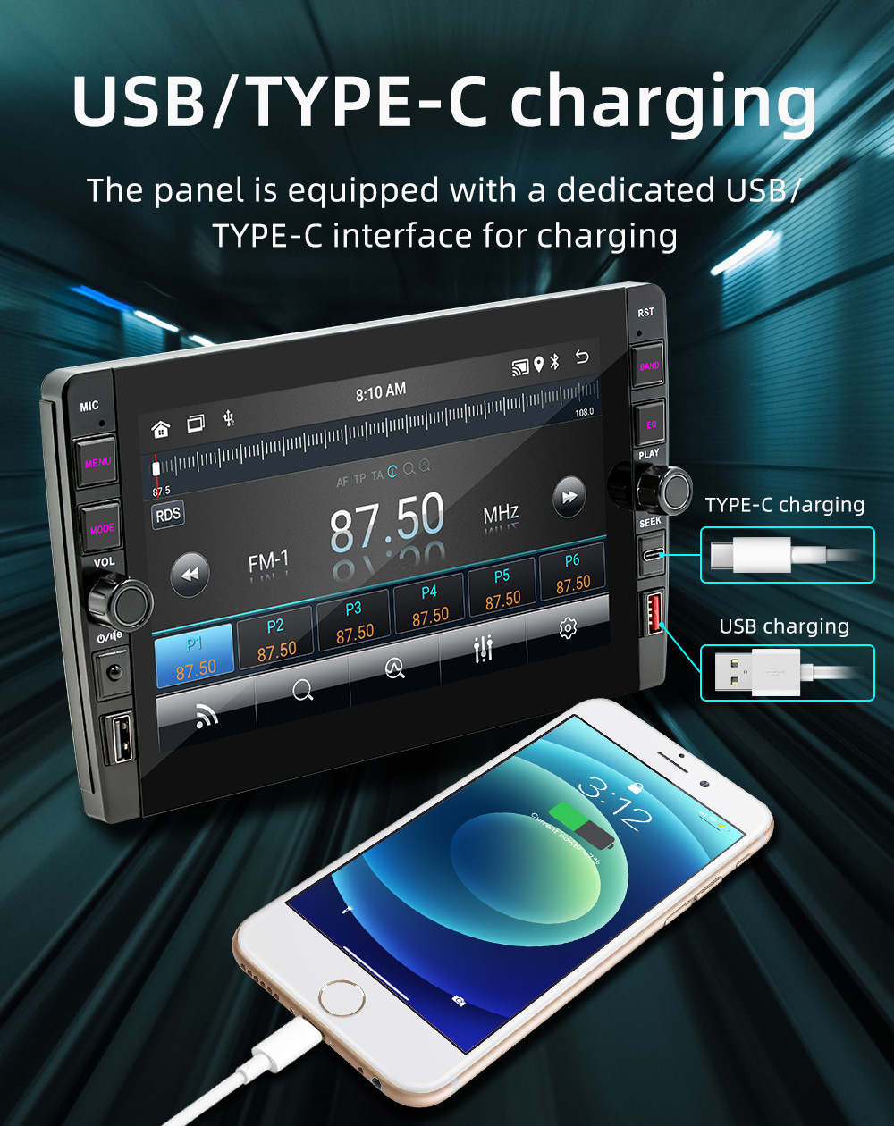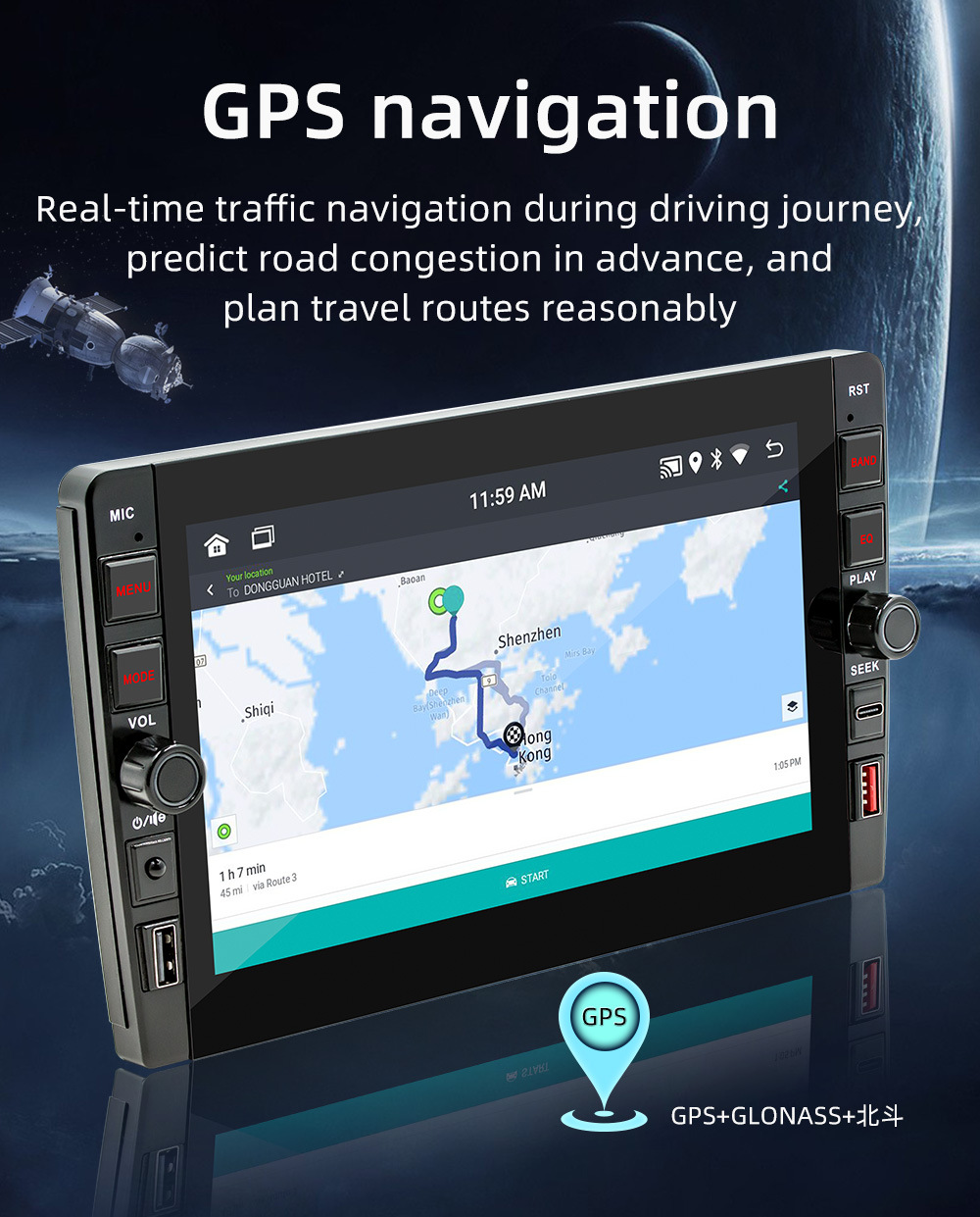 Carplay inalámbrico de 9 pulgadas HD pantalla grande imagen de marcha atrás coche Android navegación GPS reproductor Bluetooth
