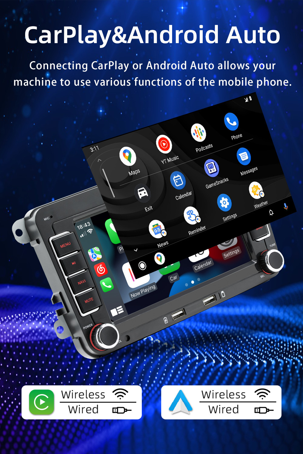 7 pulgadas+Carplay+Acceso a Internet WiFi