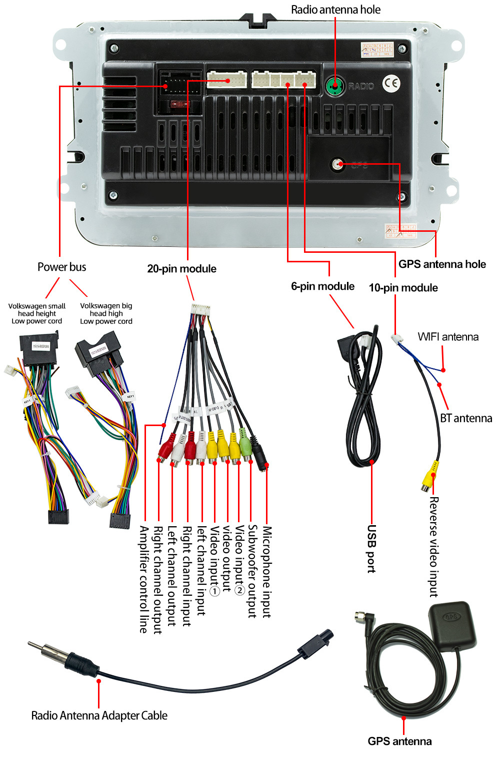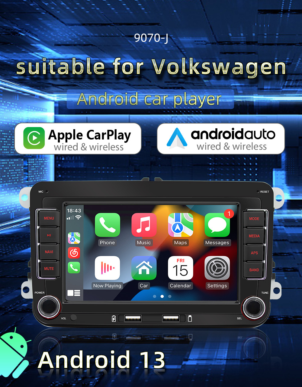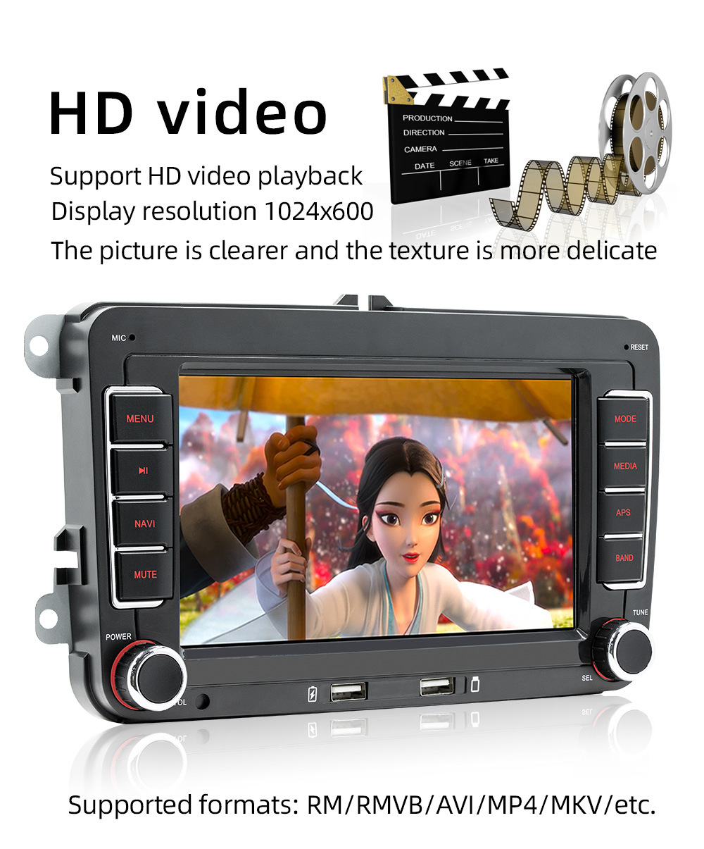 Sistema de Navegación para Automóvil Volkswagen de 7 Pulgadas, Android, GPS, Pantalla Grande de Alta Definición, Conexión Inalámbrica CarPlay, Cámara de Reversa