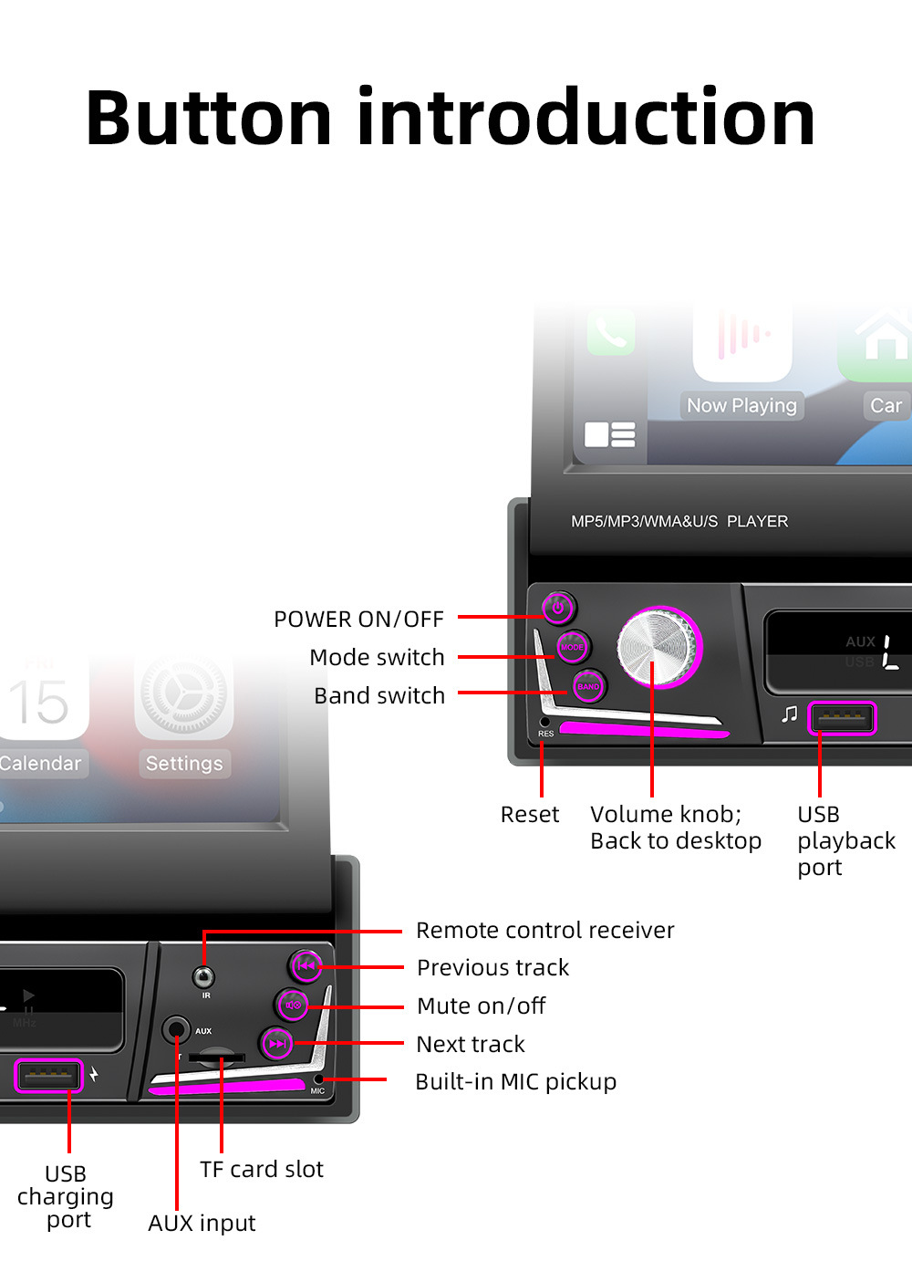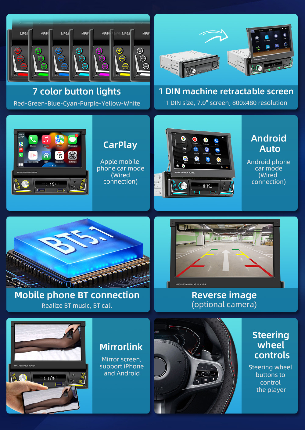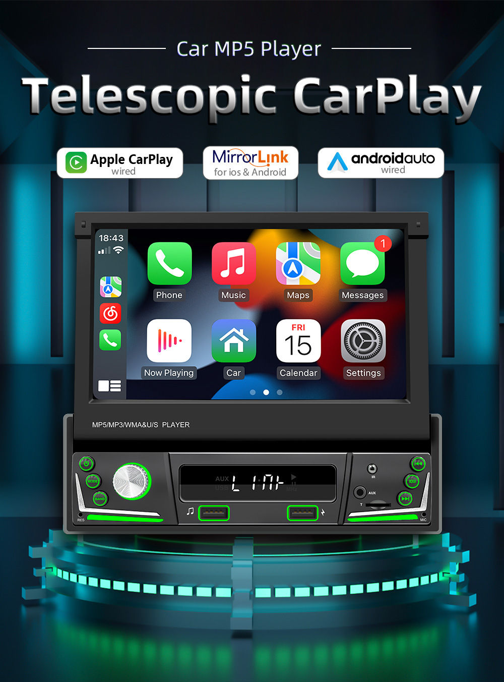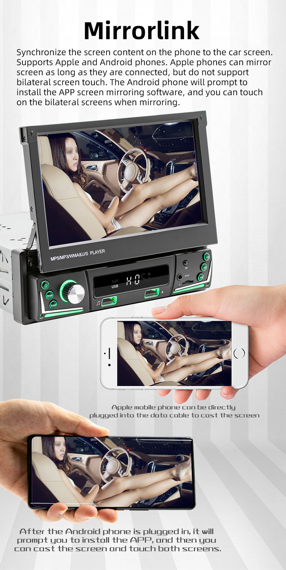 Pantalla retractable inalámbrica del jugador HD del coche MP5 de Carplay que invierte la radio toda junta de la imagen