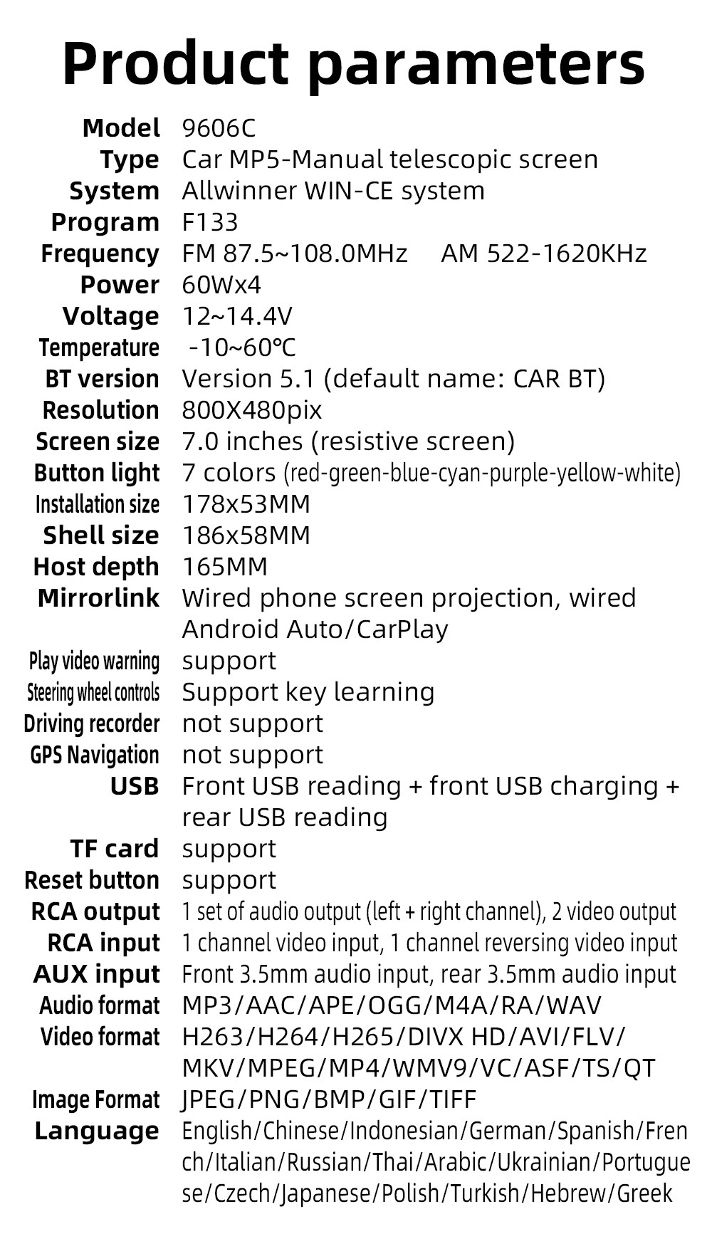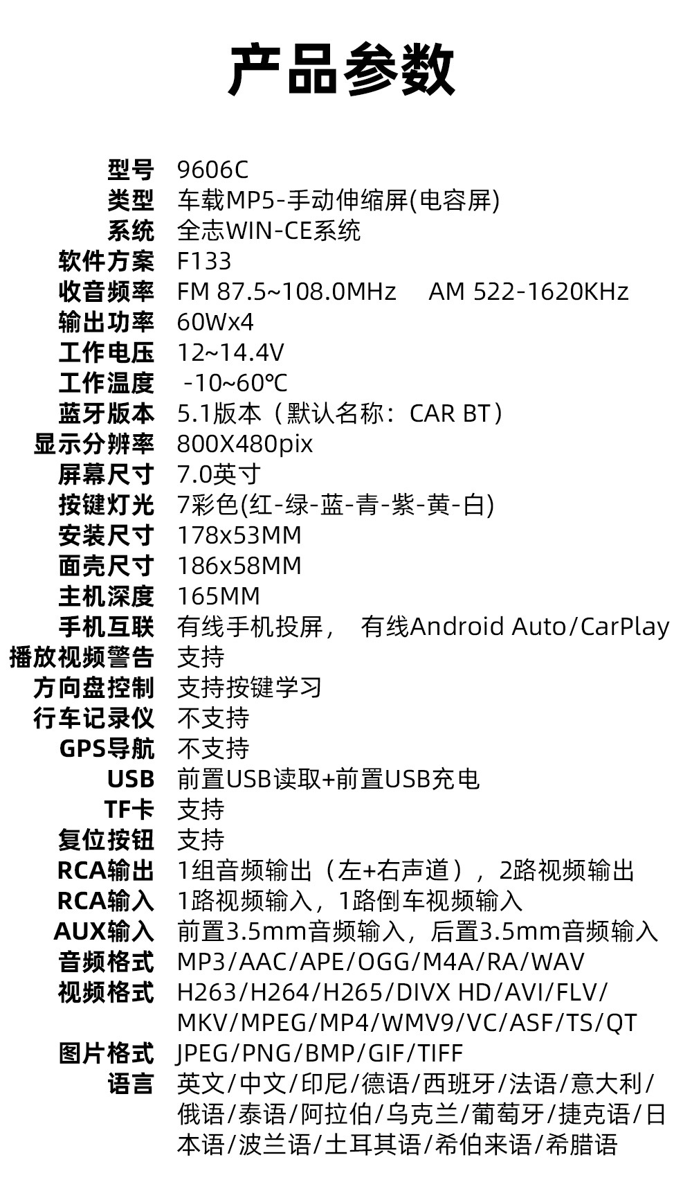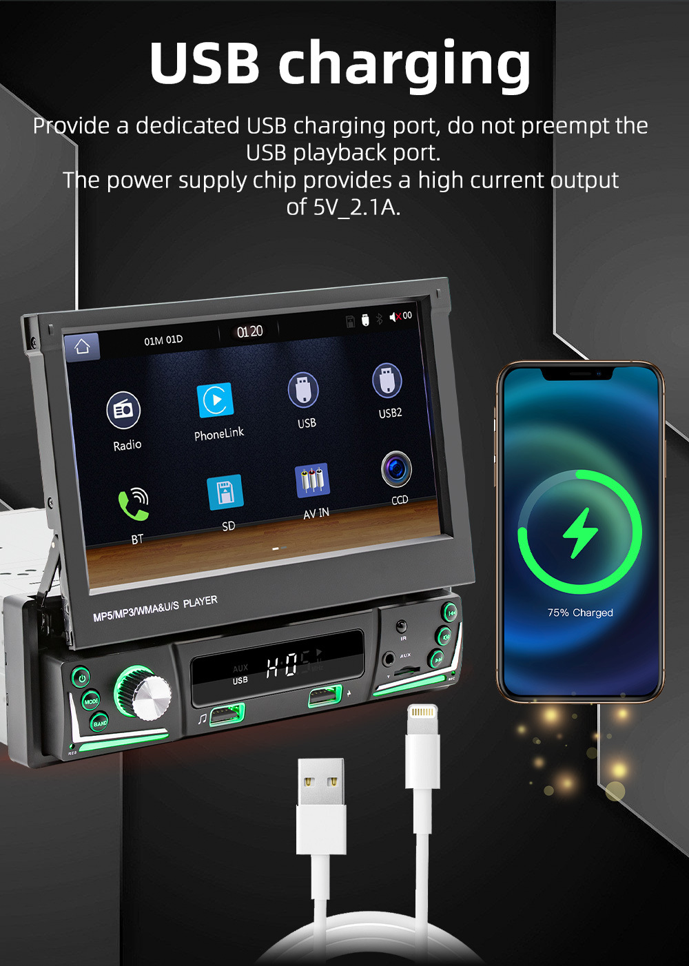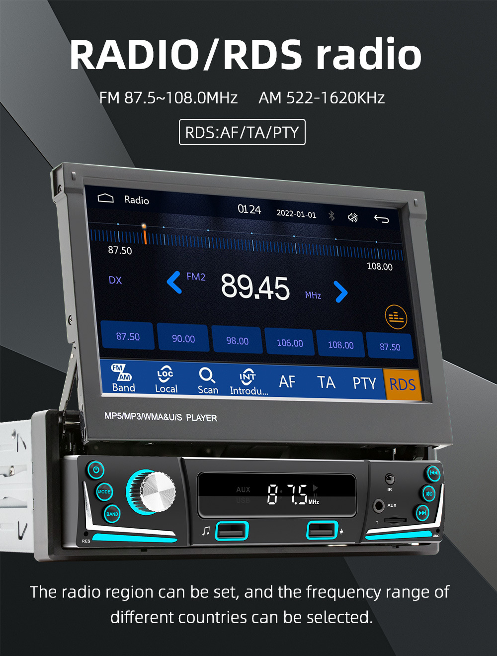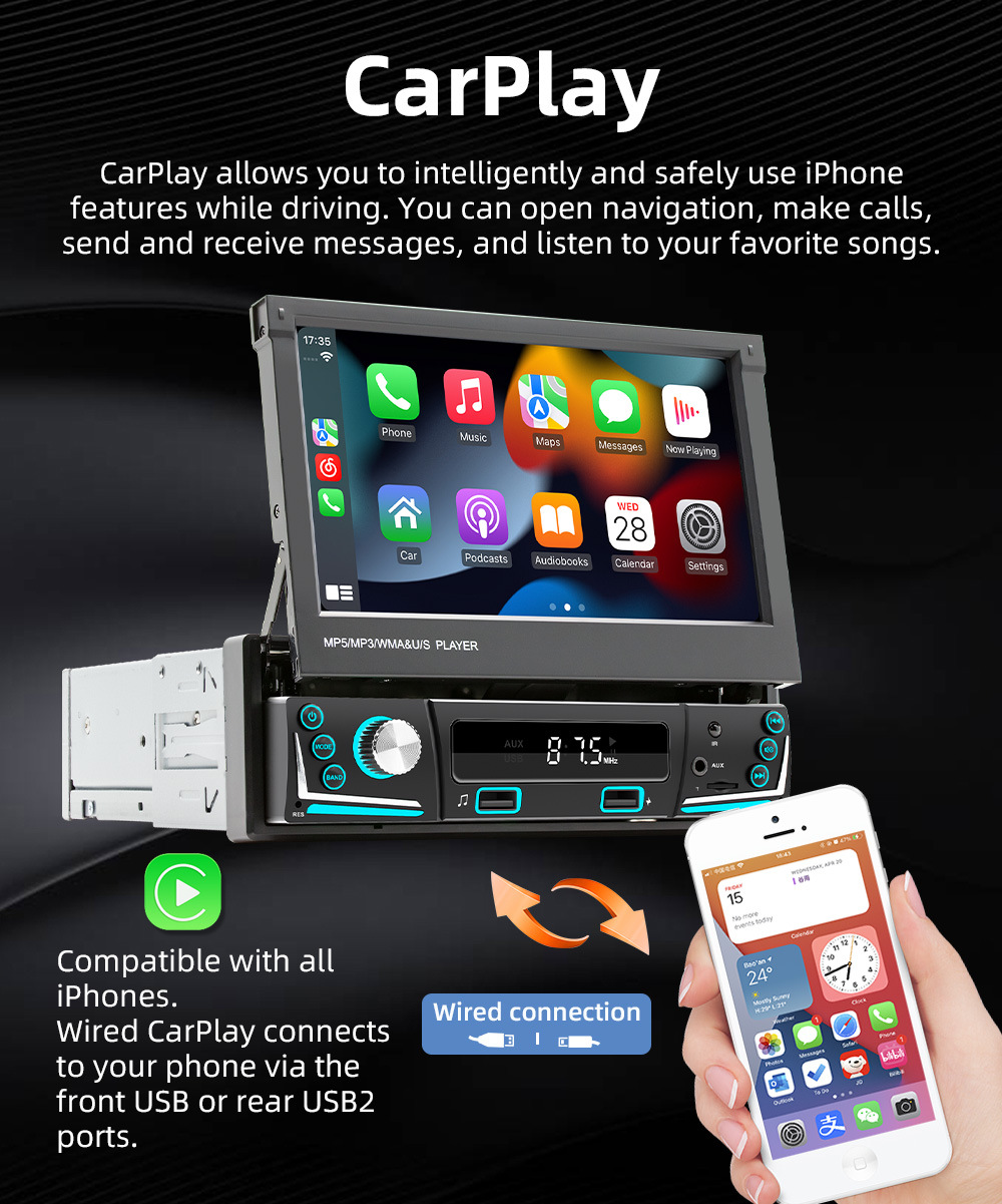 Pantalla retractable inalámbrica del jugador HD del coche MP5 de Carplay que invierte la radio toda junta de la imagen