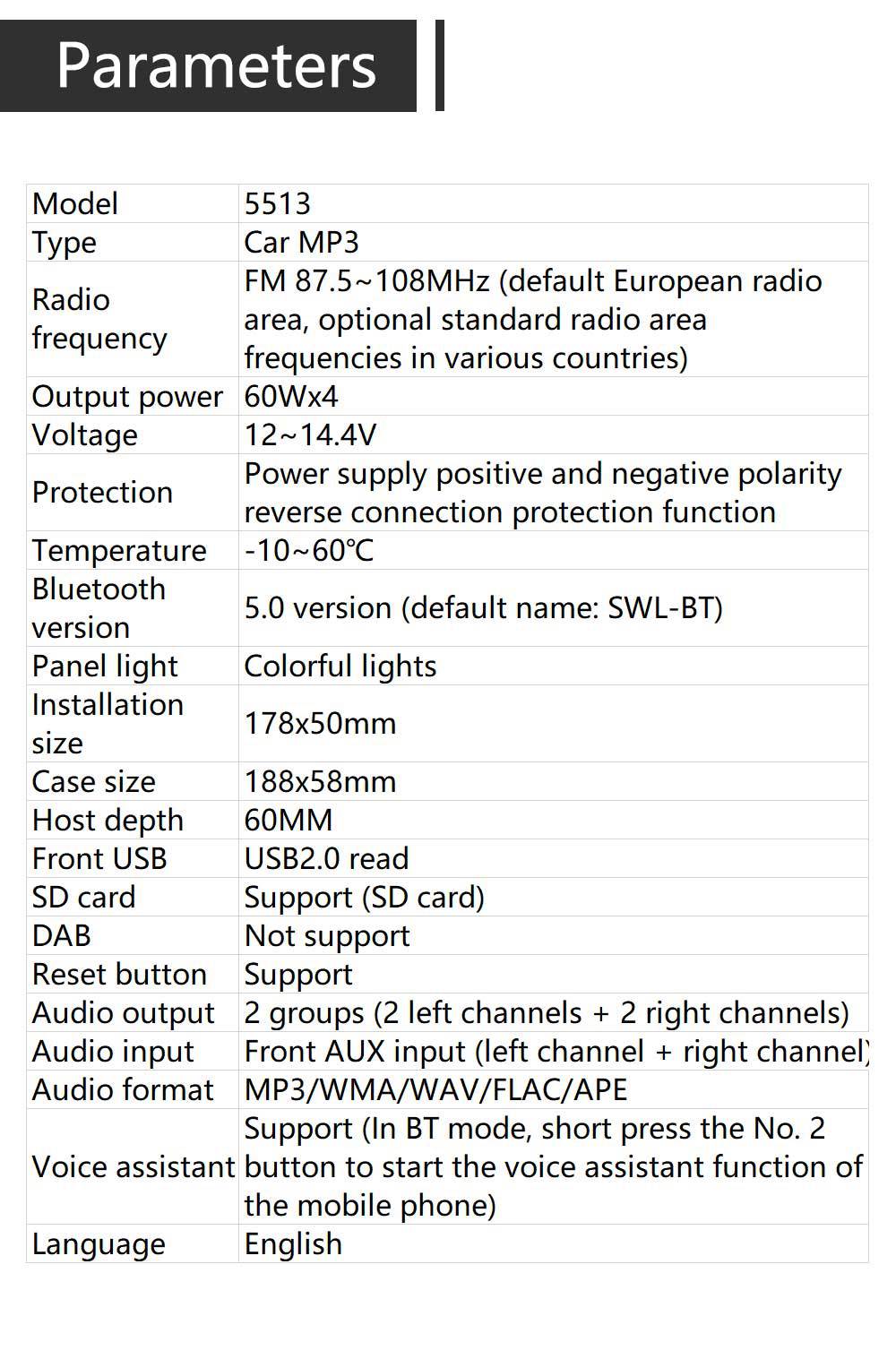 5513 Bluetooth coche REPRODUCTOR DE MP3 tarjeta USB reproductor de música consola central del coche FM Radio