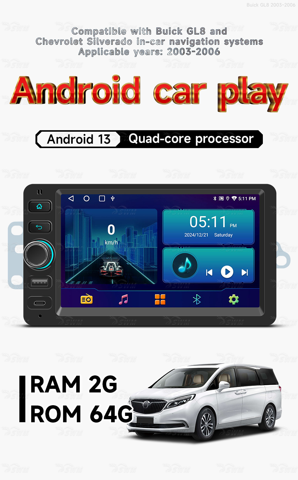 Aplicable a 03 ~ 06 Buick Luxun / Chevrolet Solode Hengchen Android navegación en el vehículo central de control del vehículo