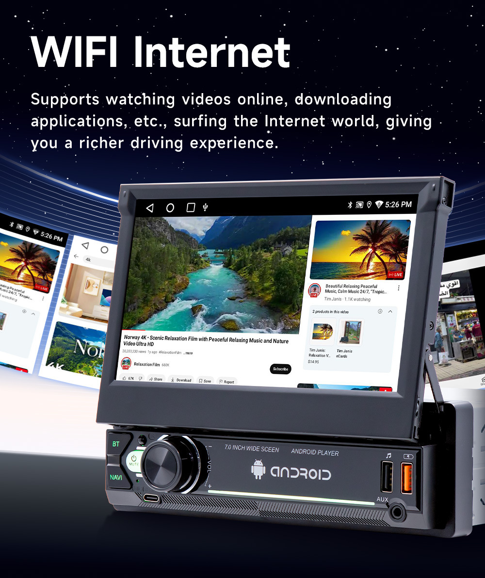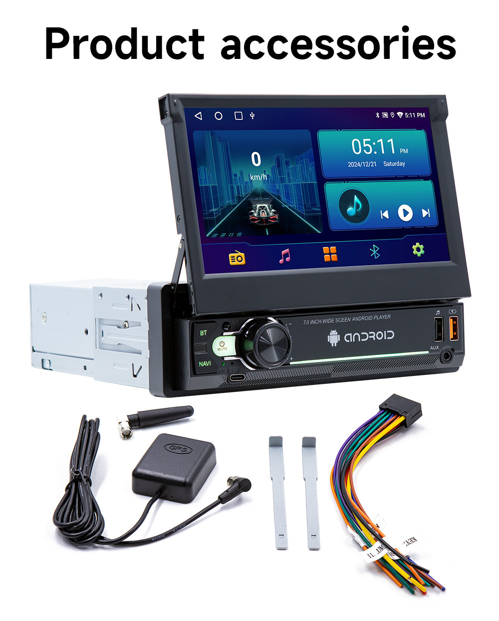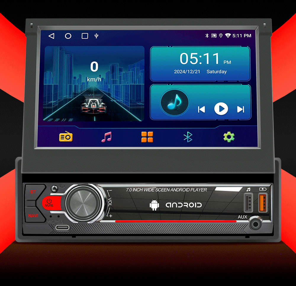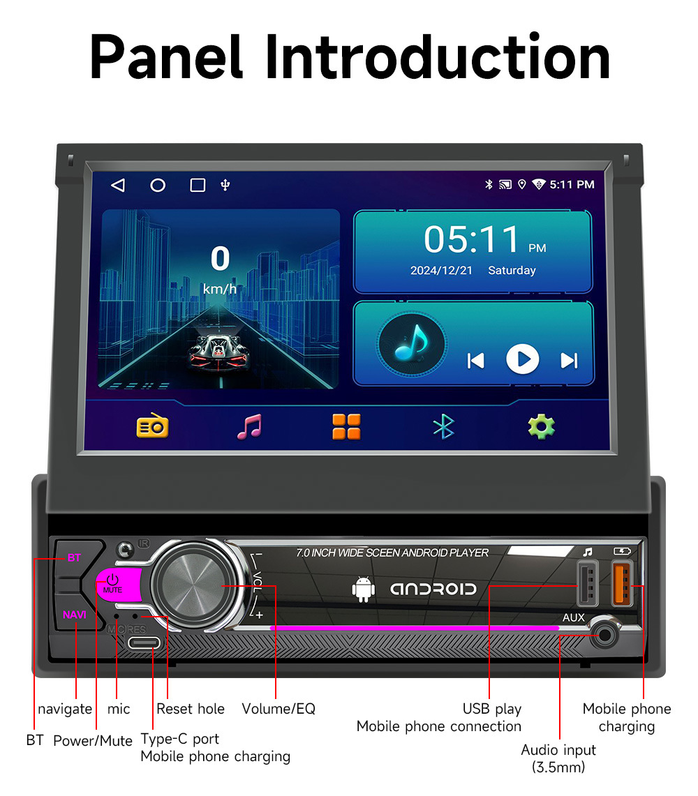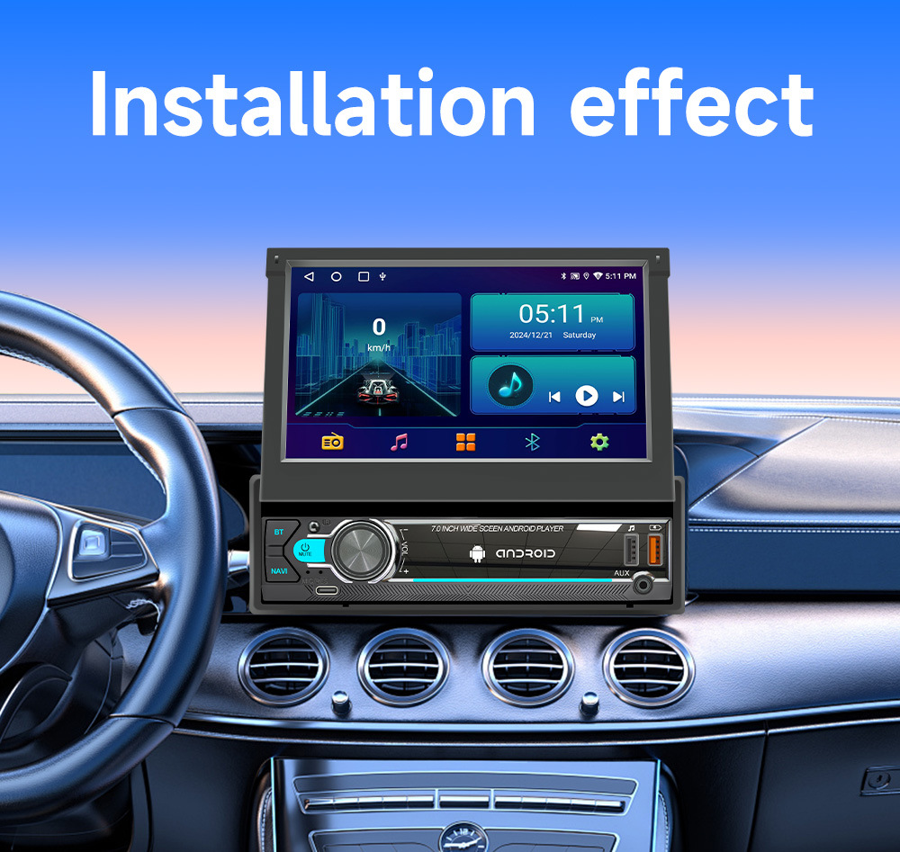 Pantalla retráctil de 7 pulgadas Android vehículo GPS navegación inalámbrica carplay vehículo inteligente control central máquina de navegación todo en uno