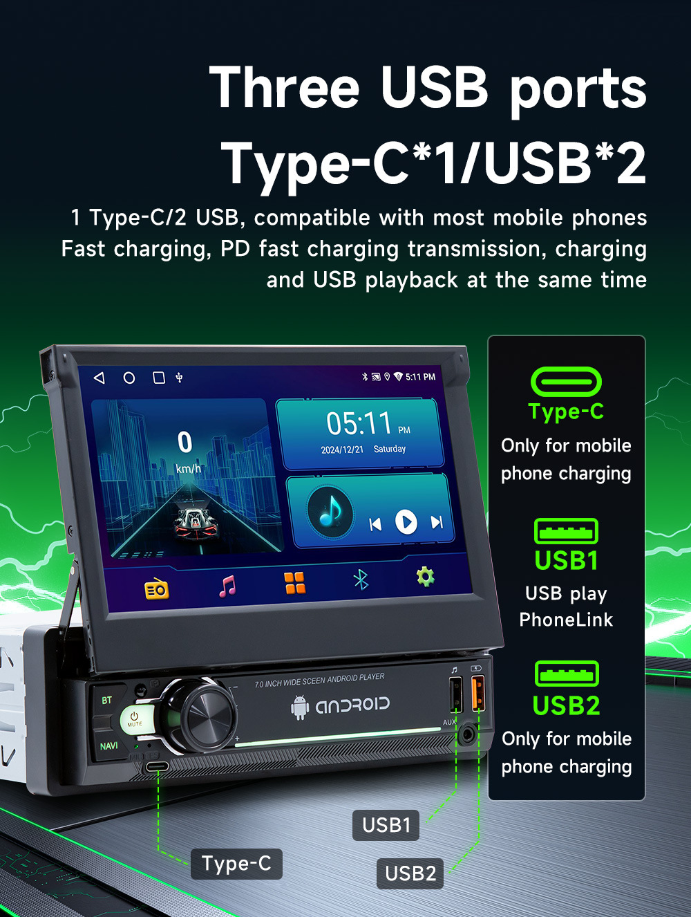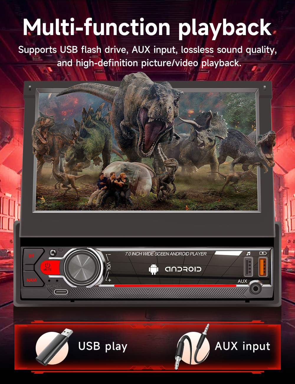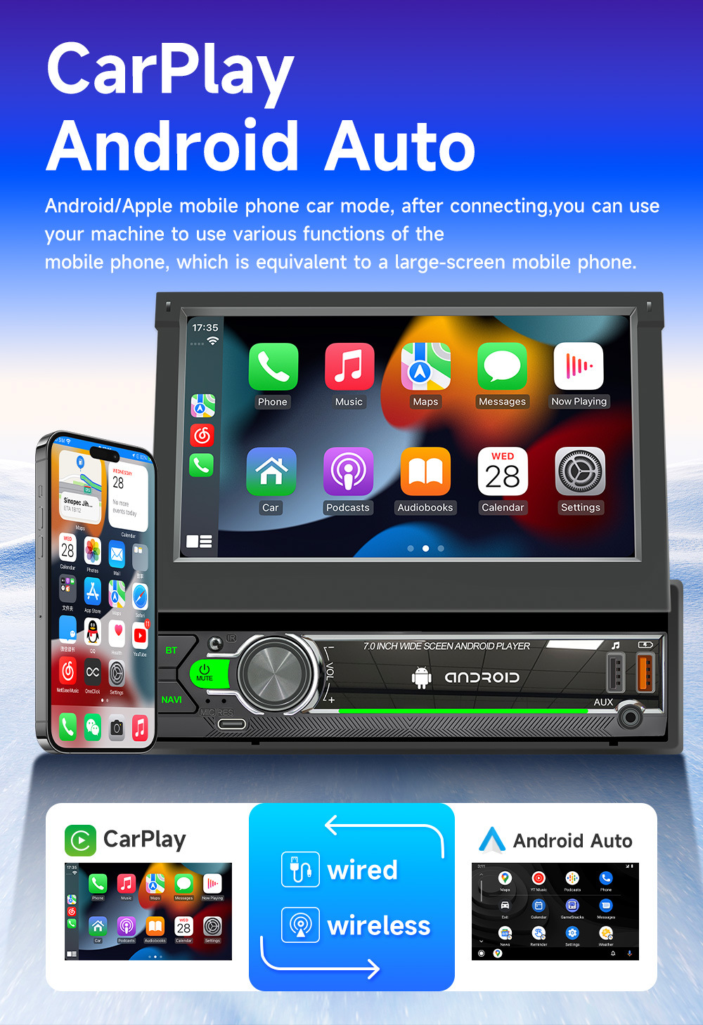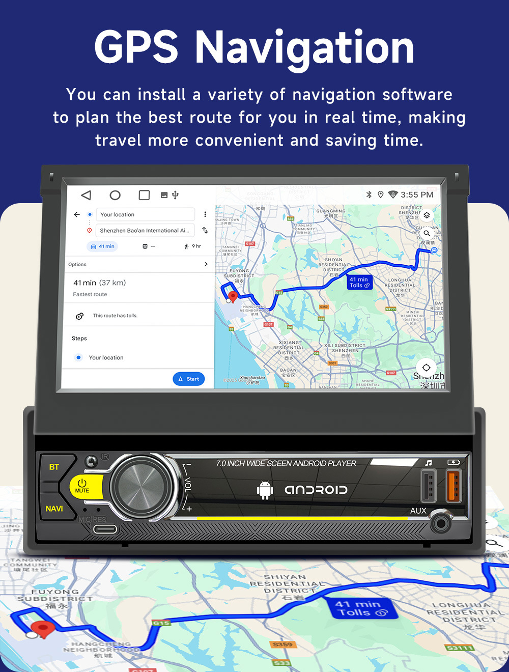 Pantalla retráctil de 7 pulgadas Android vehículo GPS navegación inalámbrica carplay vehículo inteligente control central máquina de navegación todo en uno
