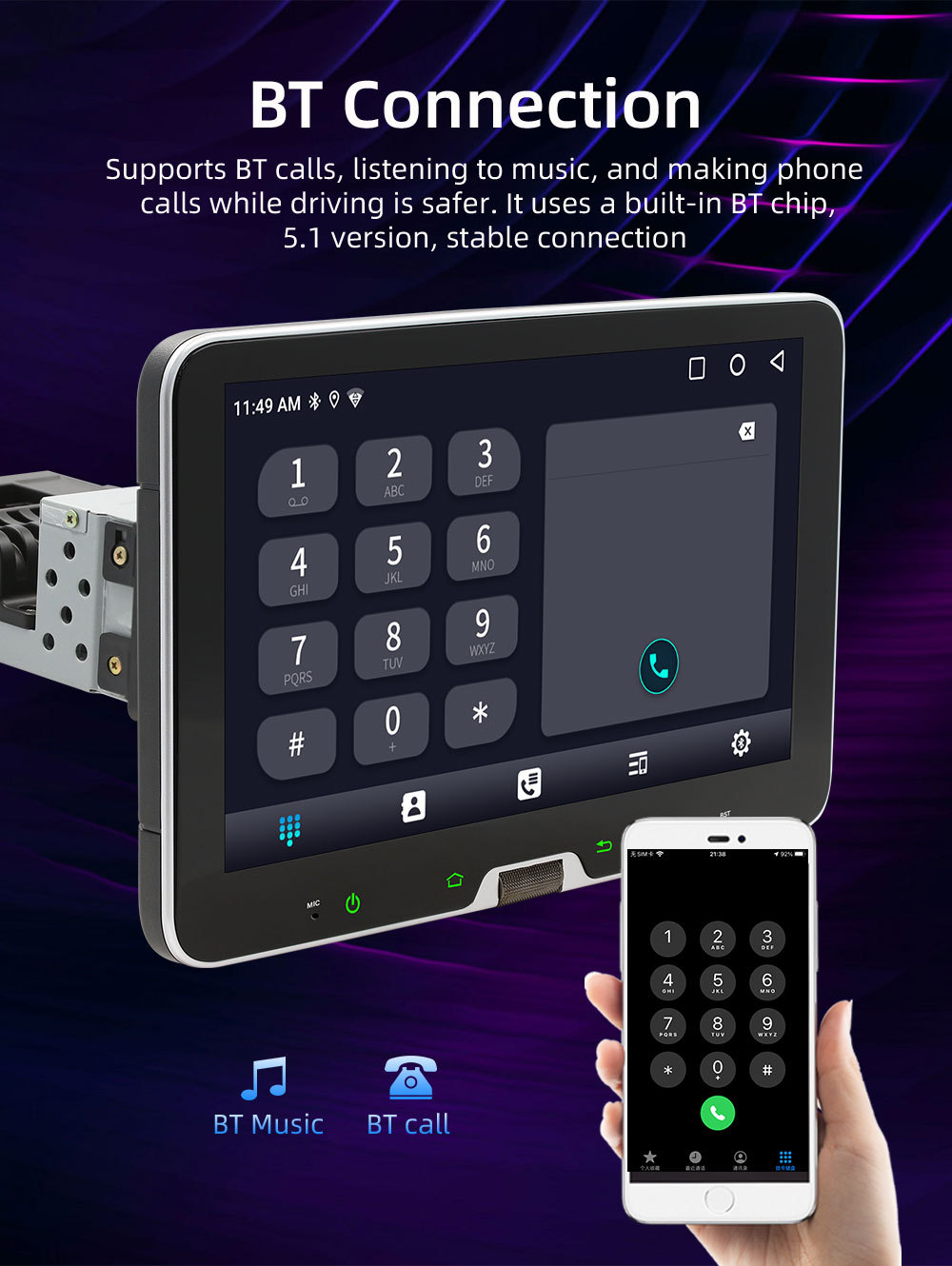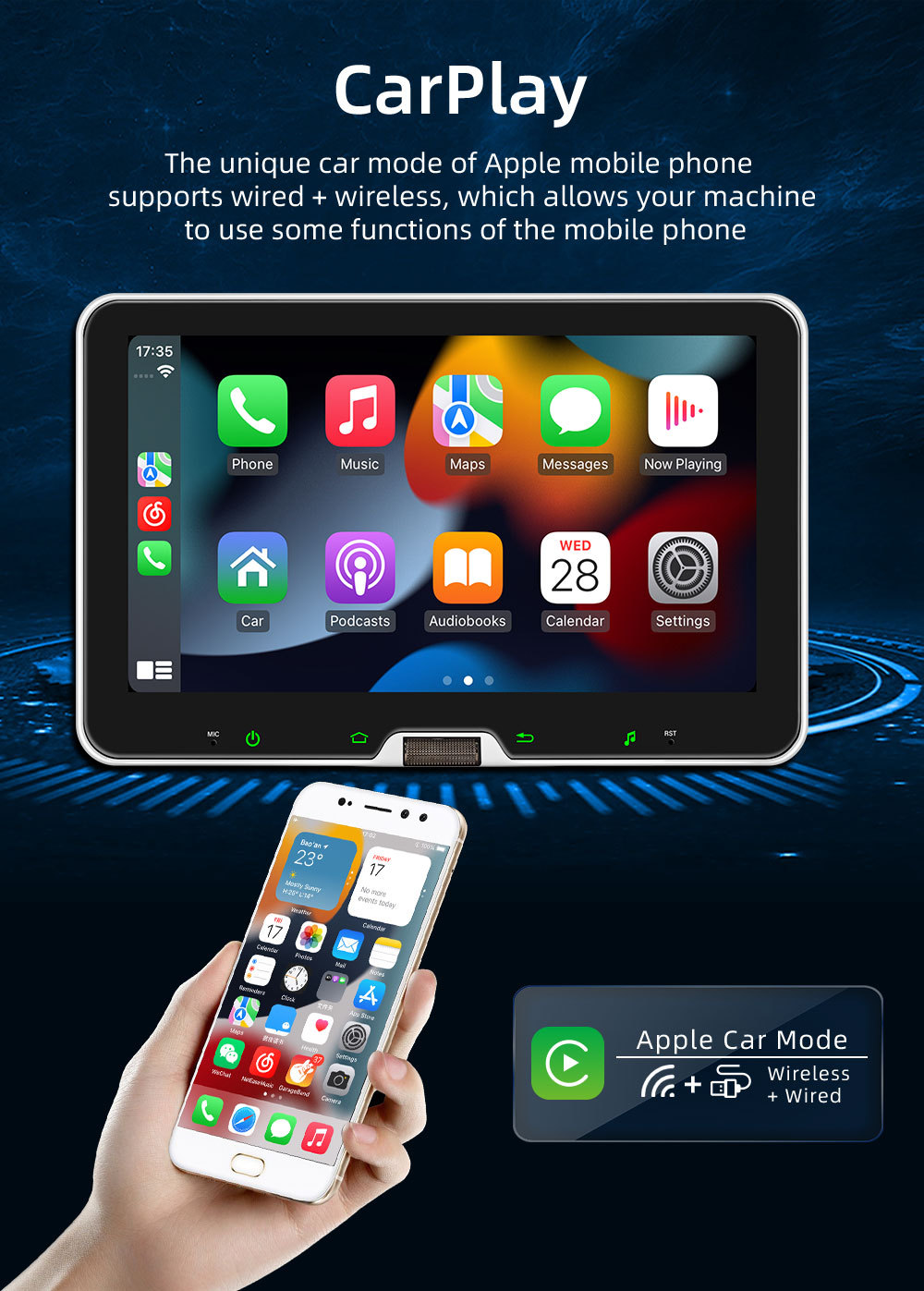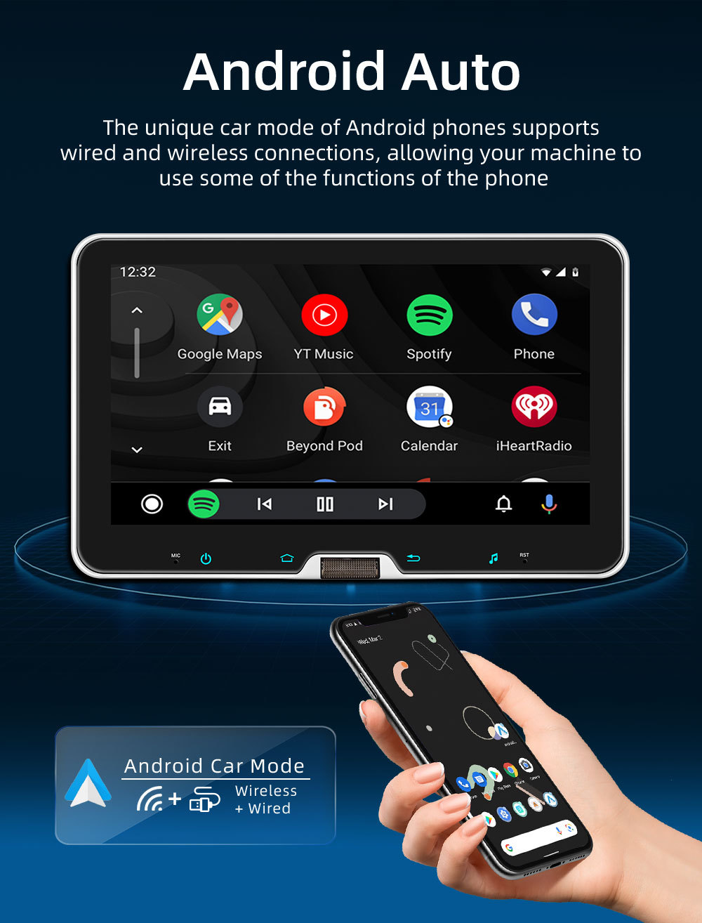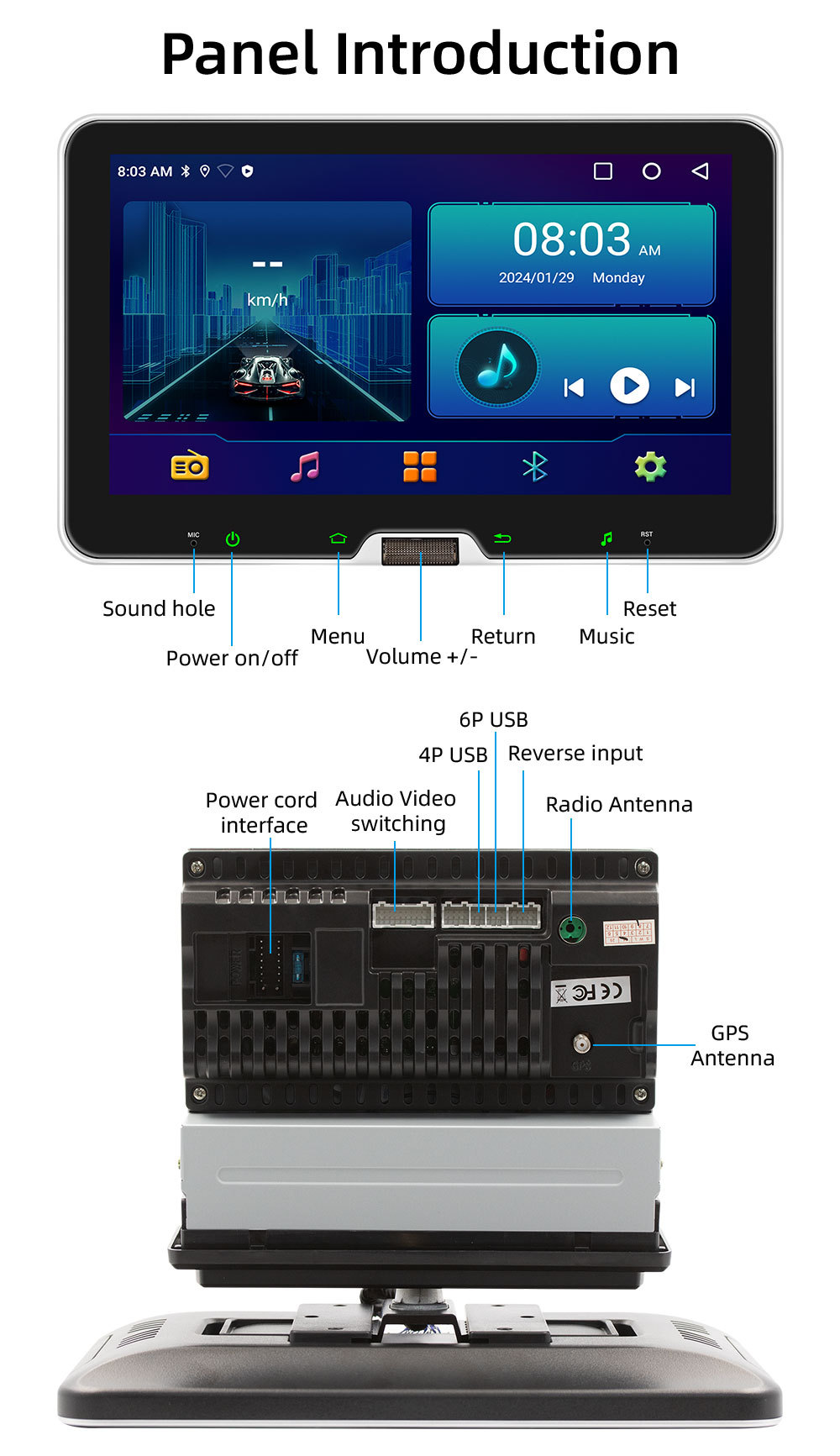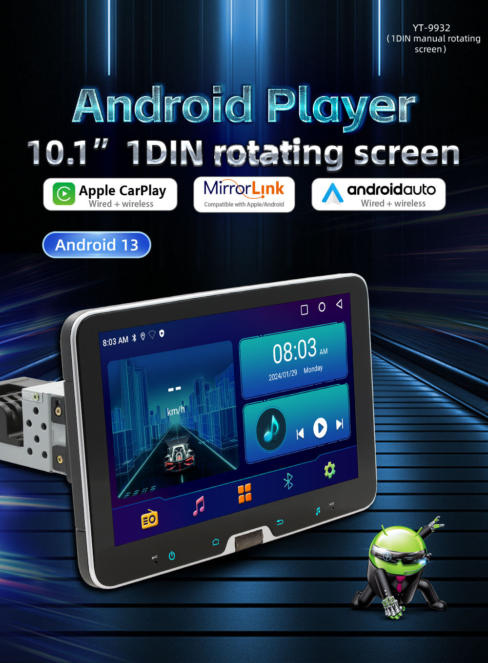 10.1 Pulgada de un solo husillo Android car cabezal shaker carplay inalámbrico control central HD pantalla grande GPS navegación motor de coche