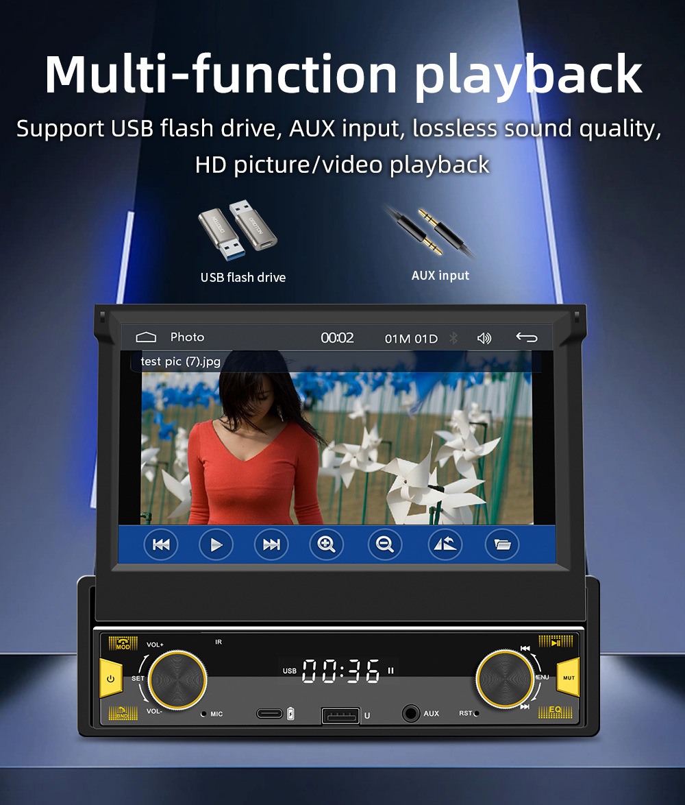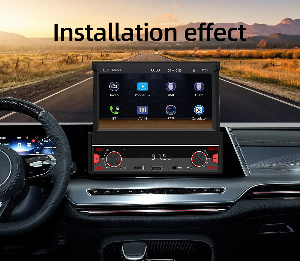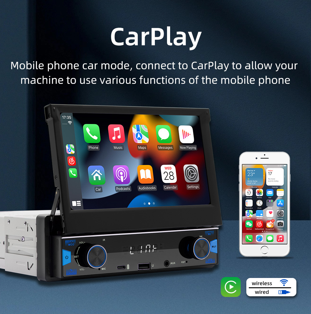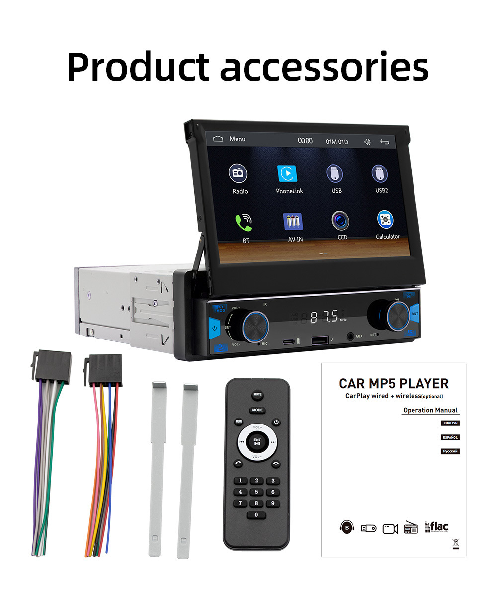 7 pulgadas pantalla retráctil carplay inalámbrico MP5 HD imagen de marcha atrás pantalla de control central del automóvil navegación del vehículo