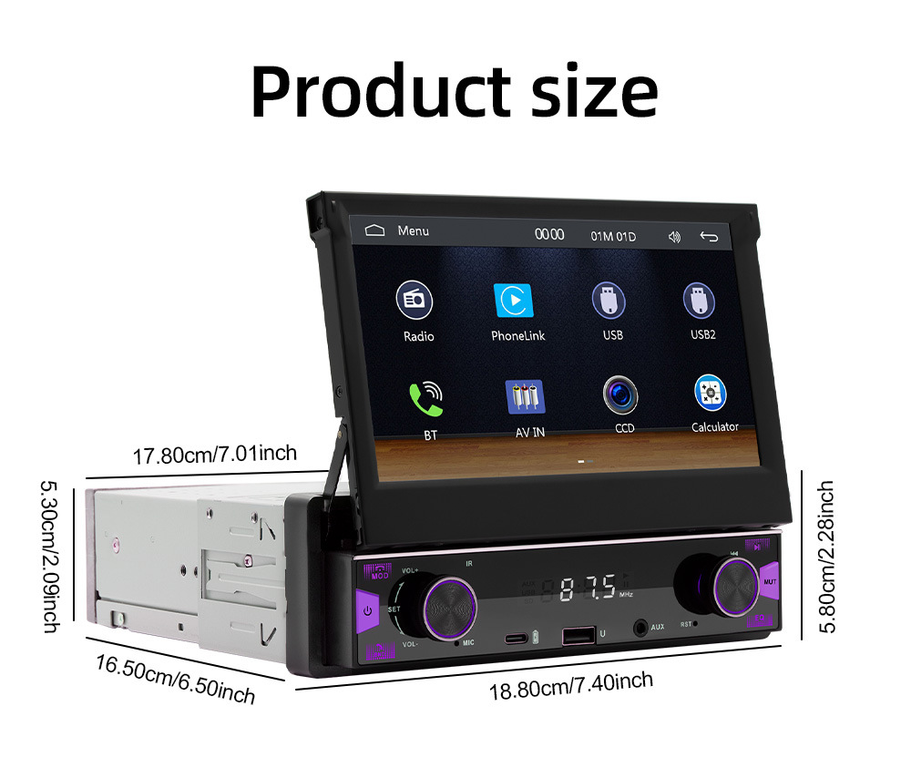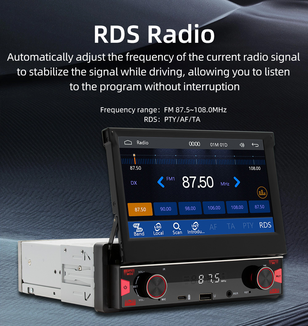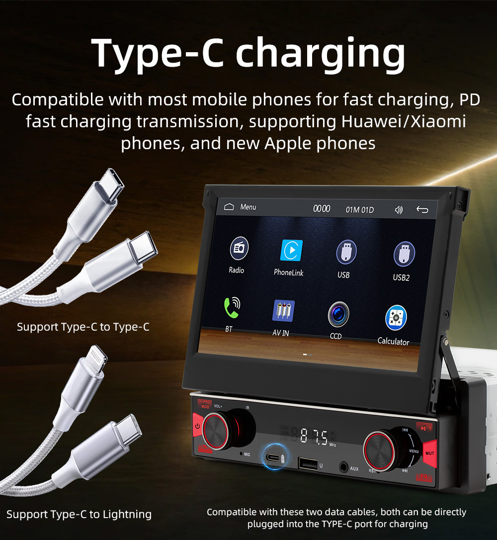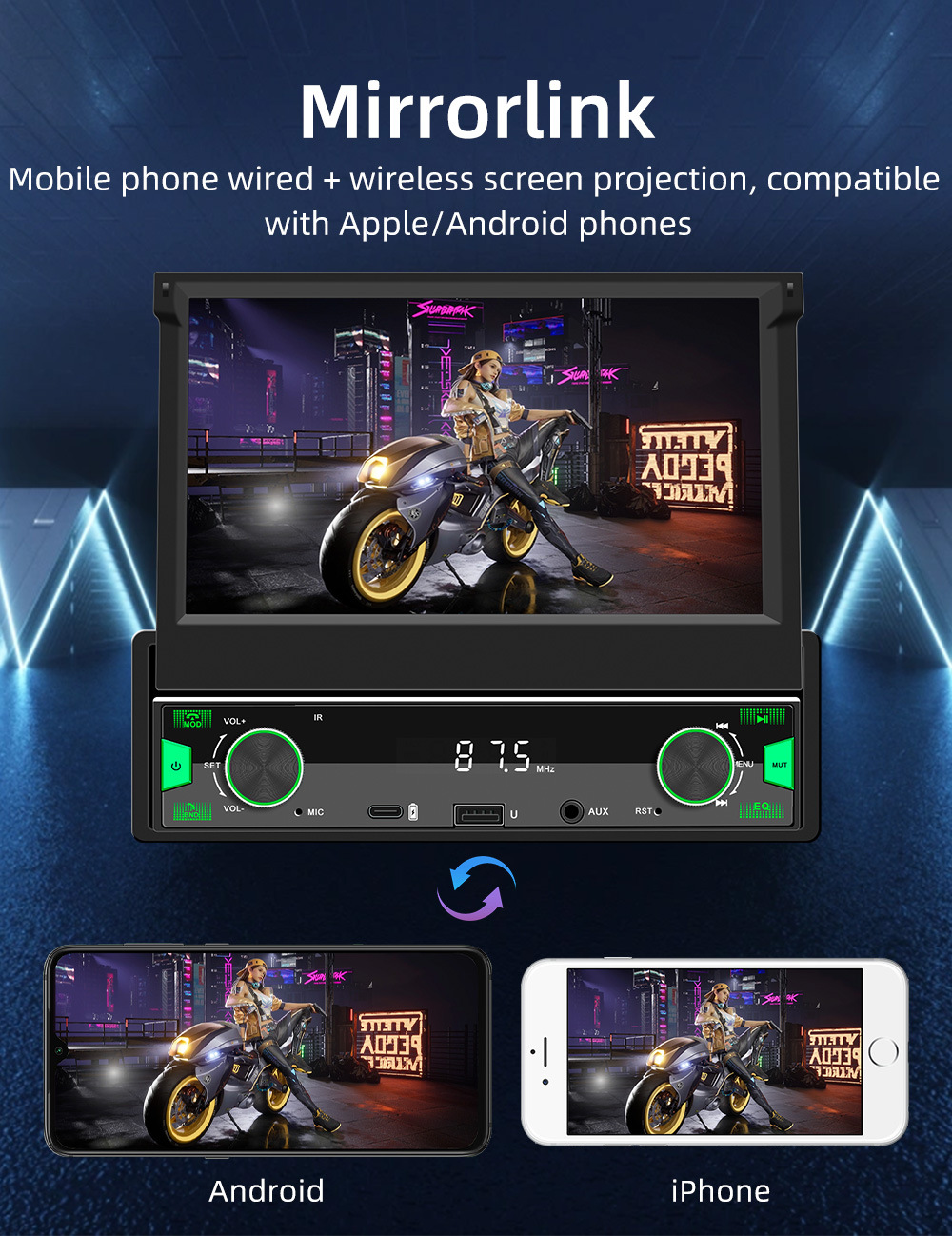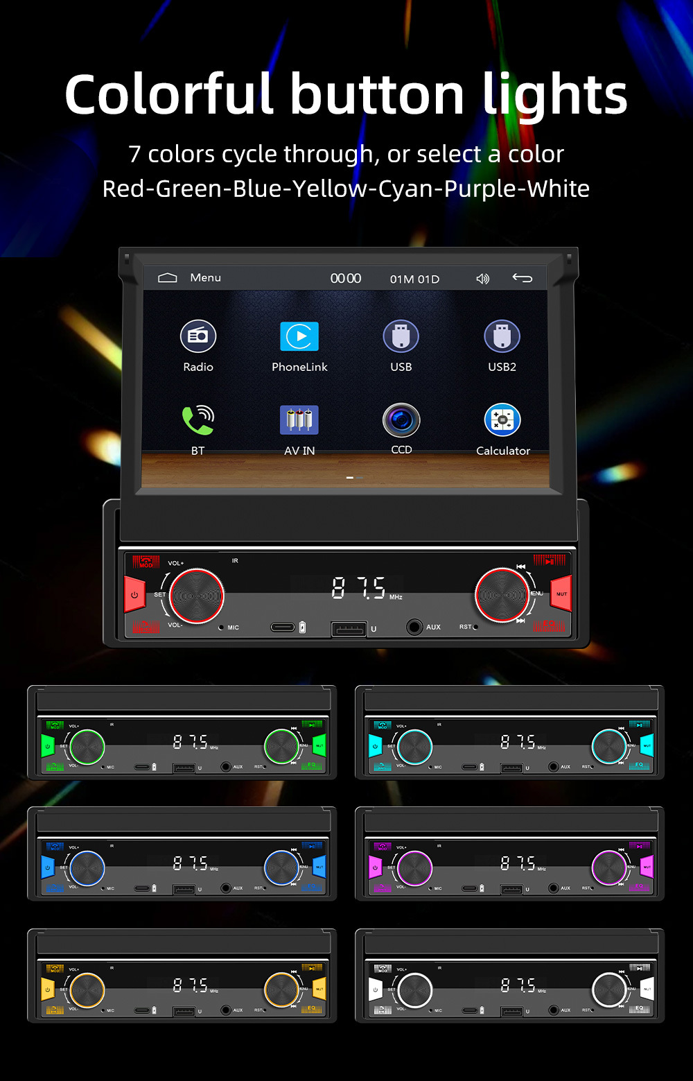 7 pulgadas pantalla retráctil carplay inalámbrico MP5 HD imagen de marcha atrás pantalla de control central del automóvil navegación del vehículo
