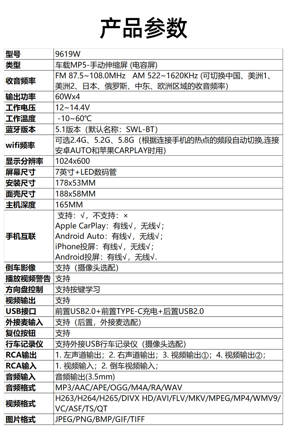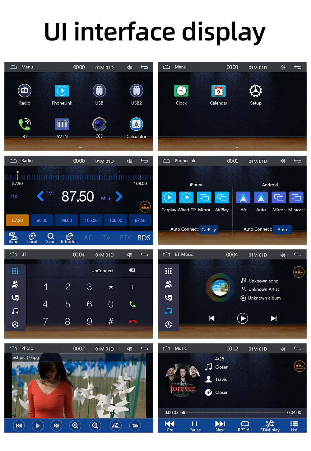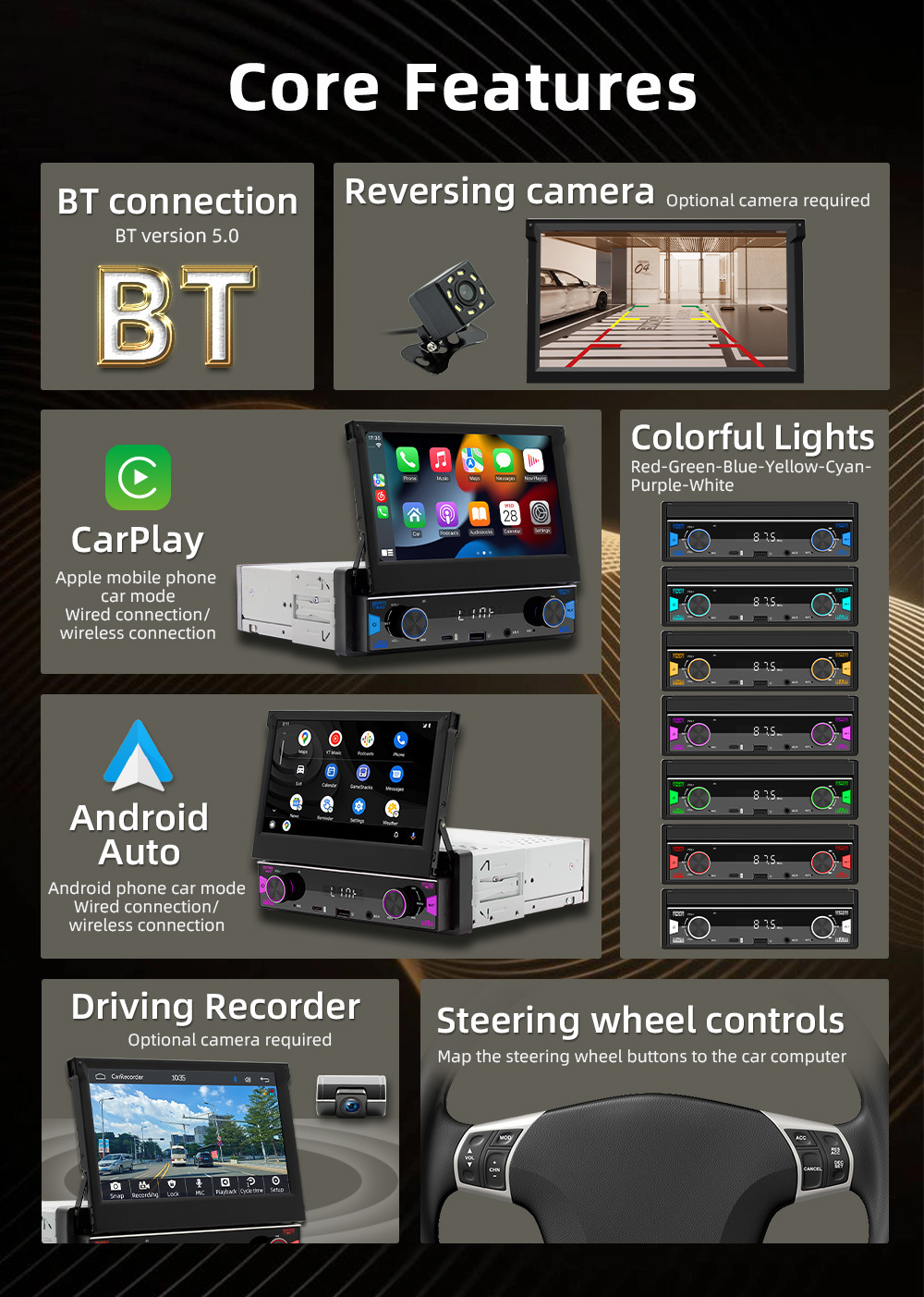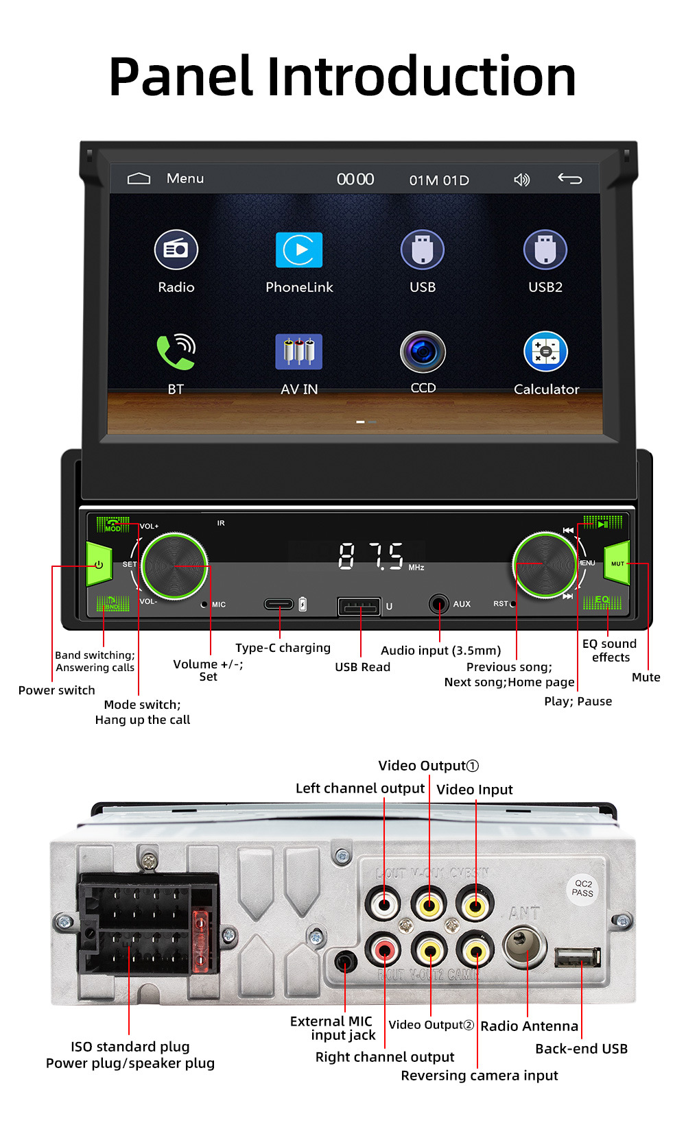 7 pulgadas pantalla retráctil carplay inalámbrico MP5 HD imagen de marcha atrás pantalla de control central del automóvil navegación del vehículo