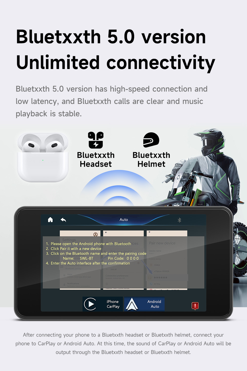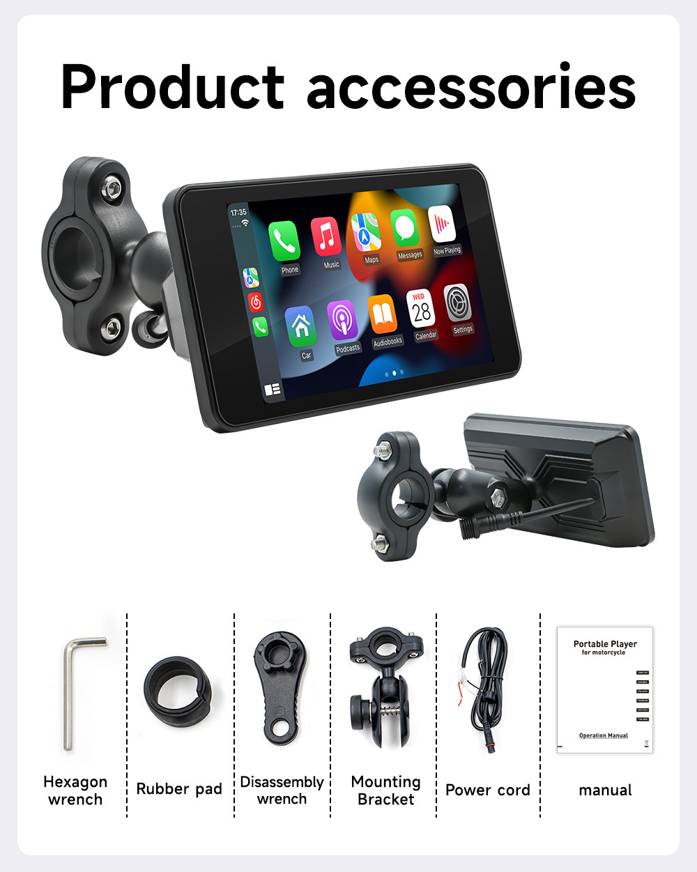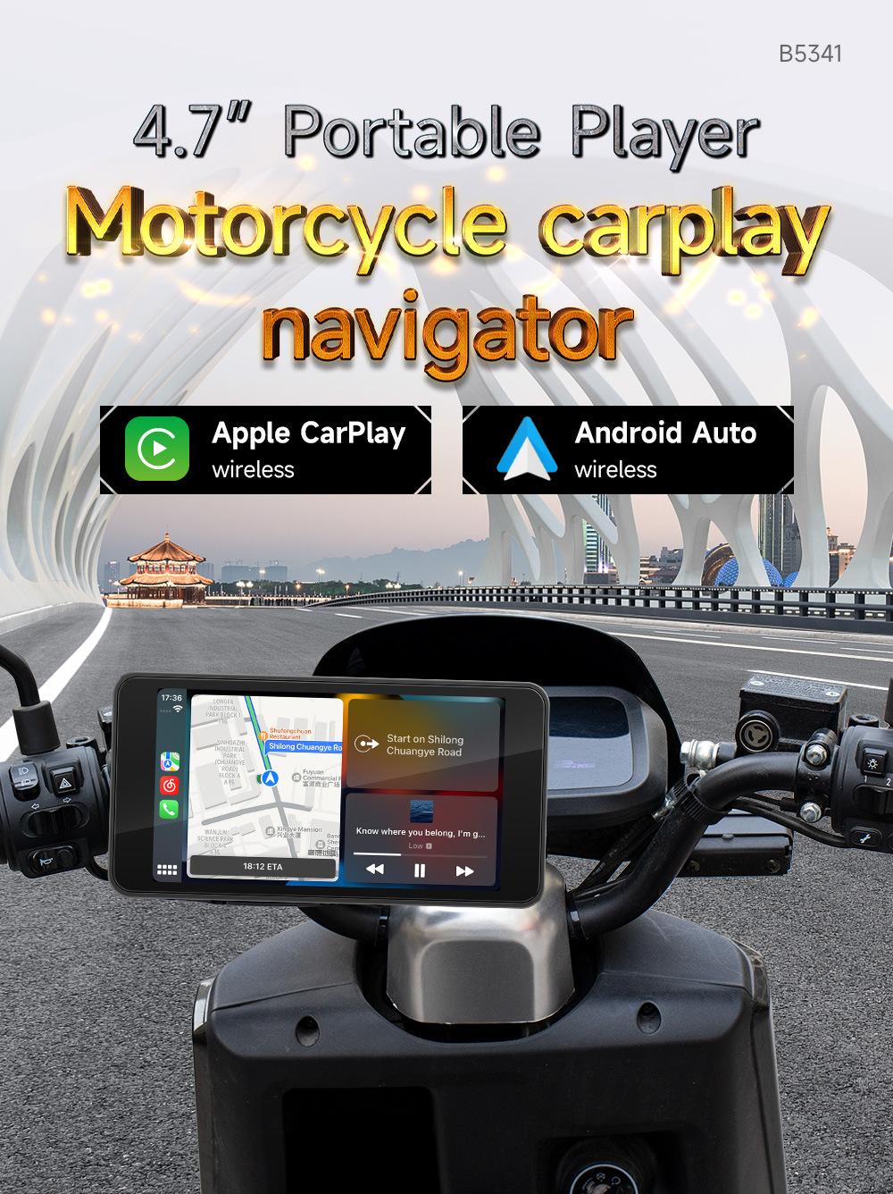 Motocicleta de venta caliente transfronteriza de 4,7 pulgadas de calidad de vida impermeable carplay inalámbrico coche Bluetooth MP5 navegador