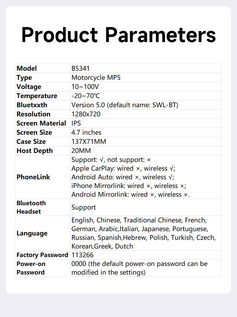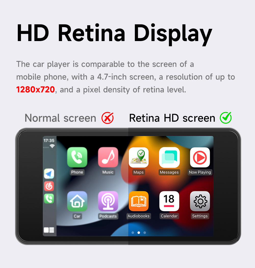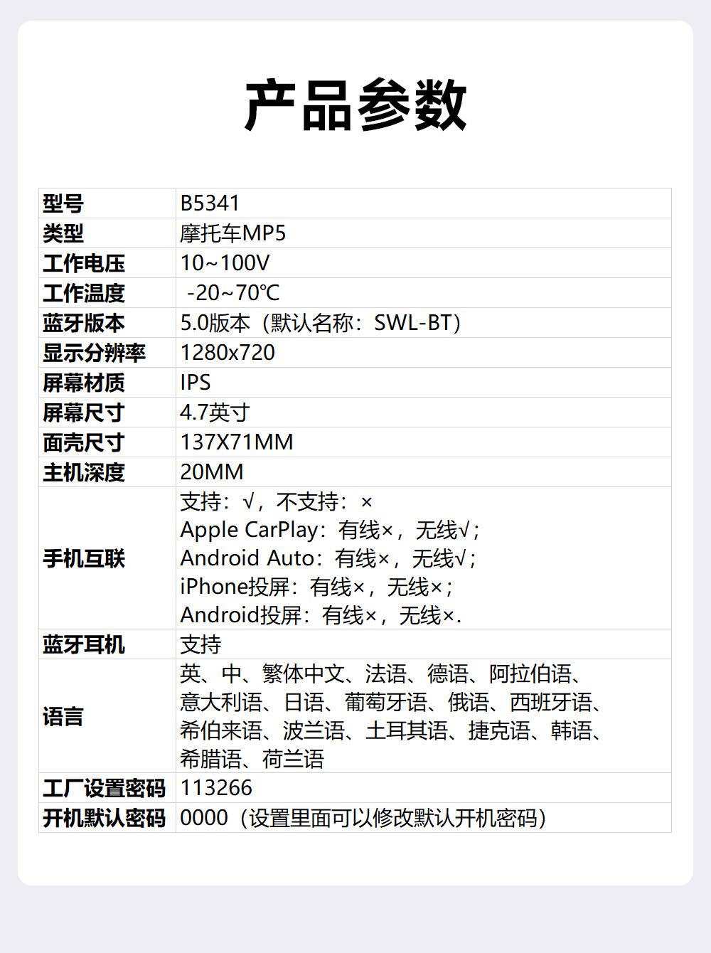 Motocicleta de venta caliente transfronteriza de 4,7 pulgadas de calidad de vida impermeable carplay inalámbrico coche Bluetooth MP5 navegador