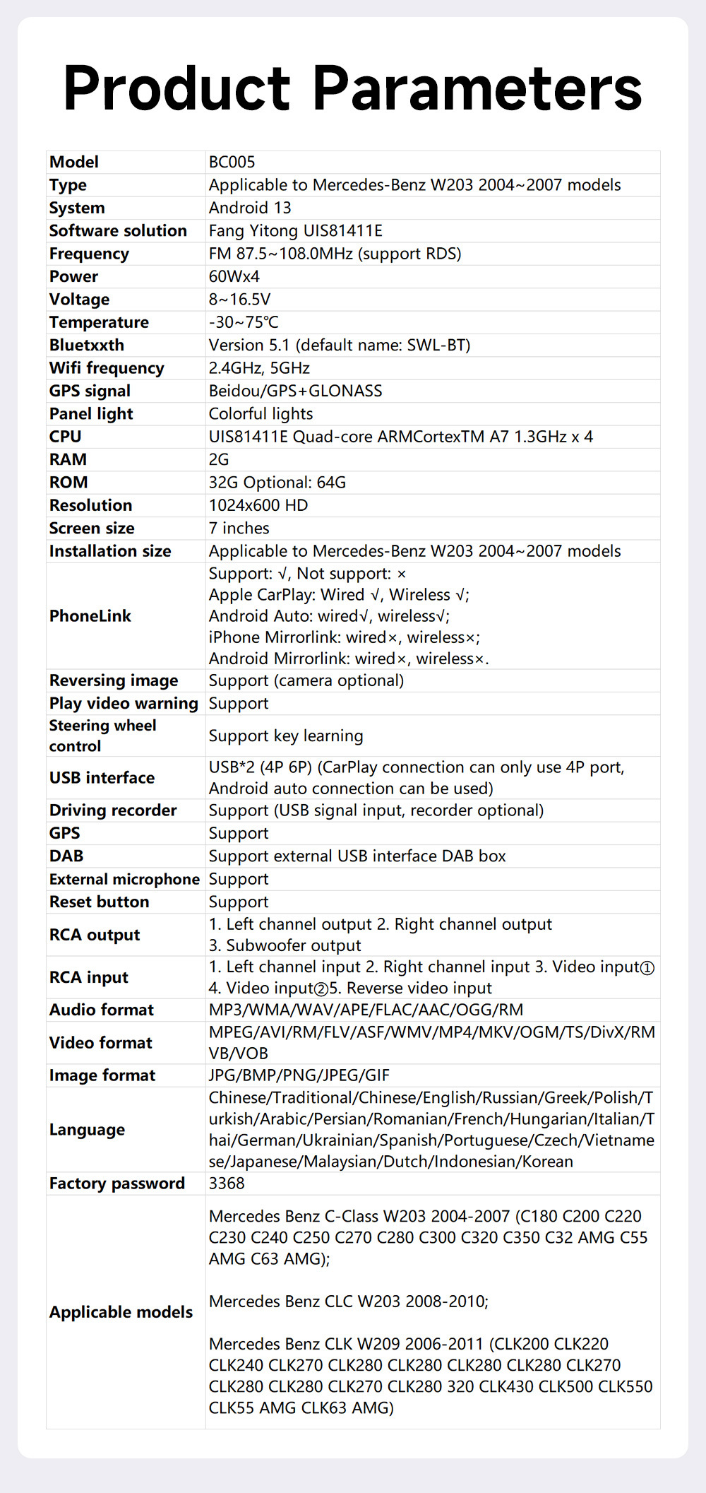 Adecuado para 04-07 Mercedes-Benz W203 coche androide gps navegación todo en uno carplay coche radio