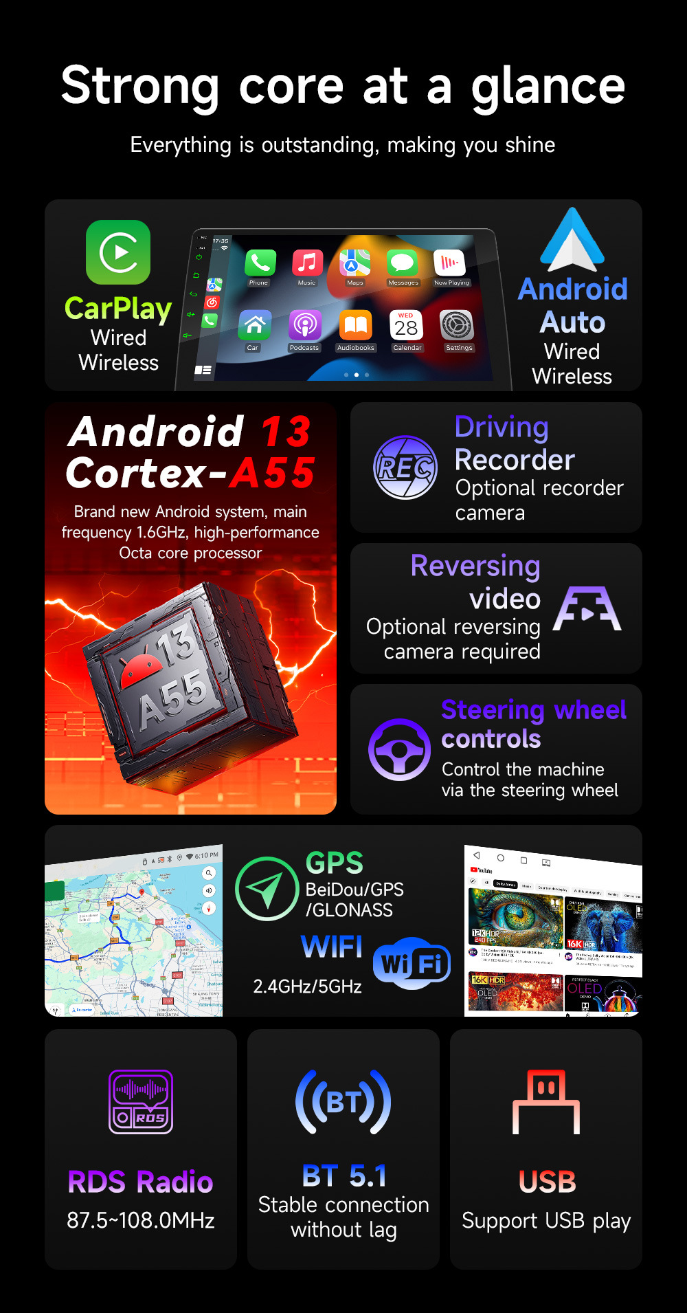 Transfronterizo 7 / 9 / 10 pulgadas de ocho núcleos 4G navegación Android en automóviles WiFi inalámbrico carplay control central del automóvil