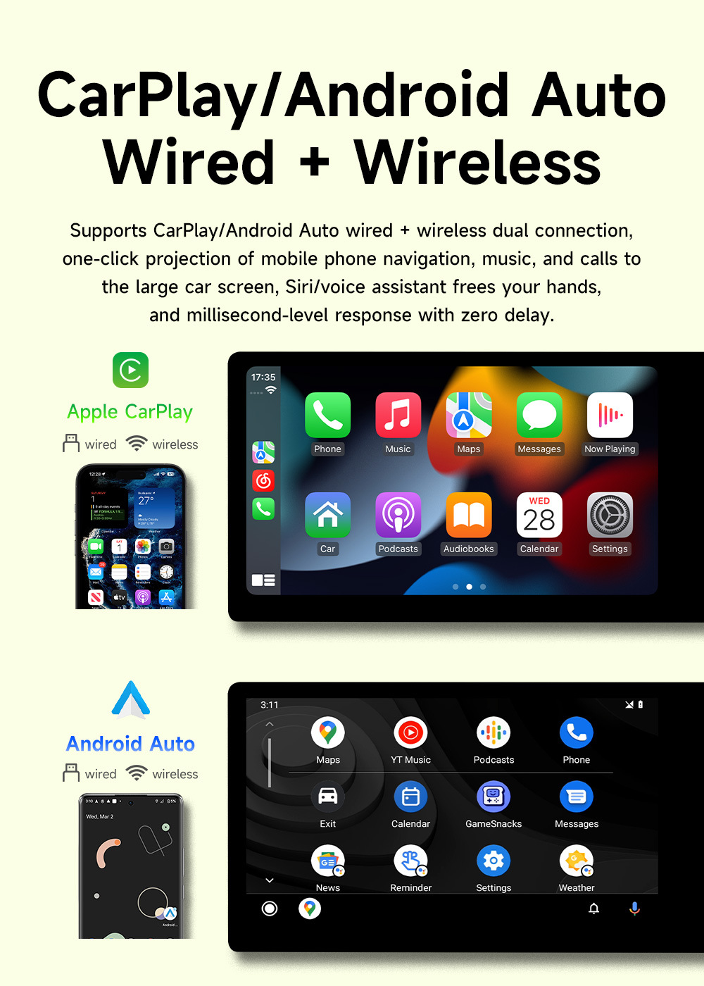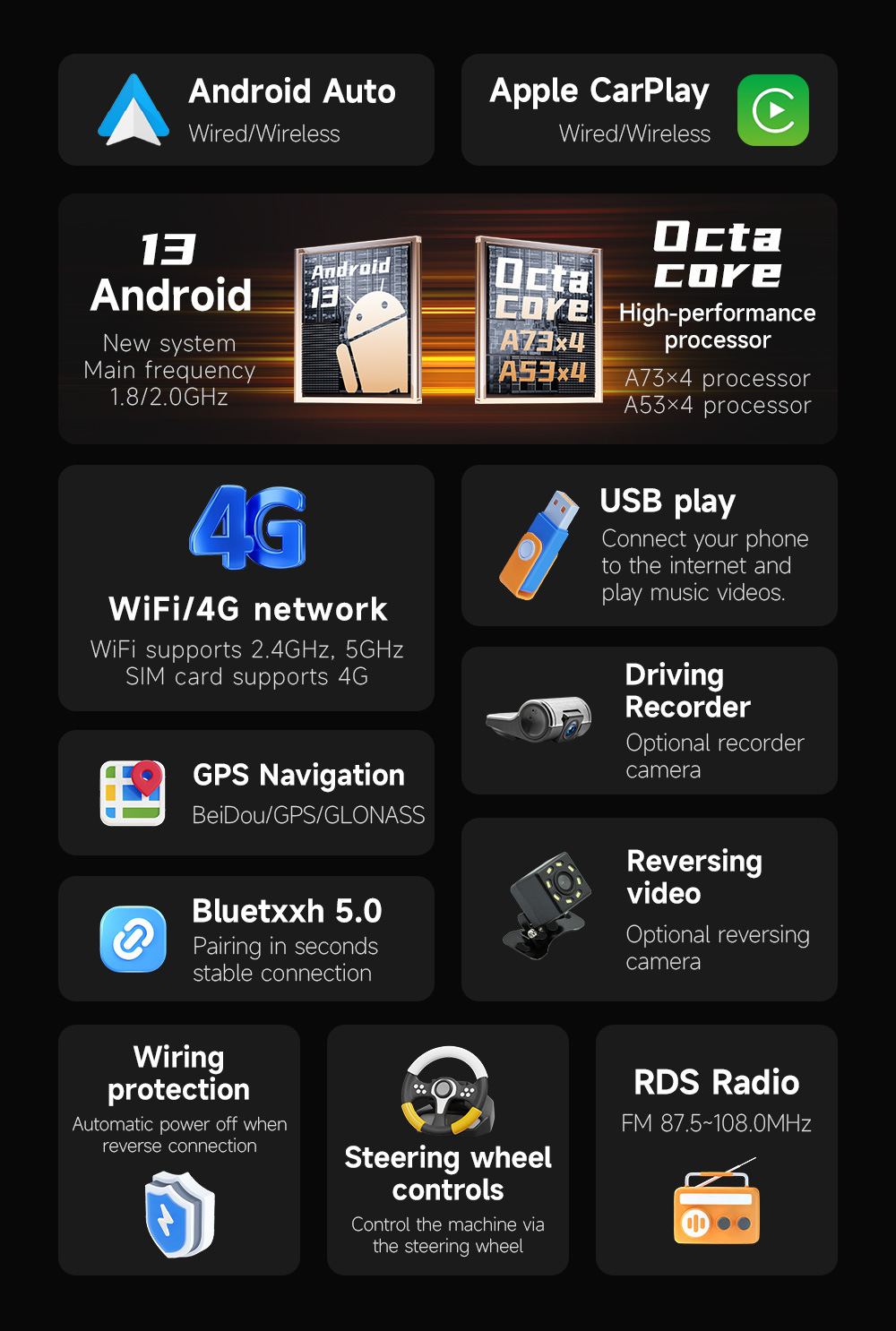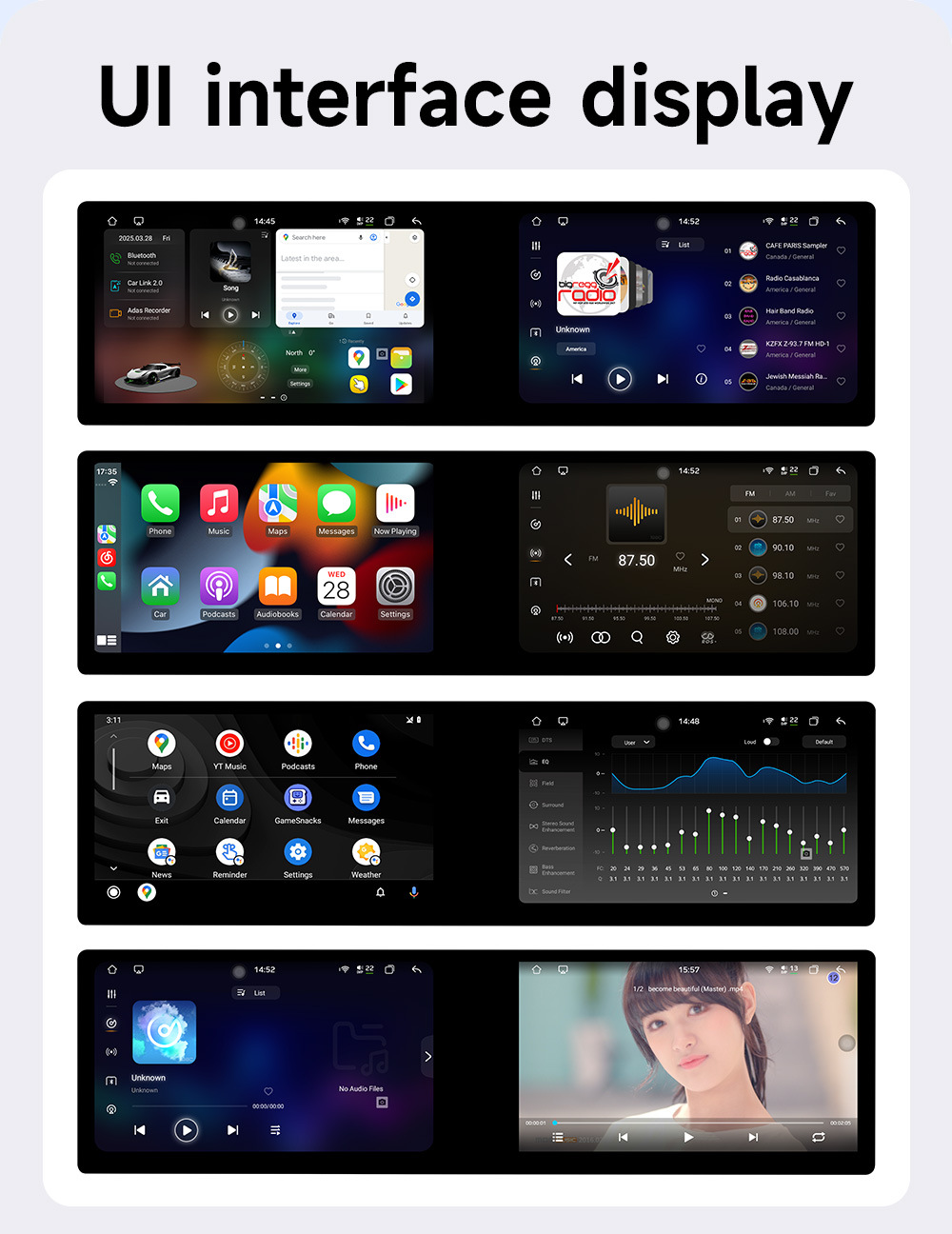 Pantalla dual transfronteriza de 10,1 pulgadas, ocho núcleos, 4G, Netcom completo, WiFi, carplay inalámbrico, Bluetooth, coche, navegación con Android
