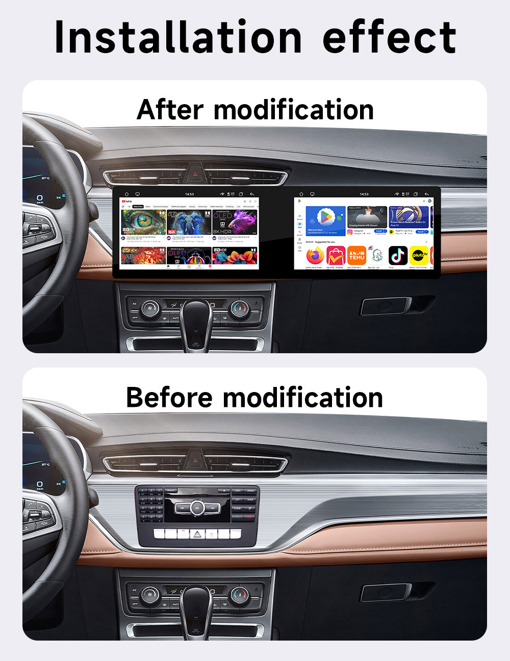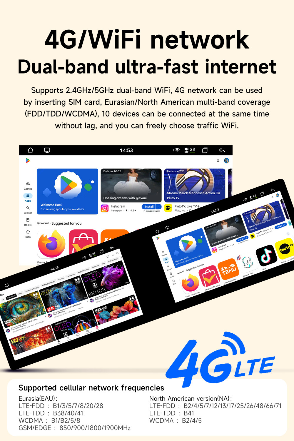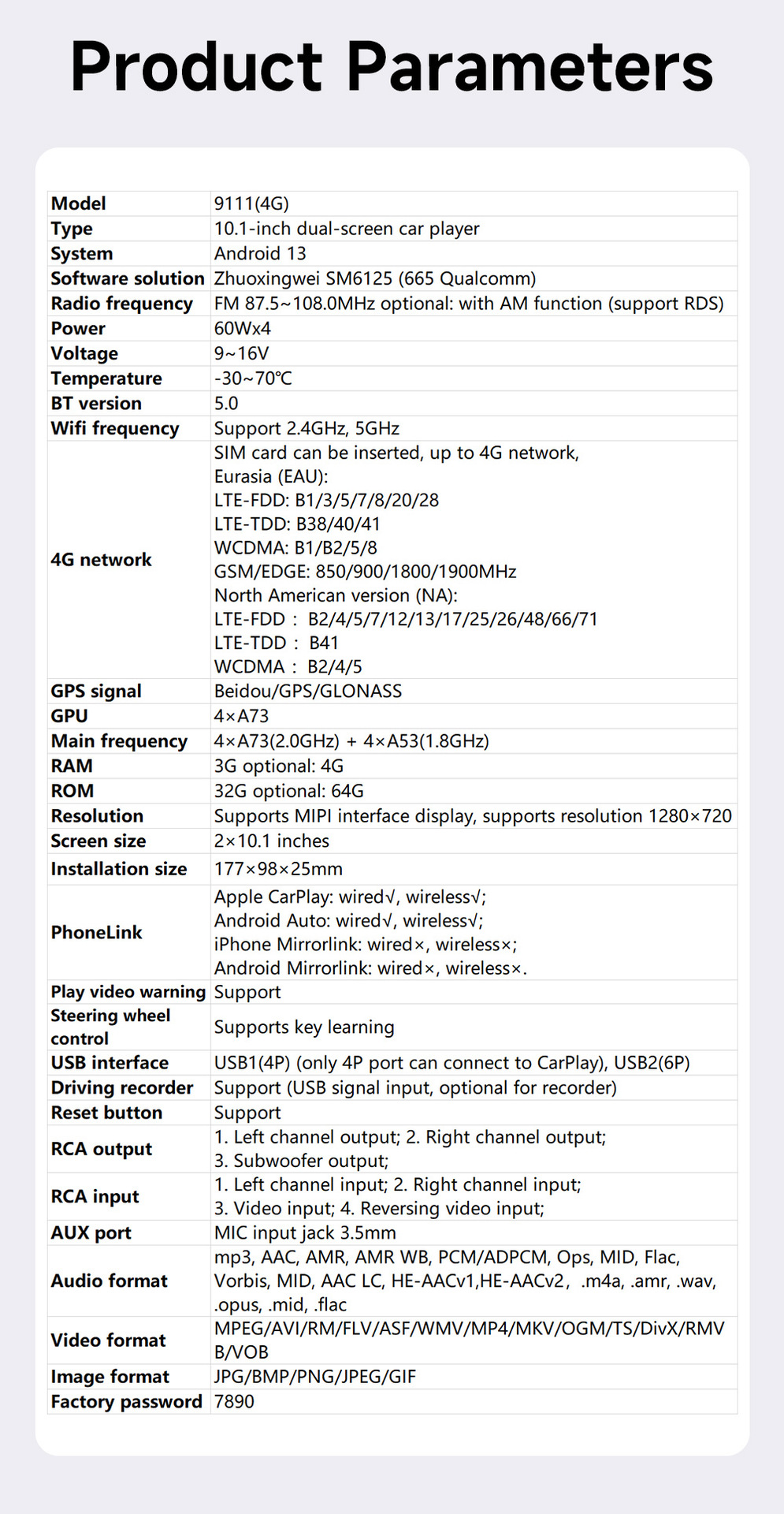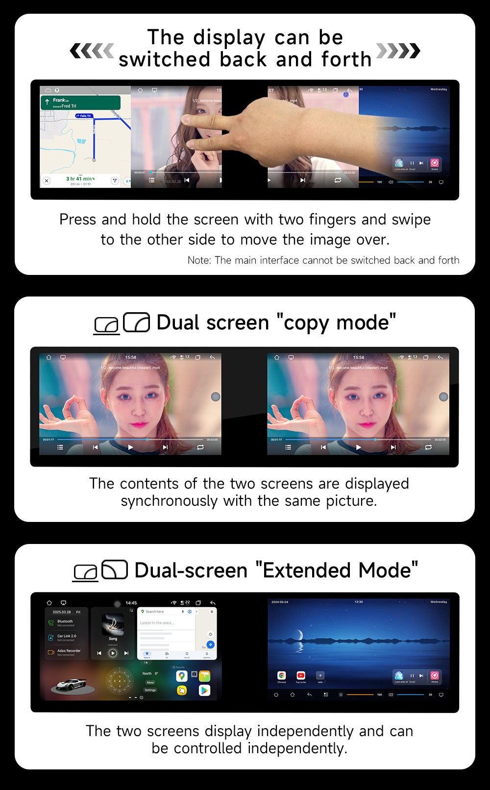 Pantalla dual transfronteriza de 10,1 pulgadas, ocho núcleos, 4G, Netcom completo, WiFi, carplay inalámbrico, Bluetooth, coche, navegación con Android