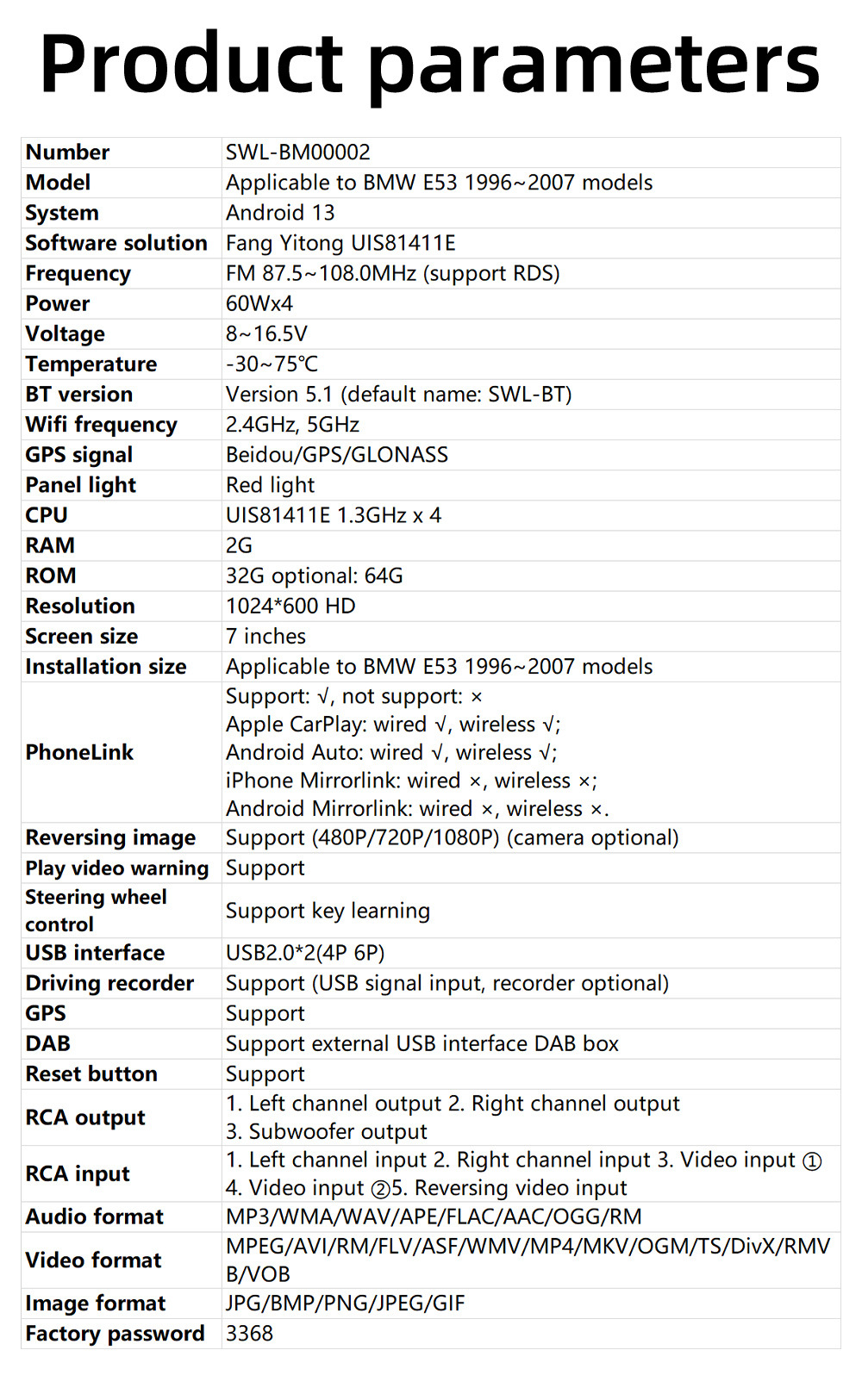 Aplicable a 96 ~ 07 BMW E53 estilo original carplay inalámbrico fácil de usar navegación Android montada en el coche