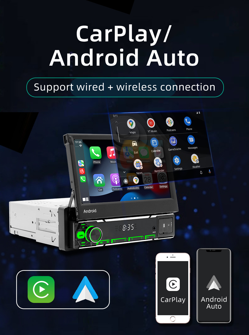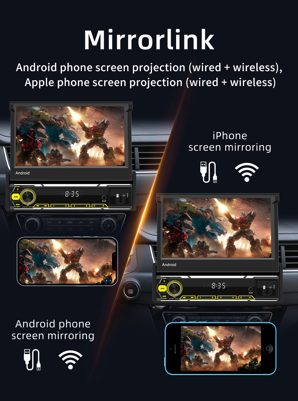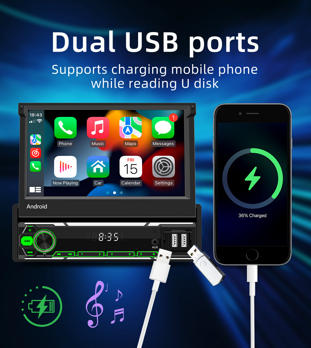 Transfronterizo de 7 pulgadas pantalla retráctil manual Android navegación de automóviles inalámbrica carplay controlador central de alta definición registrador de conducción