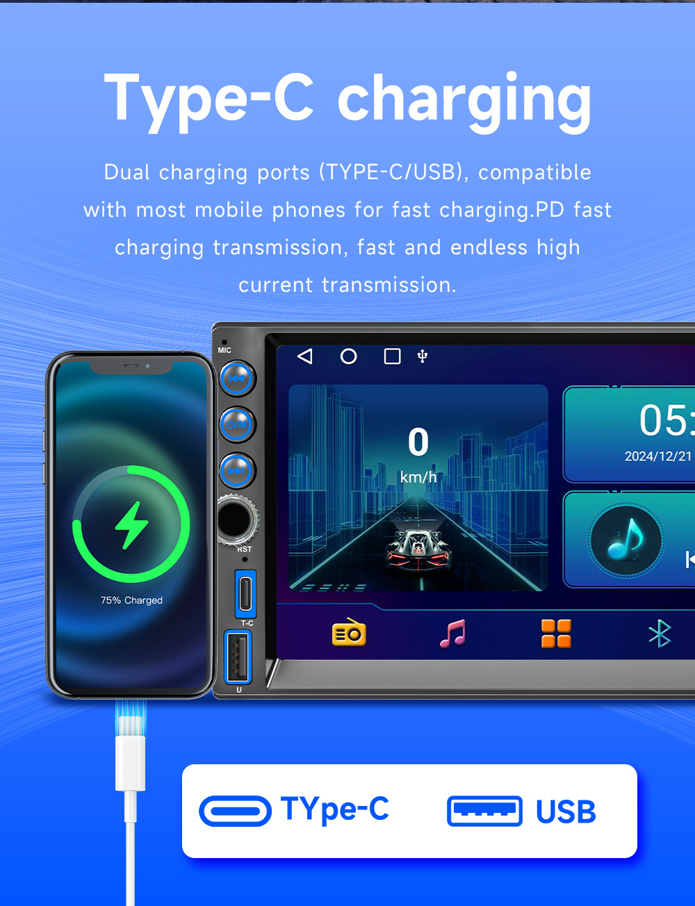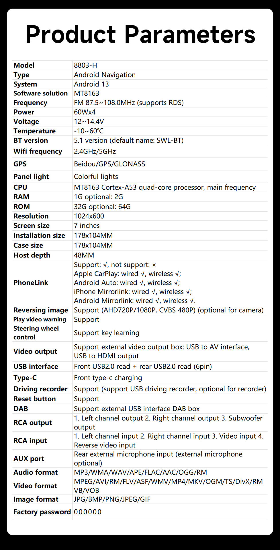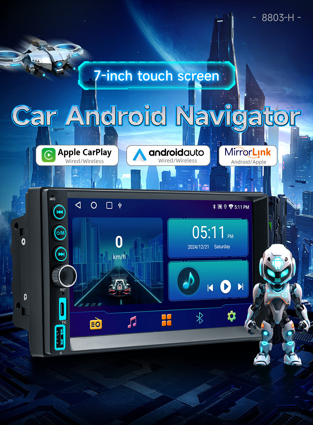 Transfronterizo de 7 pulgadas Hengchen 8163 coche Android navegación máquina universal inalámbrica carplay reproductor Bluetooth del coche