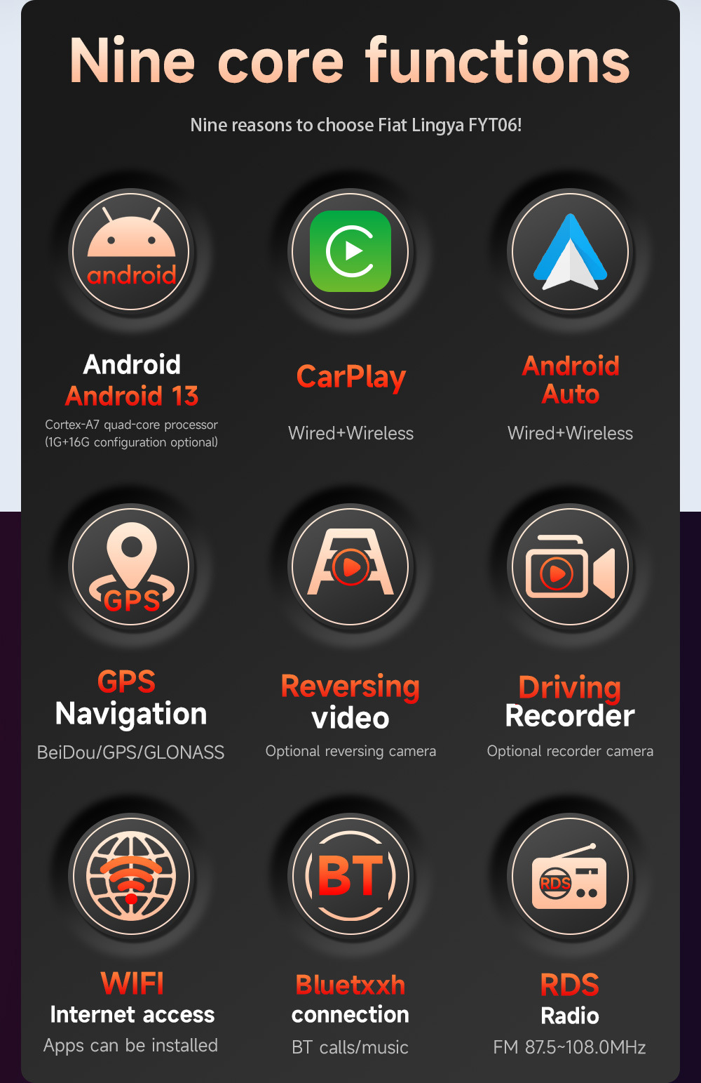 Aplicable a 07 ~ 12 tipos de Fiat Lingya inalámbrico carplay pantalla grande control central de navegación Android en coche todo en uno