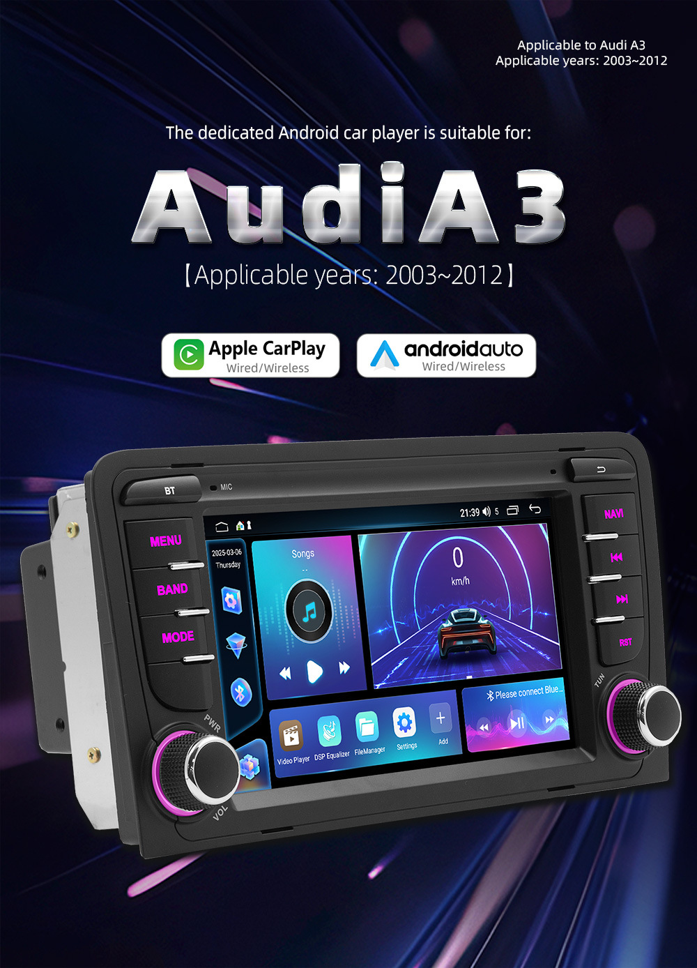 Transfronterizo 7 pulgadas inalámbricas carplay coche Android GPS navegación todo en uno para 03 a 12 Audi A3