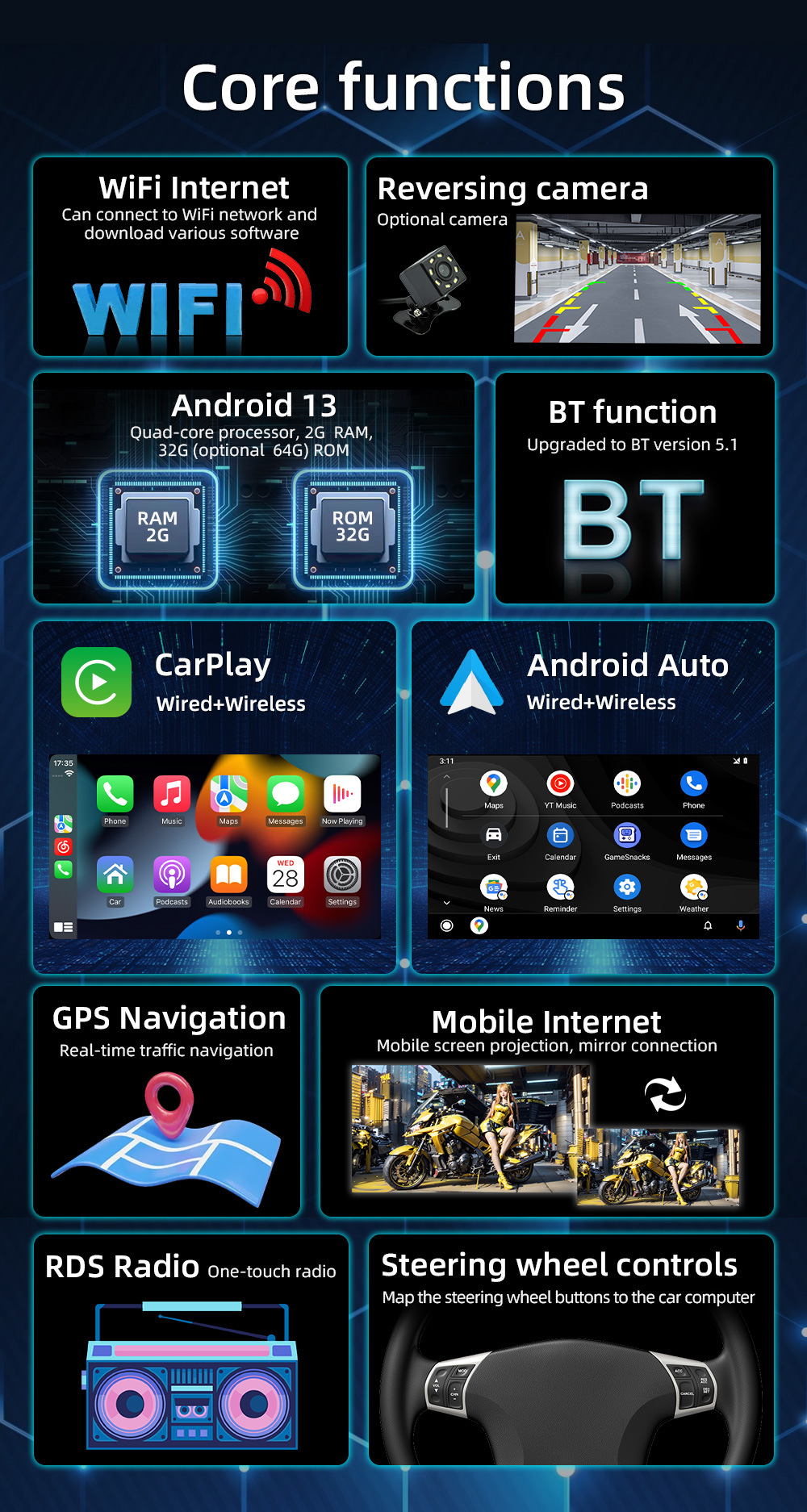 Transfronterizo 10.1 pulgadas control central pantalla grande Android GPS Navigador automotriz HD imagen de marcha atrás Bluetooth todo en uno