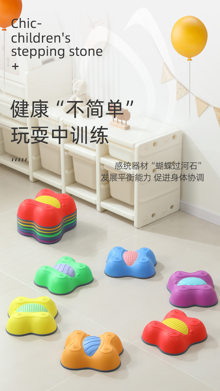 Fábrica de fuentes jardín de infantes al aire libre juguetes para niños equipos de entrenamiento de sensación de piedra pisoteada a través del río piedra al por mayor