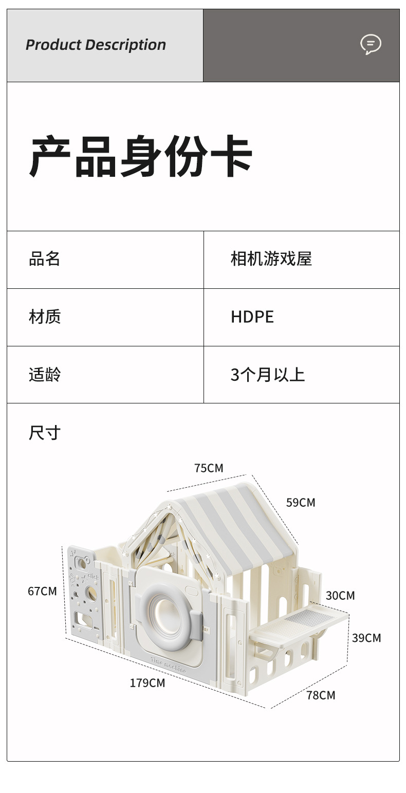 | Categoría | Casa de juego de plástico/madera |