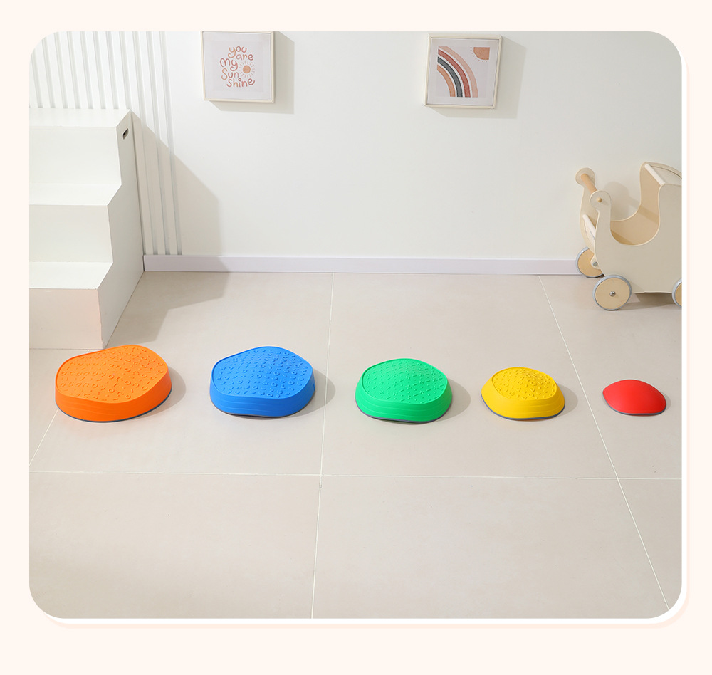 Juguetes para niños al por mayor equipos deportivos de entrenamiento sensorial para jardín de infantes ayuda de enseñanza anti-deslizante arco iris a través del río piedra
