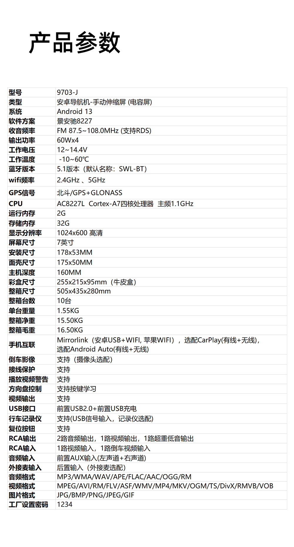 Función eléctrica retráctil (carplay) AHD (sin cámara)
