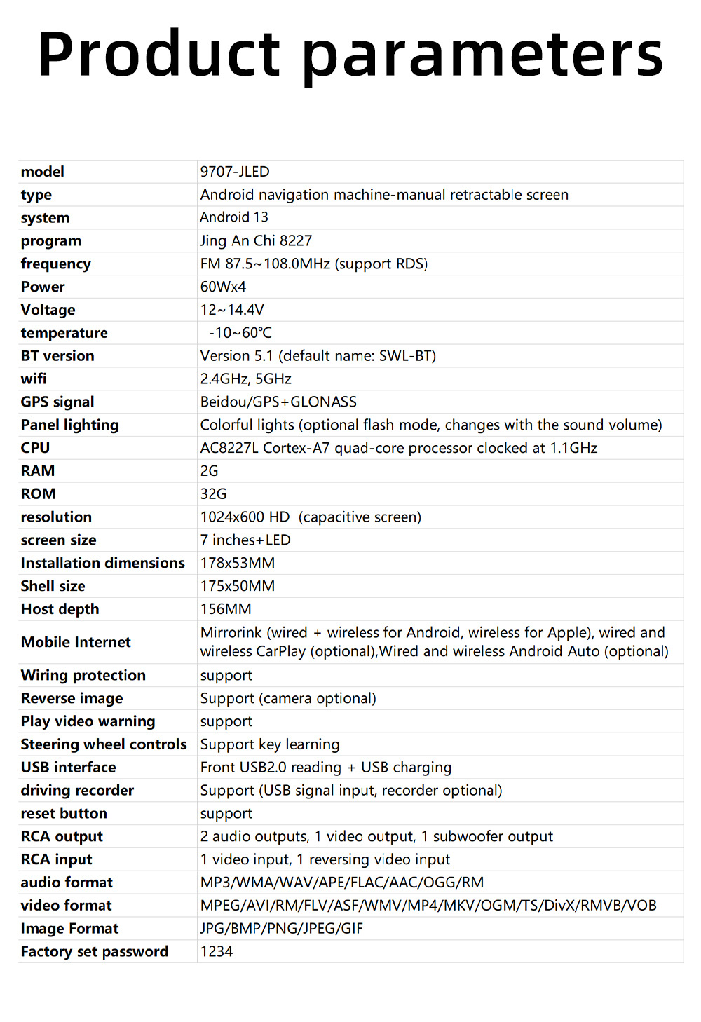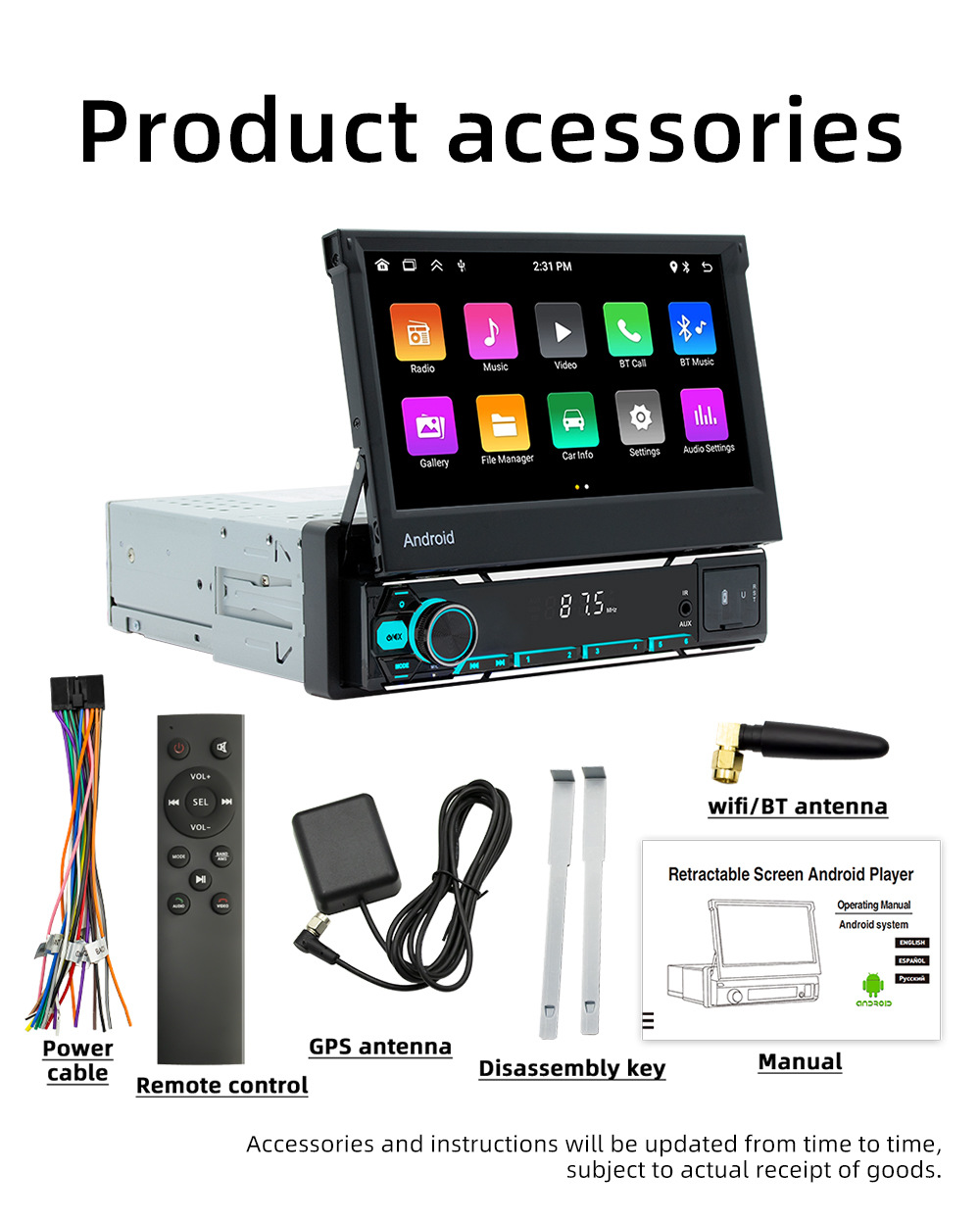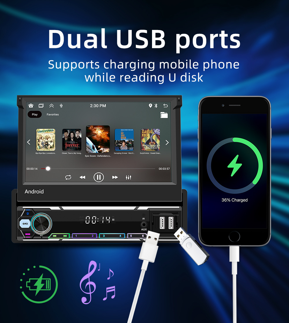 7 pulgadas inalámbrico carplay coche pantalla retráctil coche Android GPS navegador inteligente Bluetooth marcha atrás vista trasera todo-en-una máquina