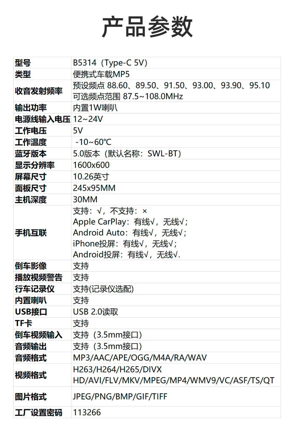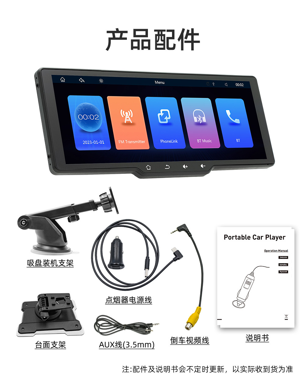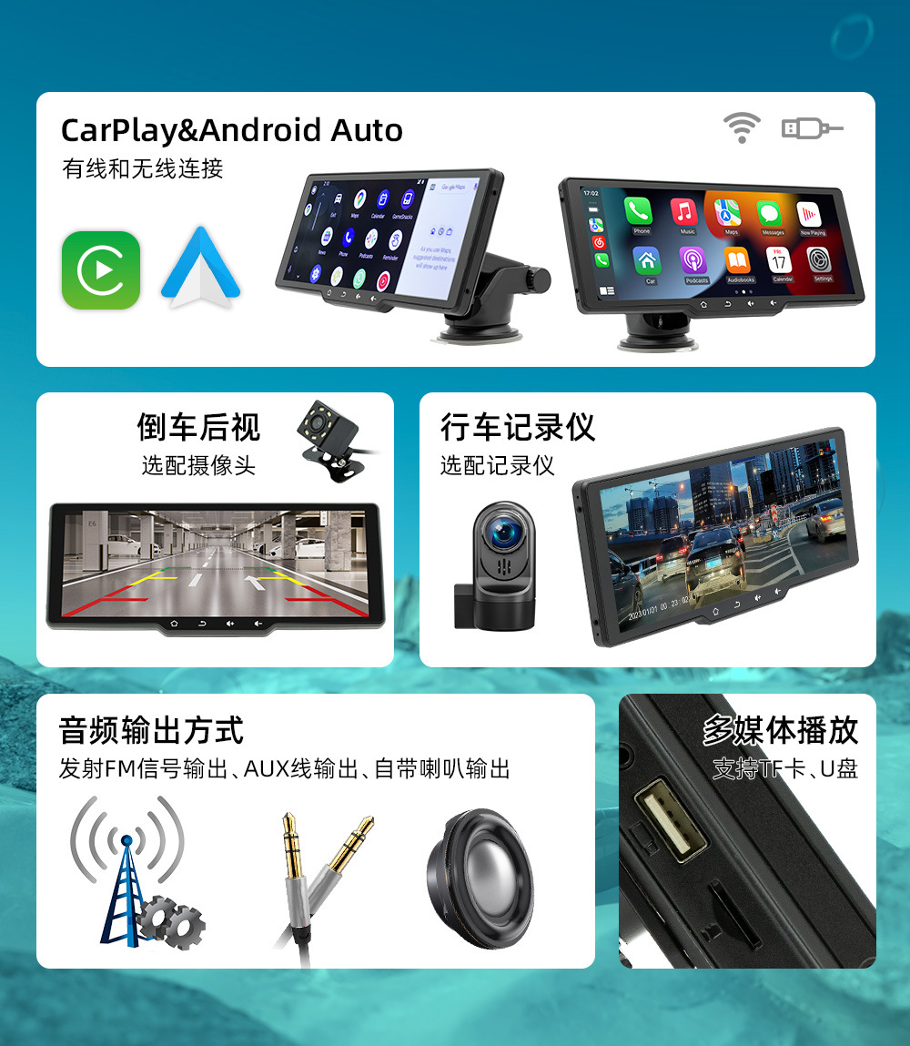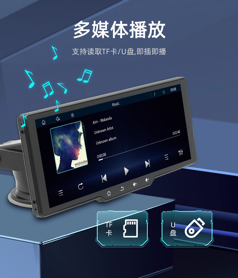 Transfronterizo nuevo 10,26 pulgadas coche MP5 reproductor HD portátil inalámbrico carplay grabadora de conducción