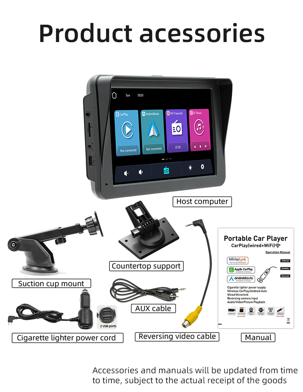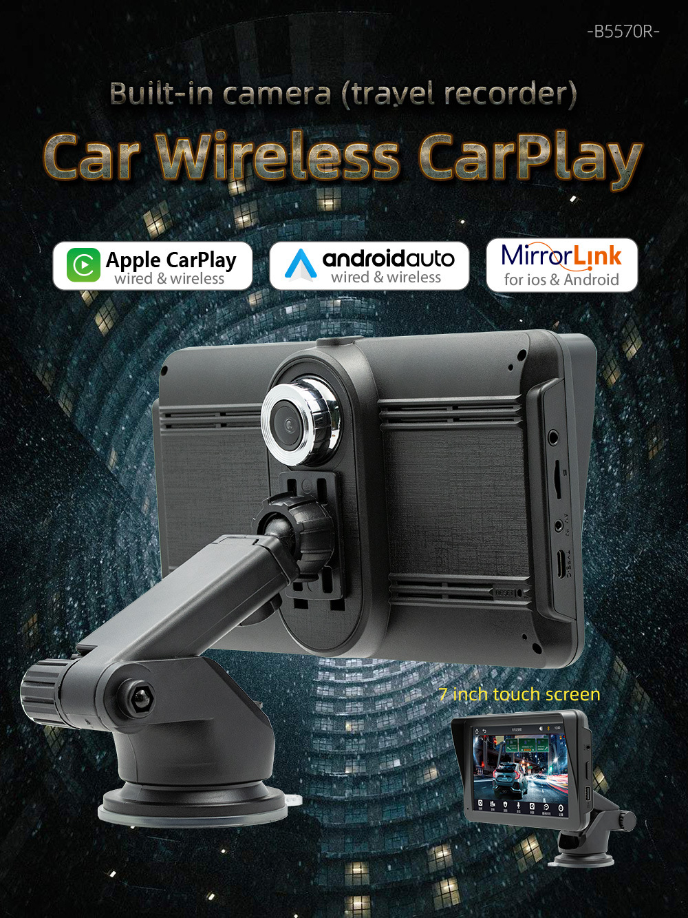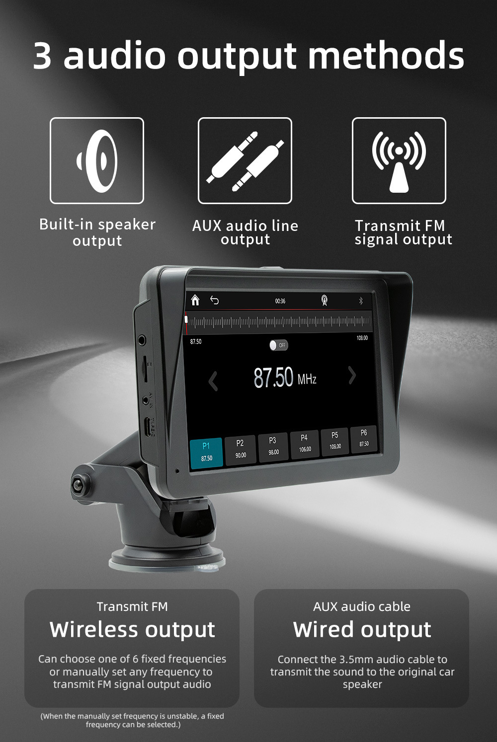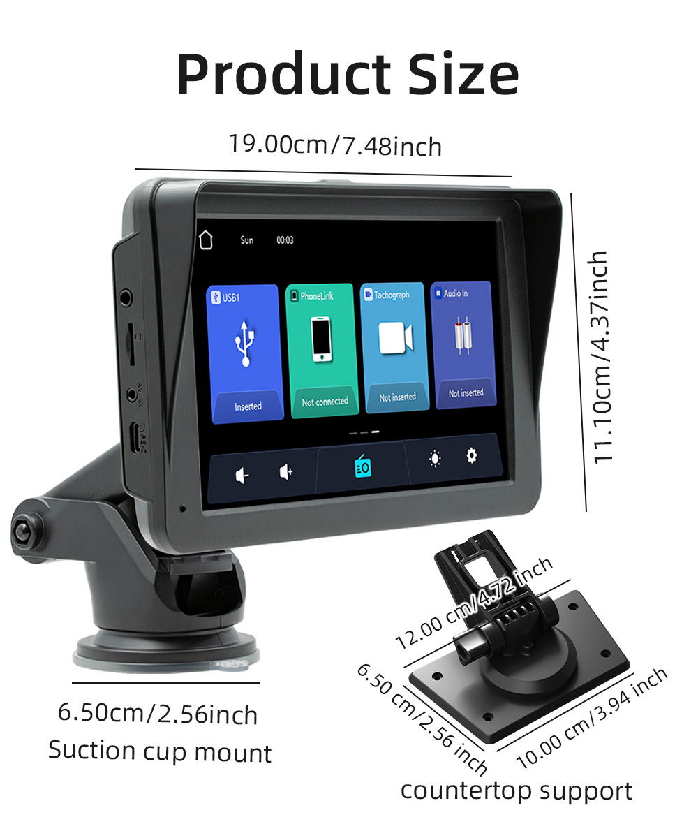 Carplay inalámbrico portátil de 7 pulgadas coche MP5 reproductor Bluetooth FM transmisor de control central de conducción grabadora