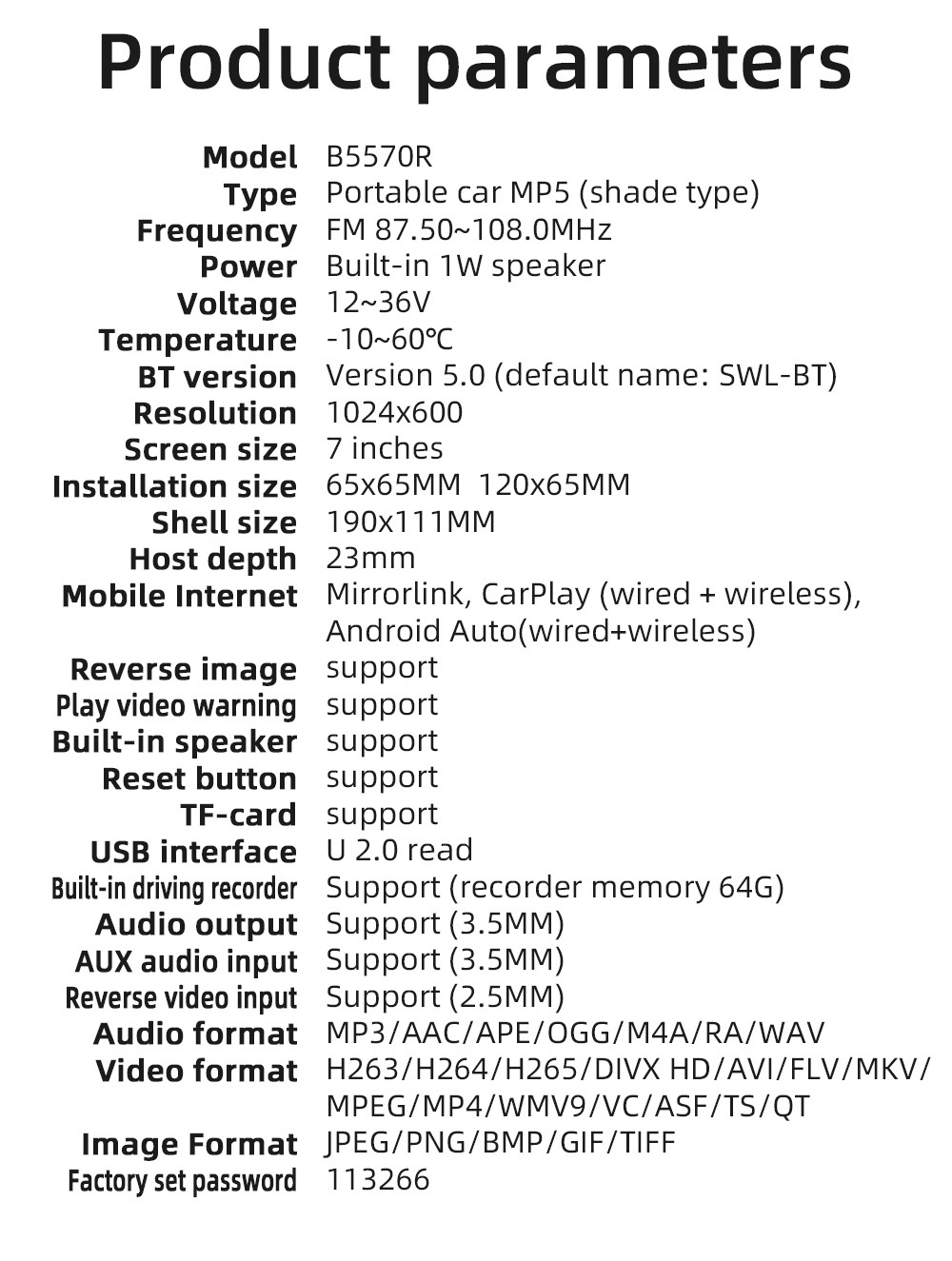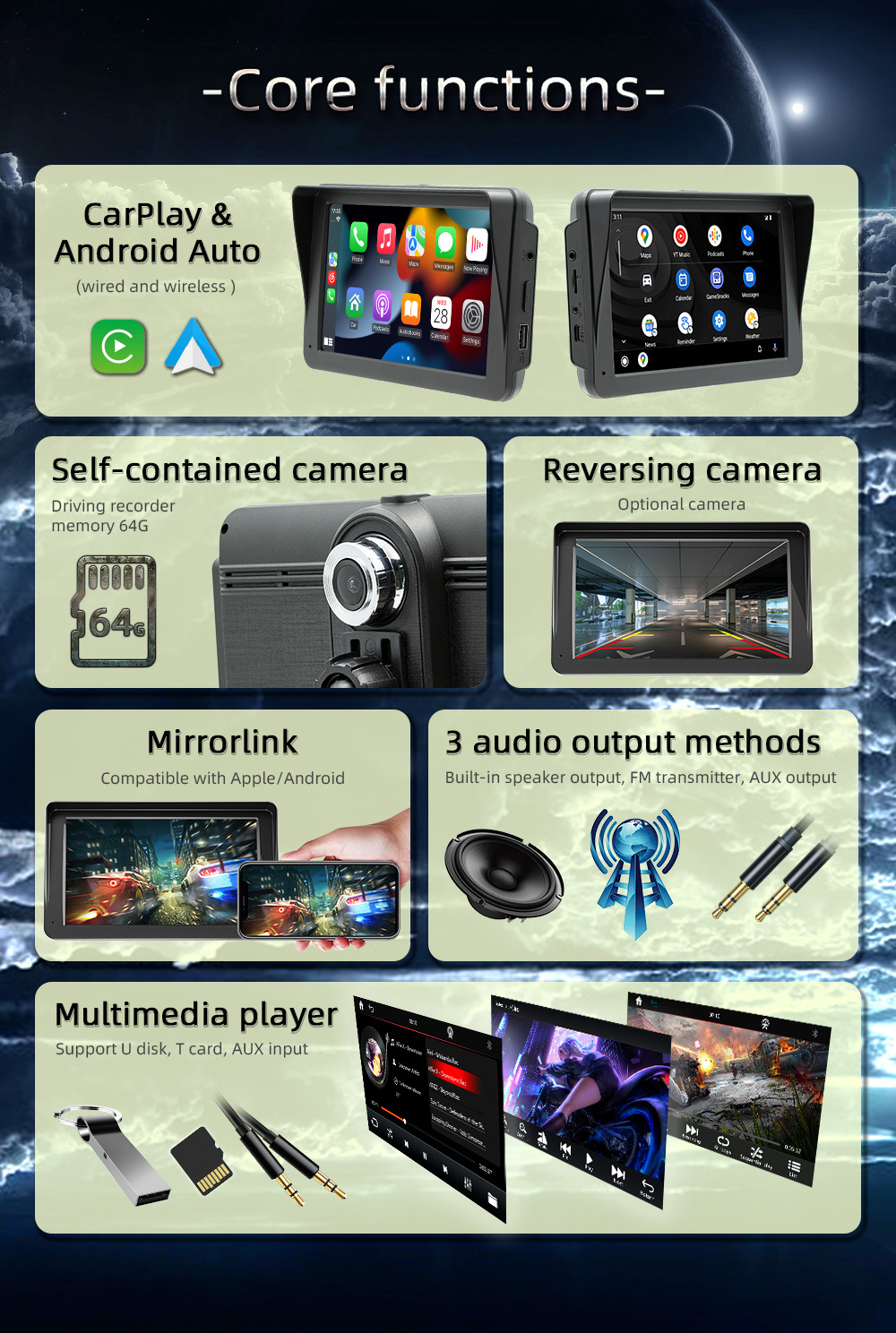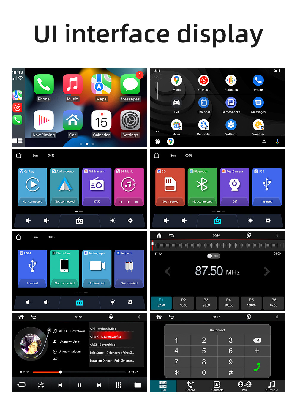 Carplay inalámbrico portátil de 7 pulgadas coche MP5 reproductor Bluetooth FM transmisor de control central de conducción grabadora
