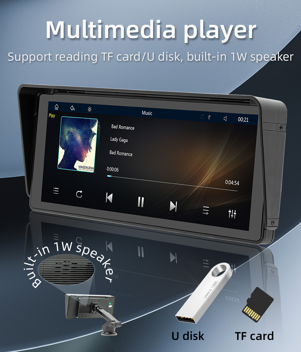 10,2 pulgadas coche Bluetooth MP5 reproductor parasol coche portátil transmisor FM inalámbrico carplay