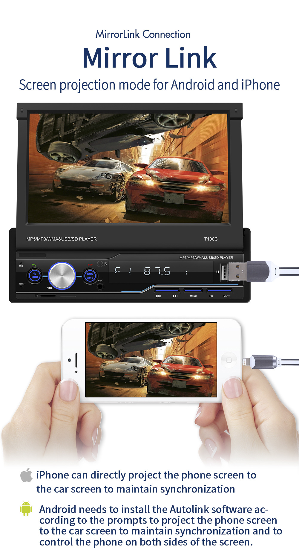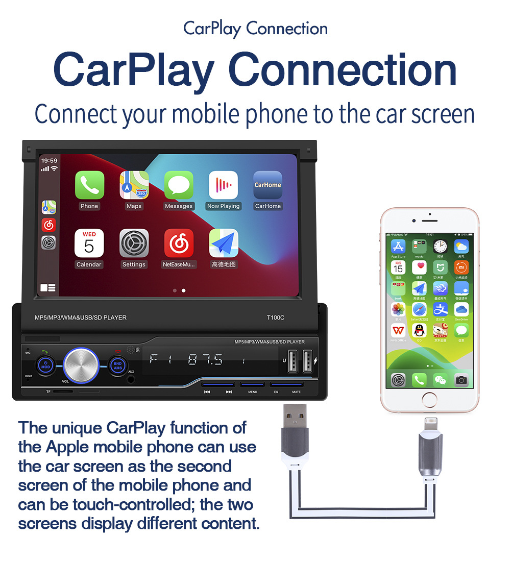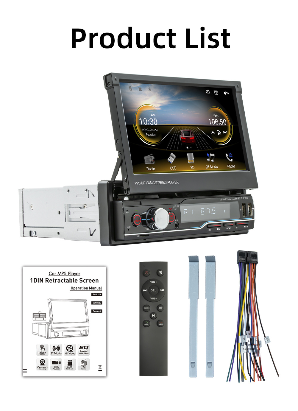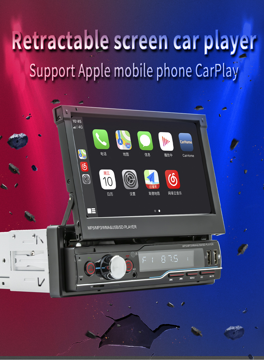 Venta caliente transfronteriza 7 pulgadas coche MP5 tarjeta reproductor USB multifunción pantalla retráctil coche navegación Carplay