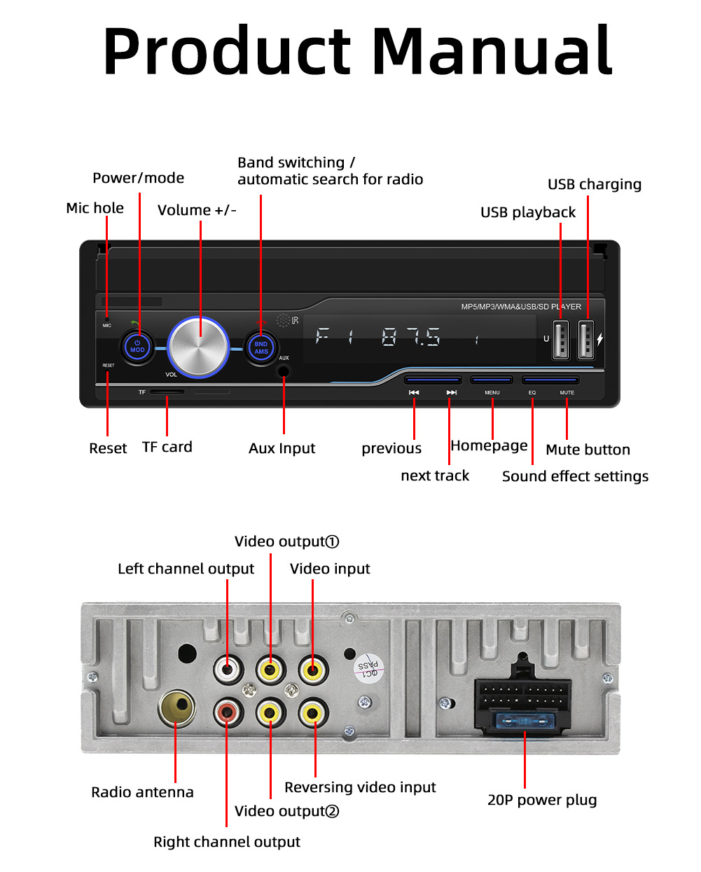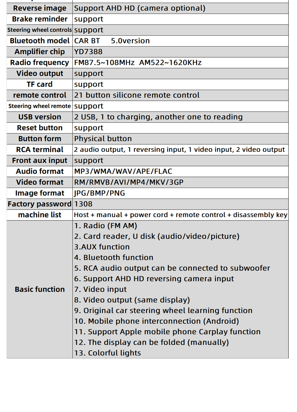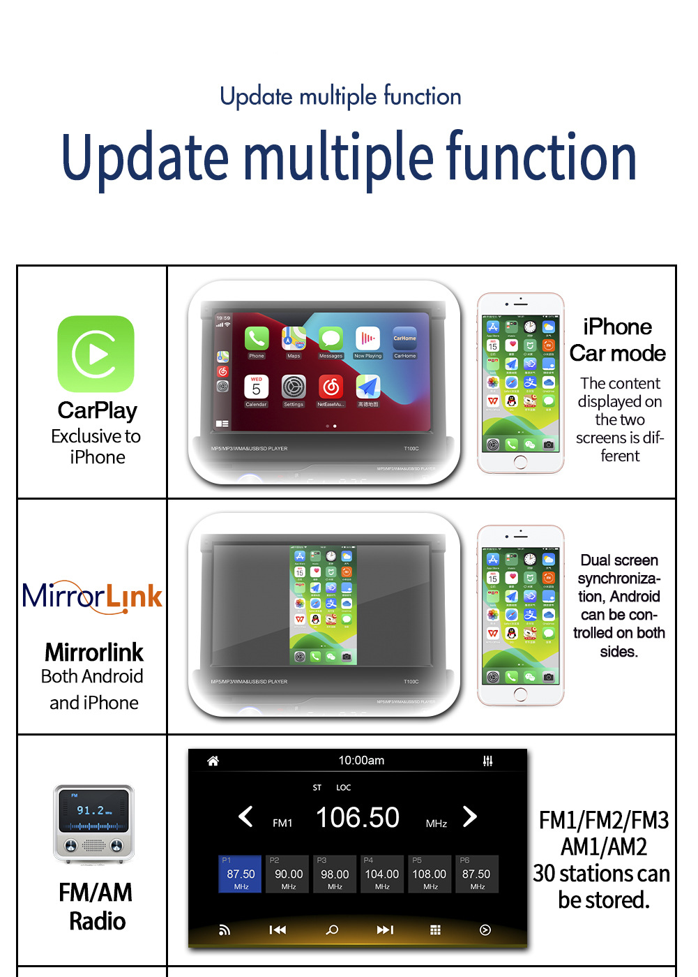 Venta caliente transfronteriza 7 pulgadas coche MP5 tarjeta reproductor USB multifunción pantalla retráctil coche navegación Carplay