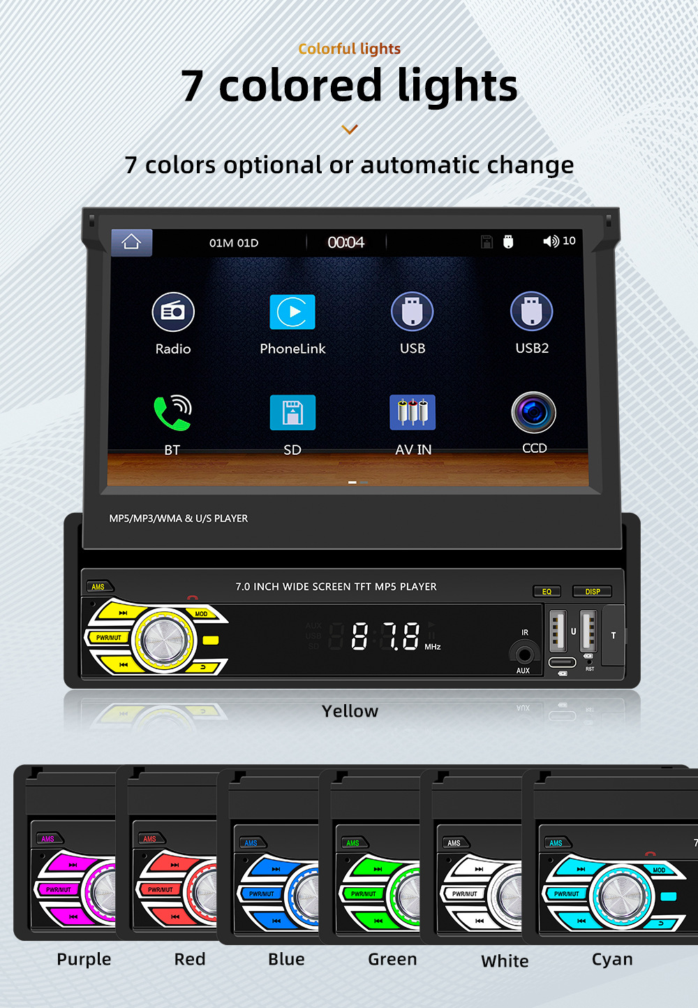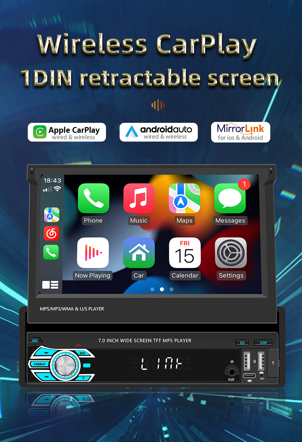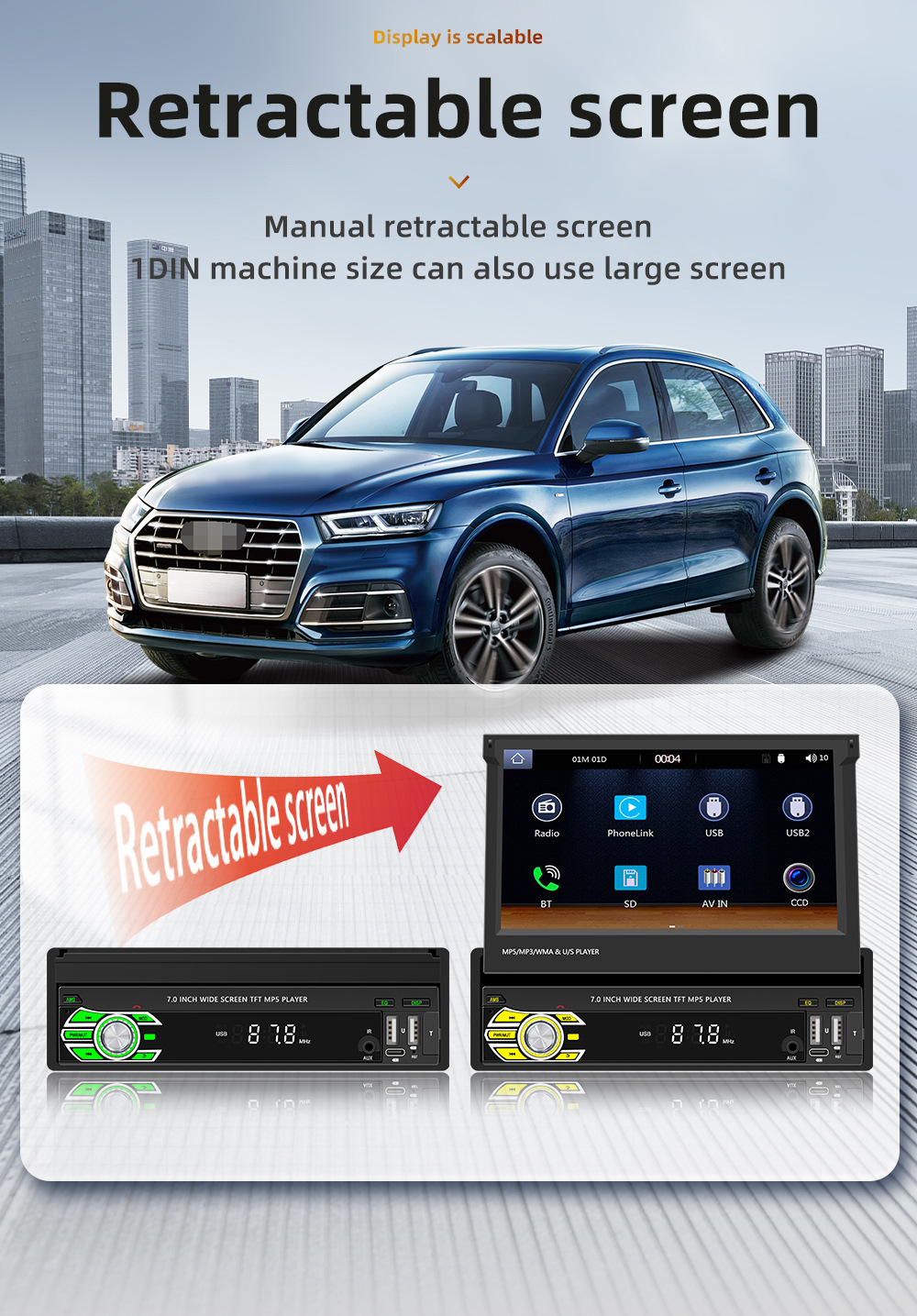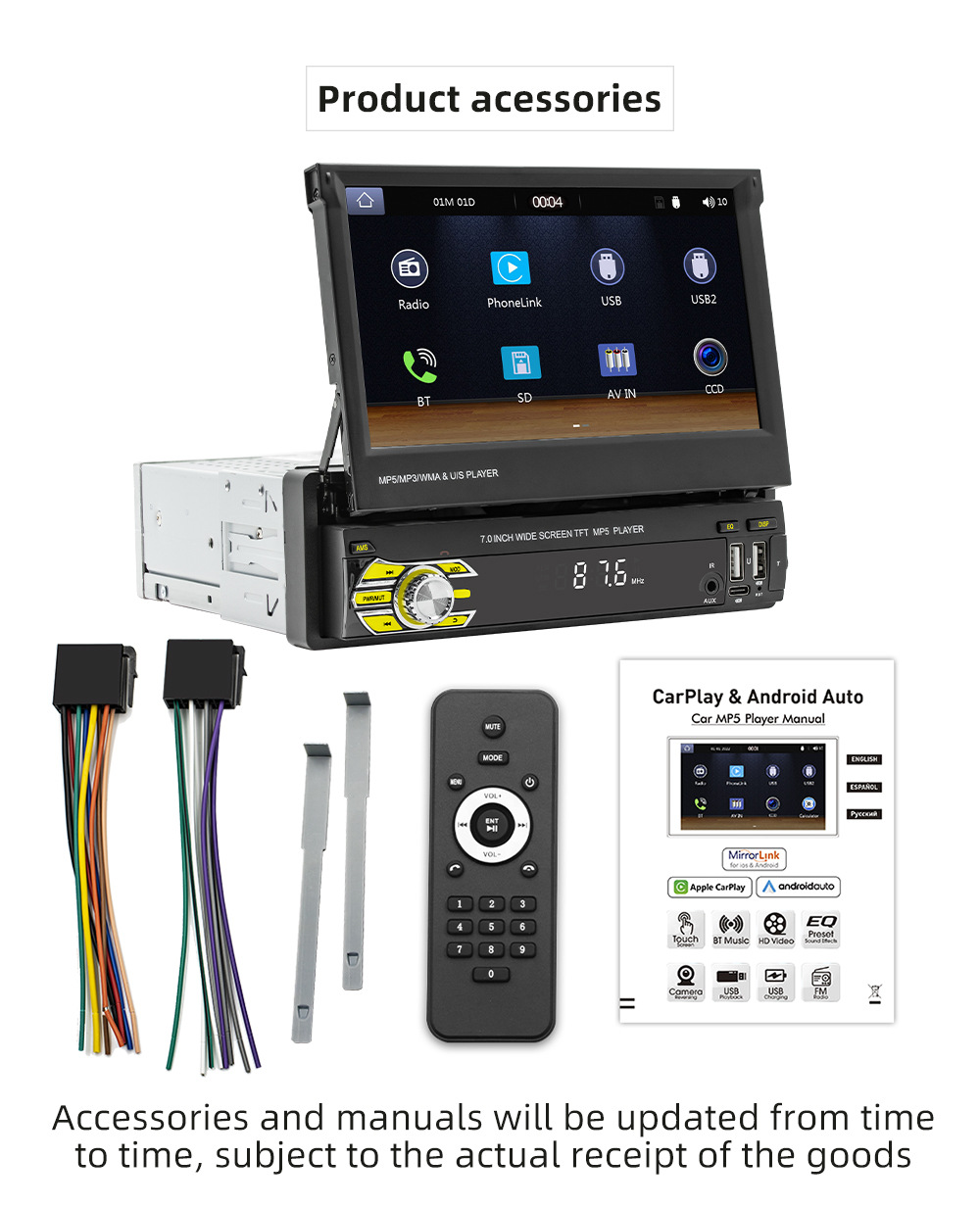 Transfronterizo nuevo 7 pulgadas de un solo husillo pantalla telescópica coche MP5 reproductor Bluetooth revertir la interconexión Carplay inalámbrico