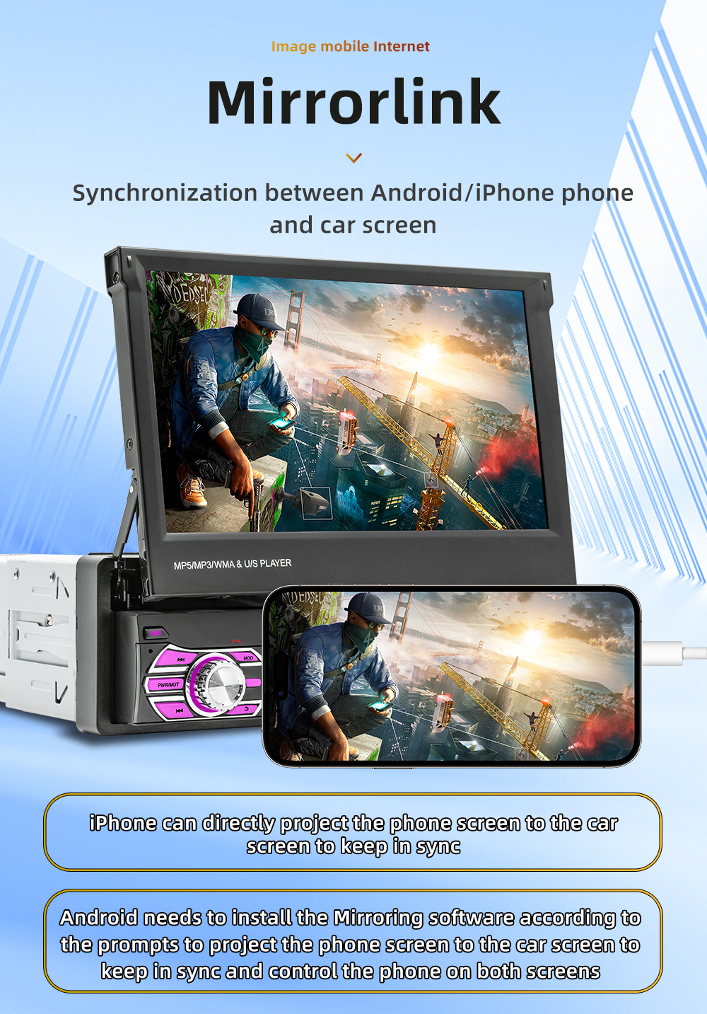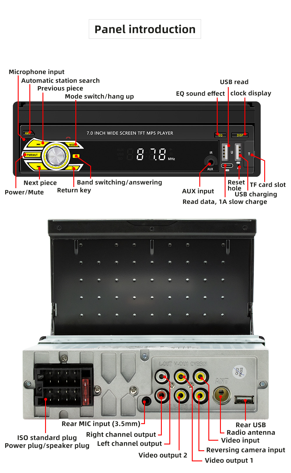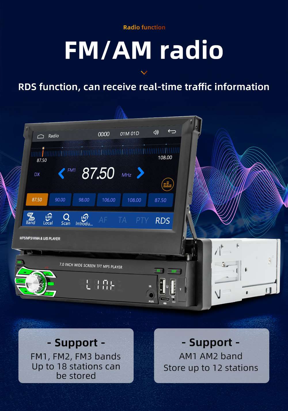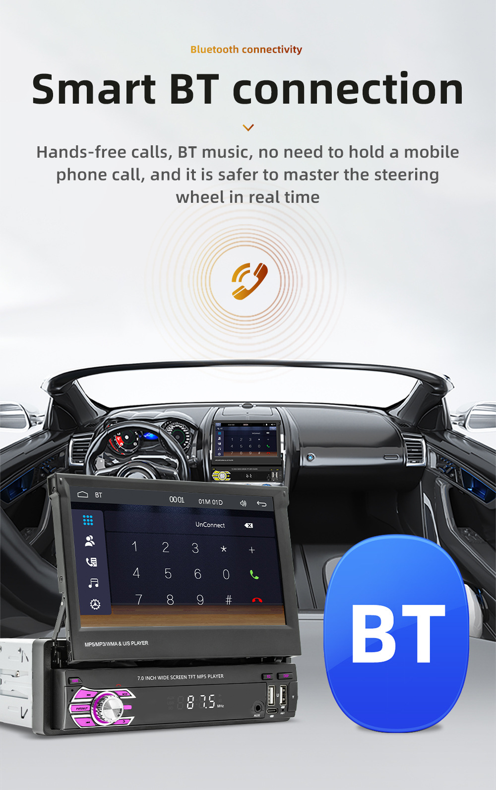 Transfronterizo nuevo 7 pulgadas de un solo husillo pantalla telescópica coche MP5 reproductor Bluetooth revertir la interconexión Carplay inalámbrico