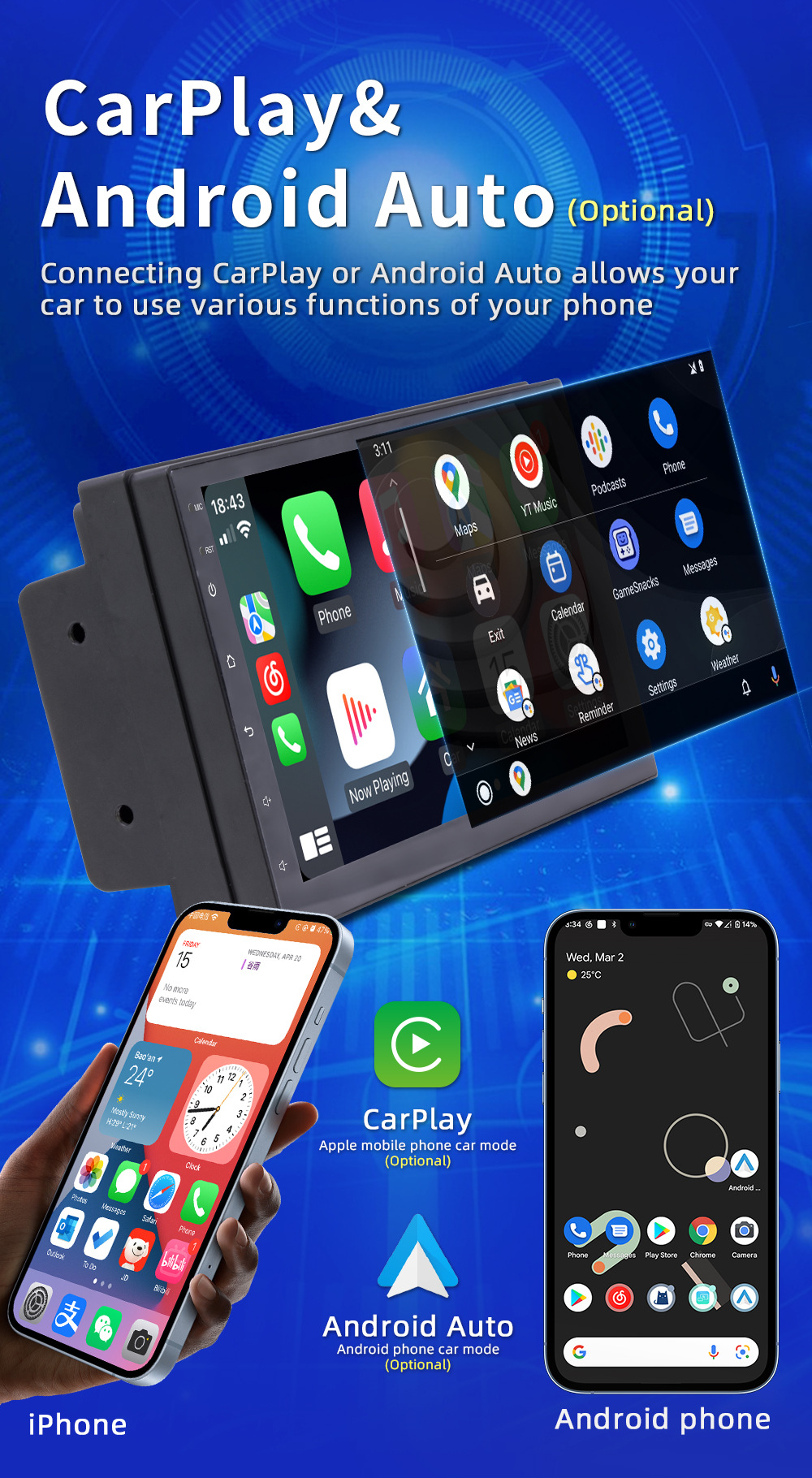 7 pulgadas universal HD pantalla grande coche Bluetooth radio teléfono móvil interconexión coche GPS Android navegación carplay