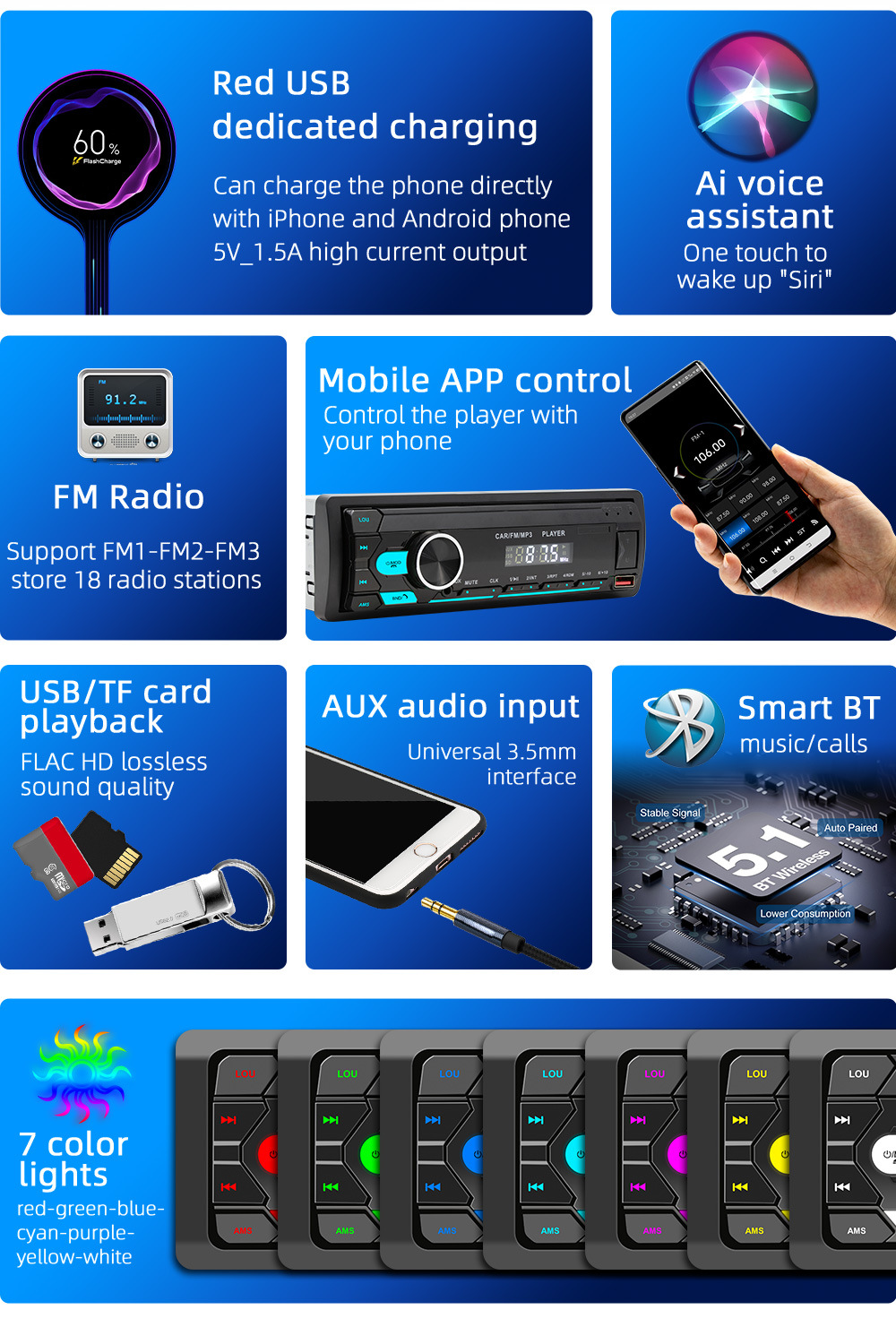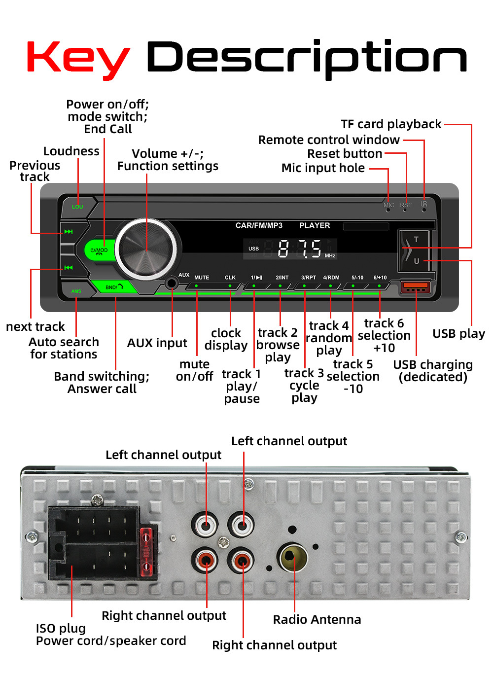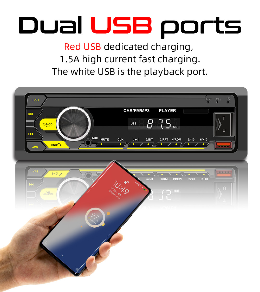 Nuevo producto para automóvil reproductor de MP3 Bluetooth tarjeta manos libres U disco audio para automóvil radio máquina multifunción