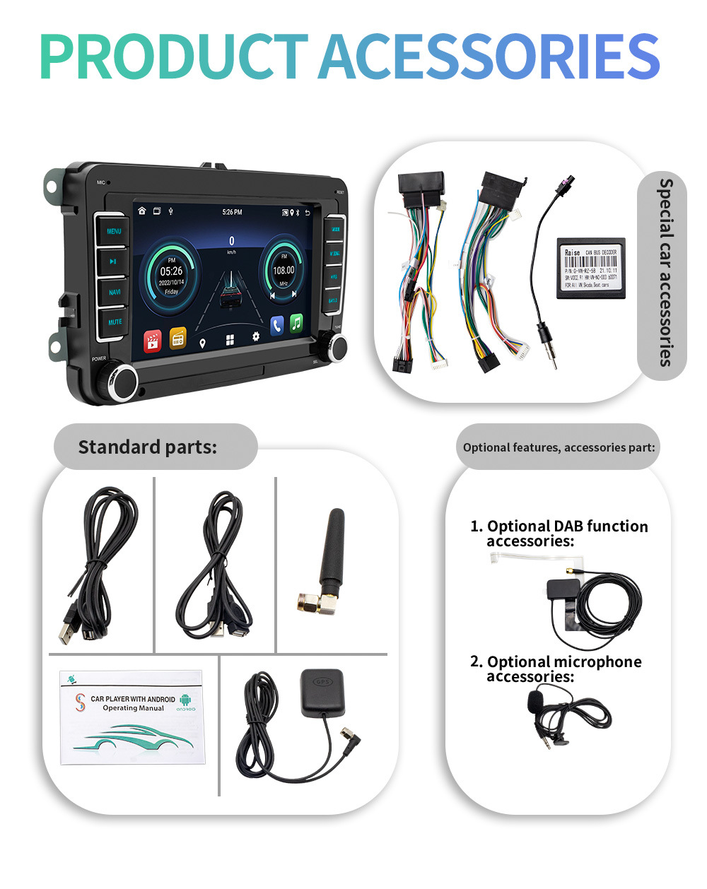 Máquina toda junta androide de la navegación GPS del coche del jugador del Bluetooth del coche 7-inch PARA EL carplay inalámbrico de Volkswagen