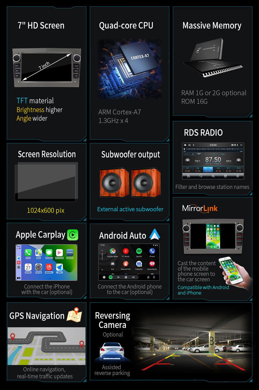 Navegación multifuncional Carplay inalámbrico del audio y del vídeo del coche del jugador del coche MP5 de 7 pulgadas para la serie del coche del Opel