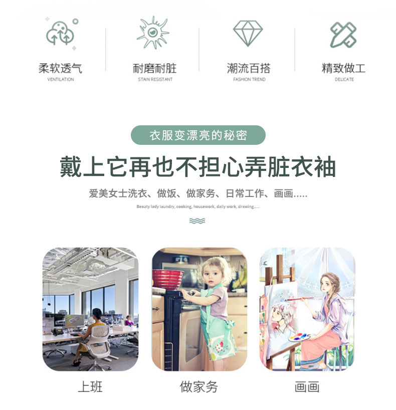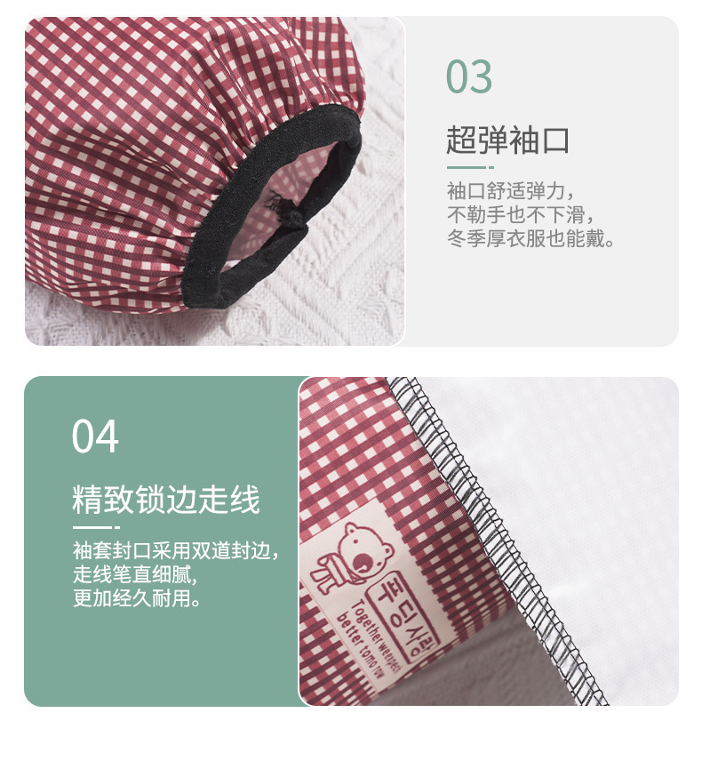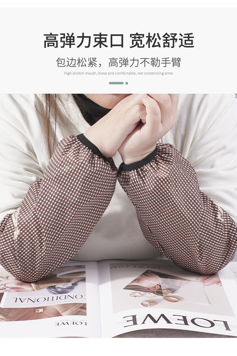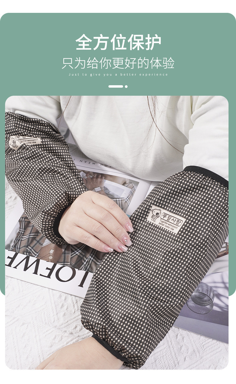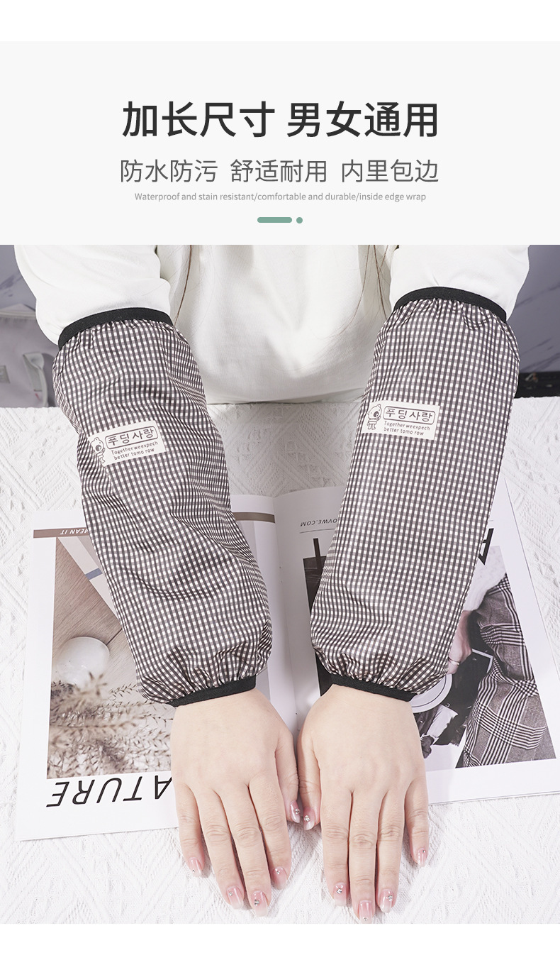 Nuevo estilo a cuadros mangas impermeables para mujer mangas de moda largas mangas para el hogar anti-aceite mangas para adultos y estudiantes al por mayor