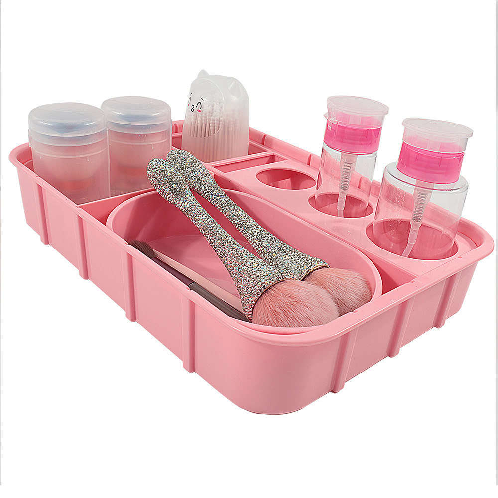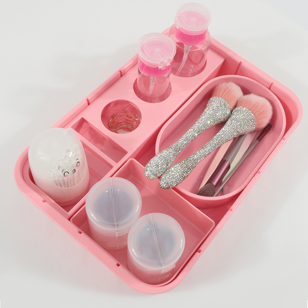 Nuevo juego de placa de trabajo rosa bandeja de joyería de acero inoxidable herramientas de uñas cosméticos bandeja de almacenamiento de metal