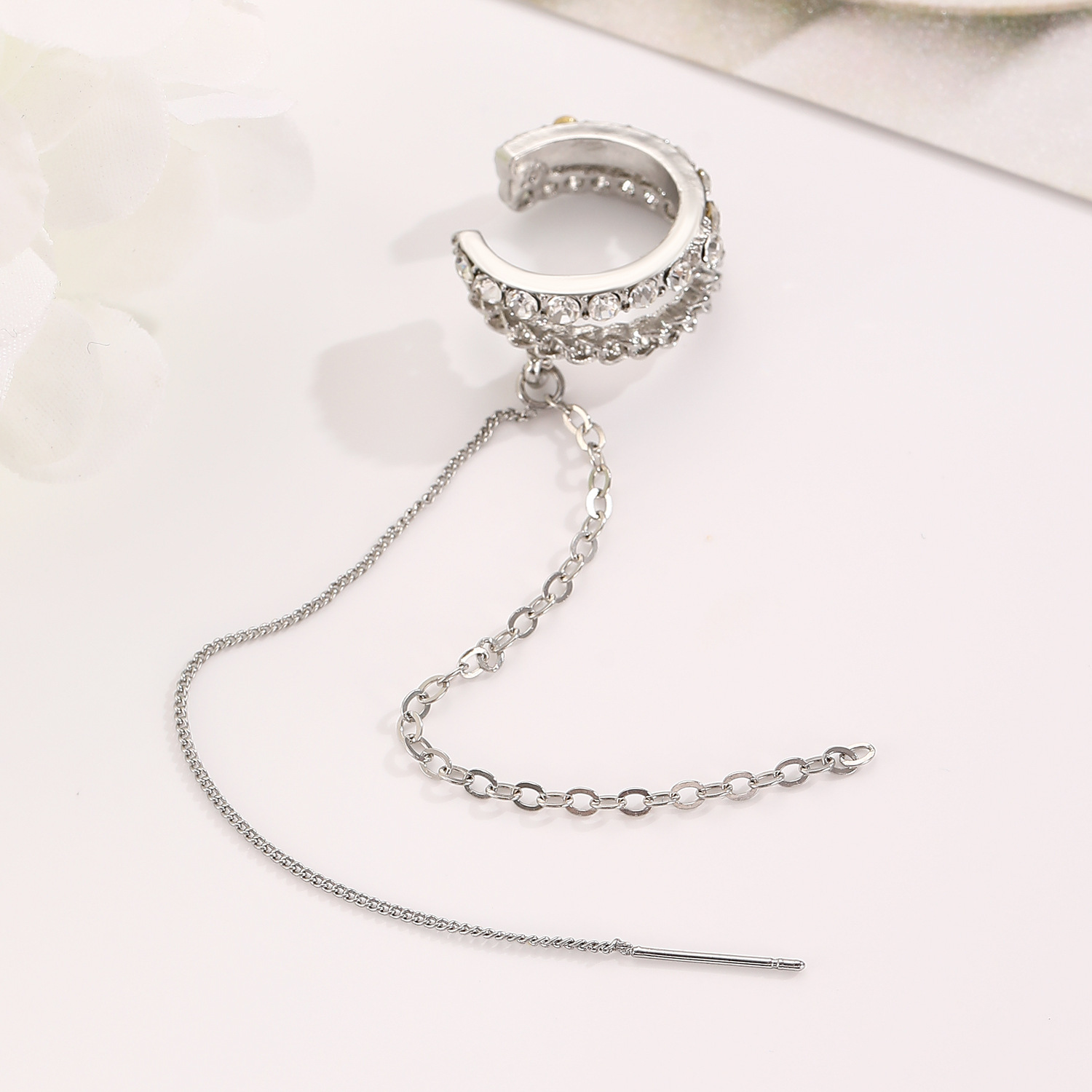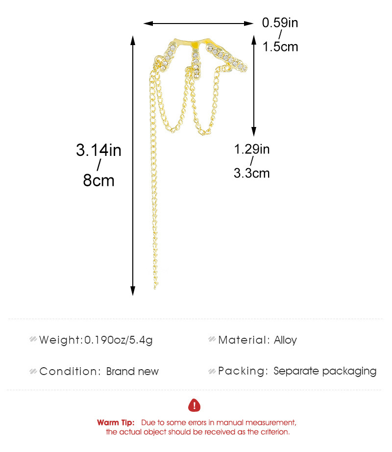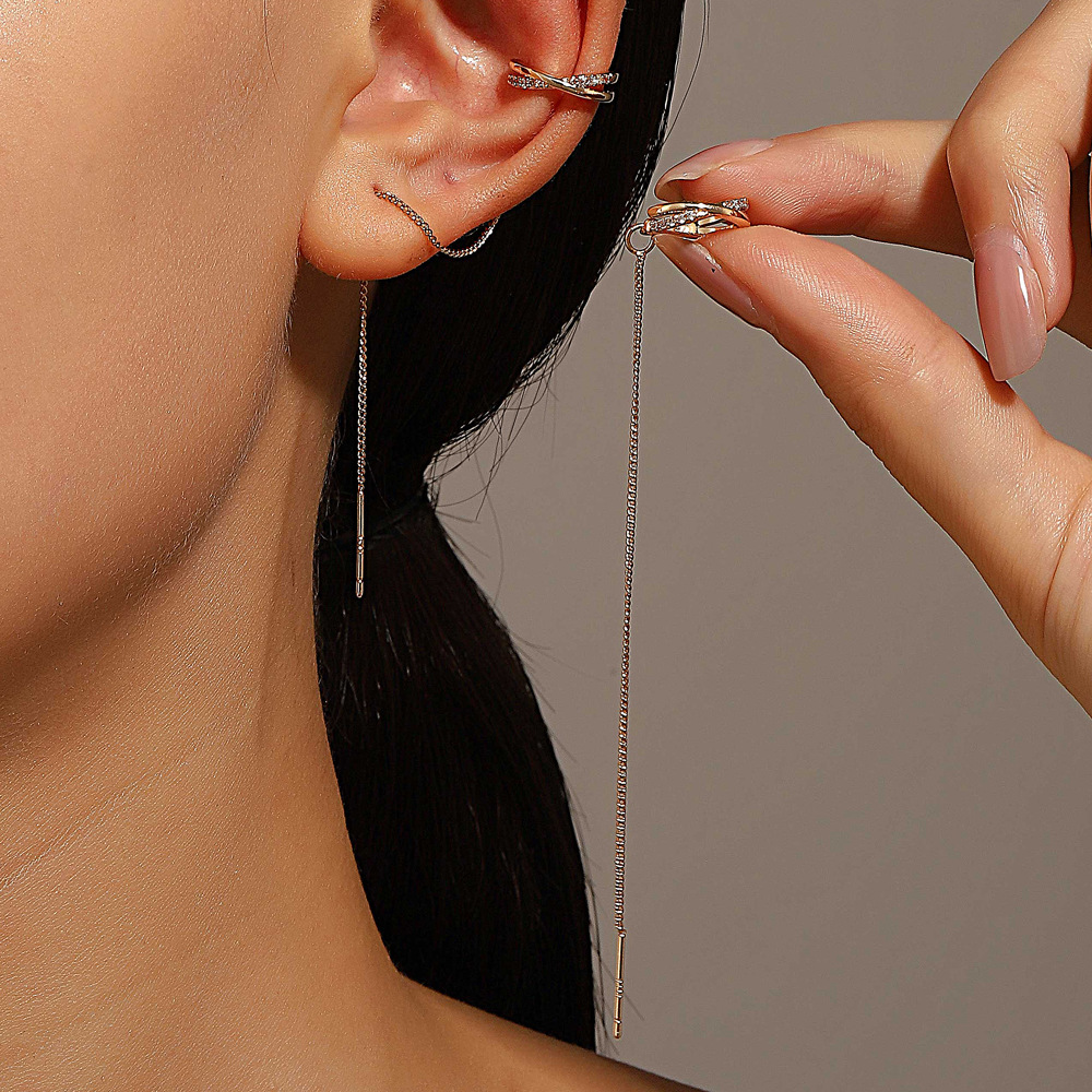 Europa y América ins simple clip de oreja de elfo sin orejas perforadas diseño de nicho de temperamento de moda borla de cadena larga clip de hueso de oreja