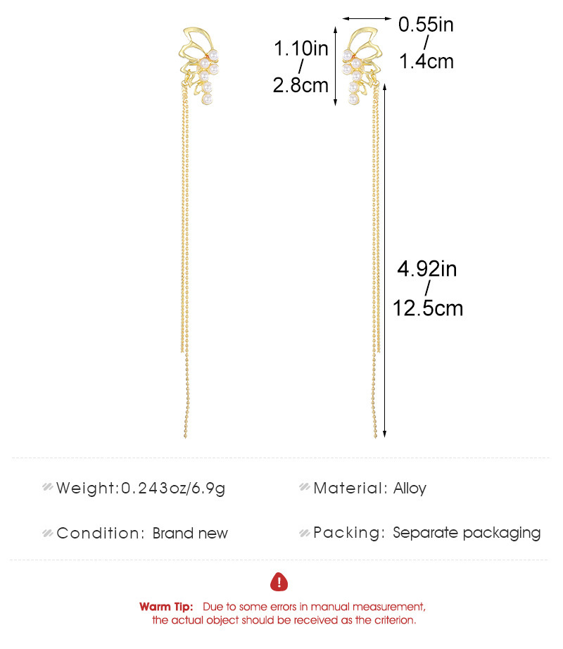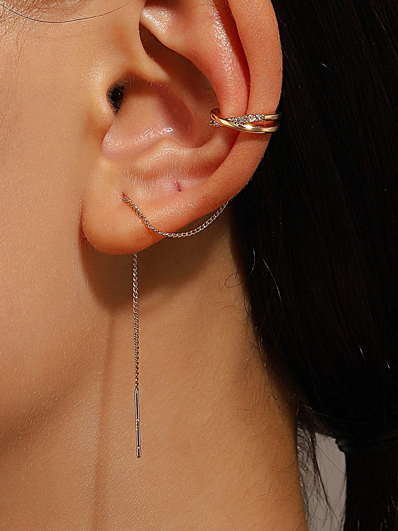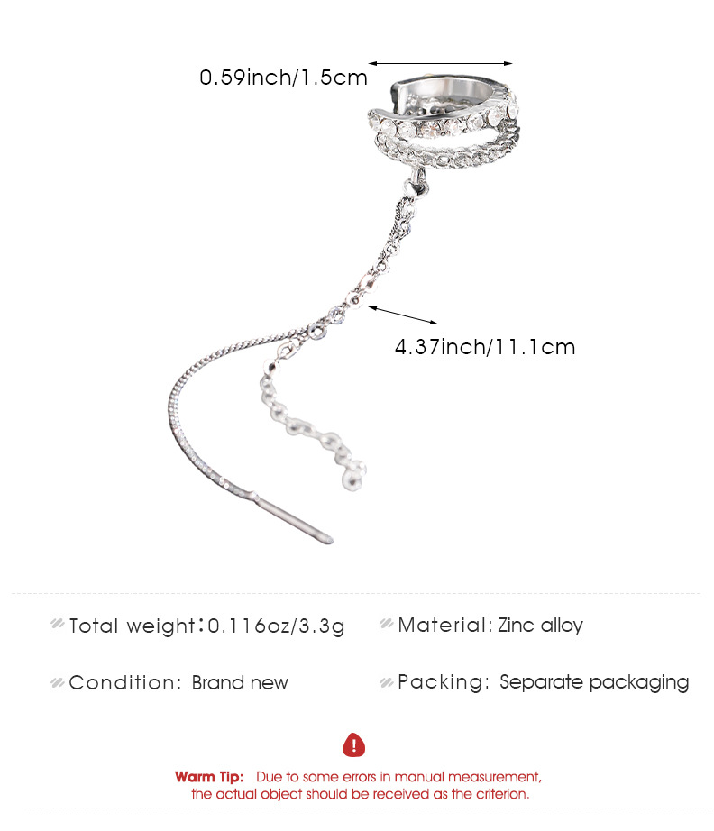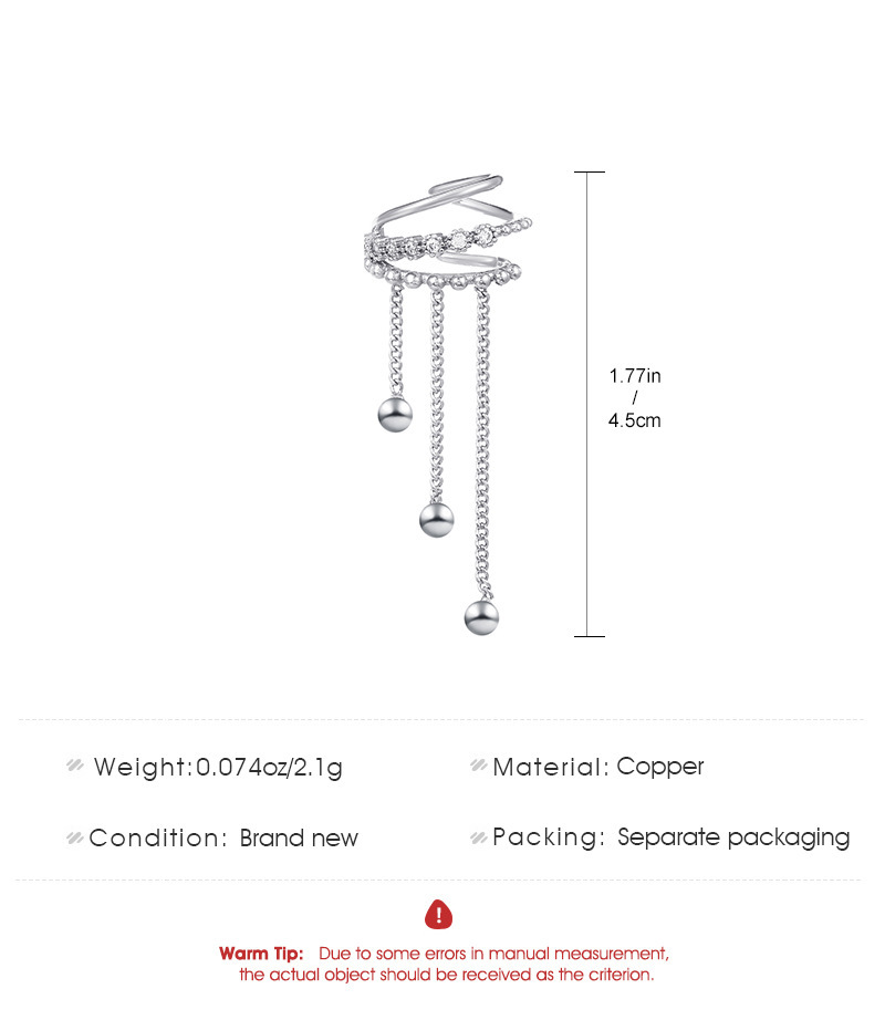 Europa y América ins simple clip de oreja de elfo sin orejas perforadas diseño de nicho de temperamento de moda borla de cadena larga clip de hueso de oreja