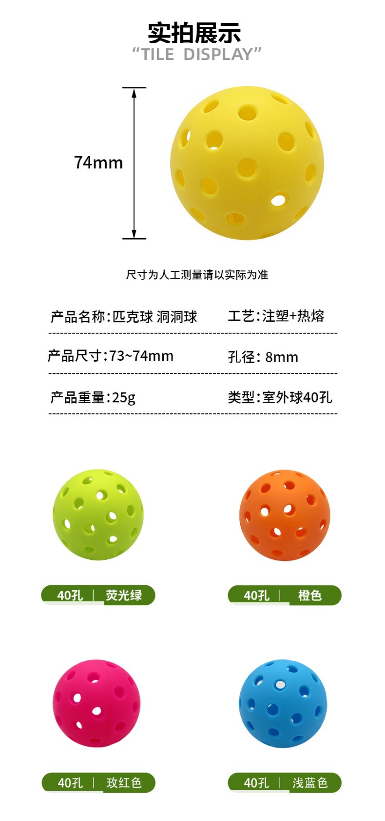 Pickleballs 26 agujeros 40 agujeros TPE inyección moldeado interior y exterior competencia profesional fábrica directa