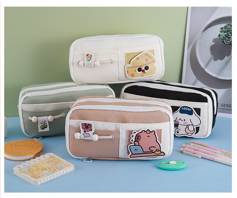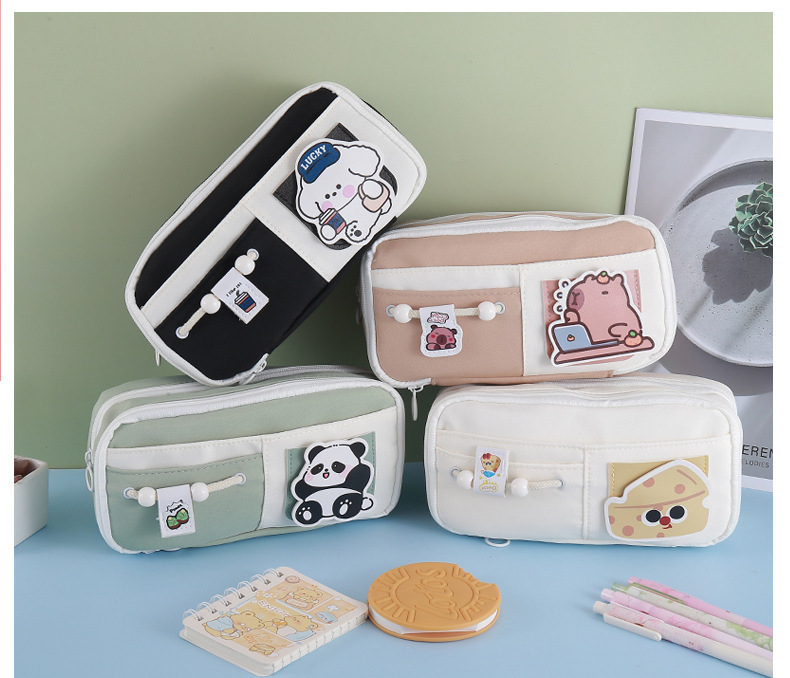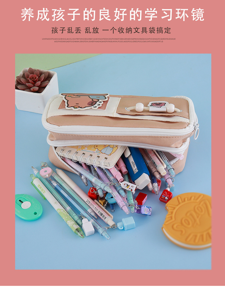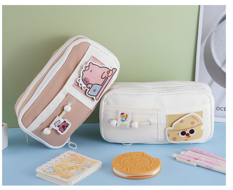Bolsa de bolígrafo de queso oso grande capacidad de alto valor facial nicho no decoración bordada caja de papelería de niñas almacenamiento