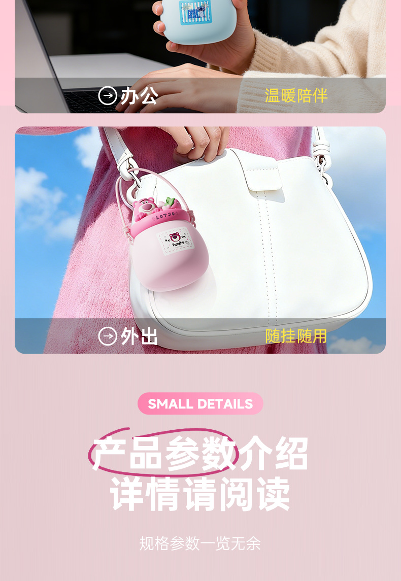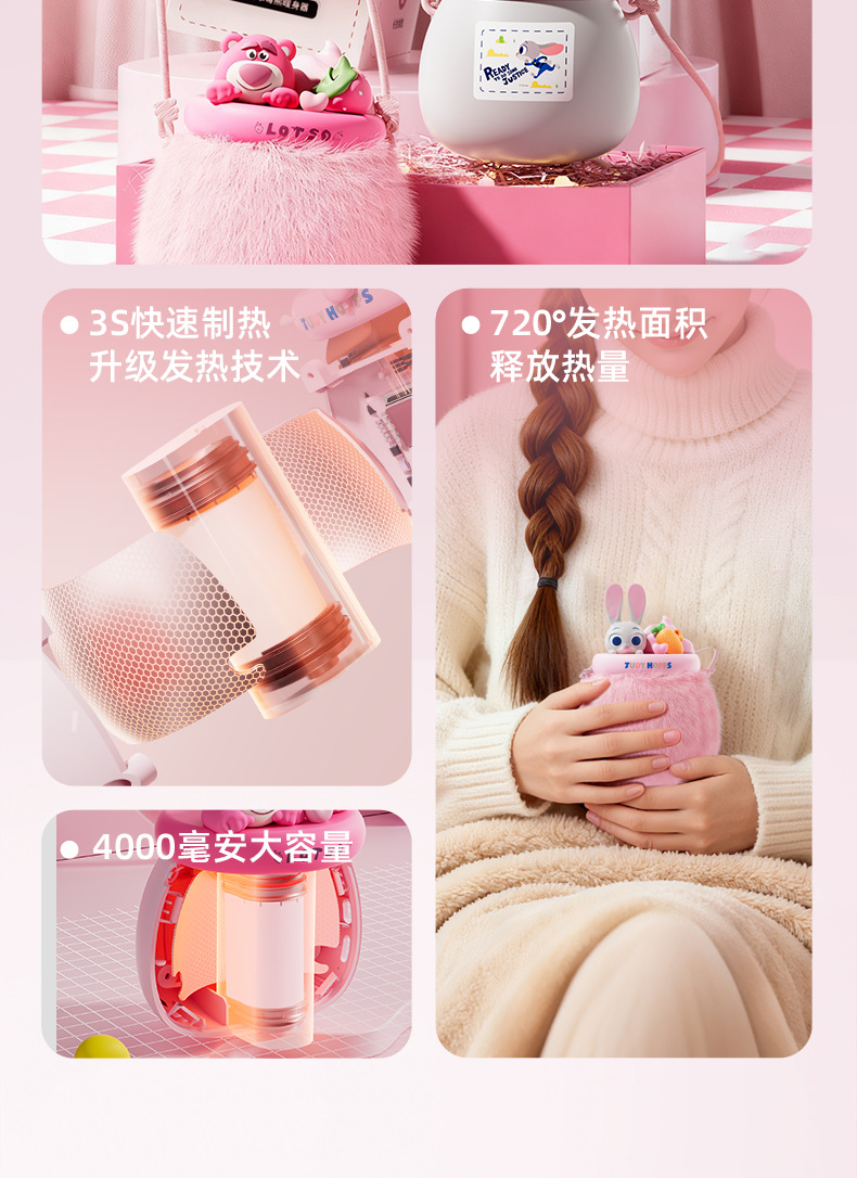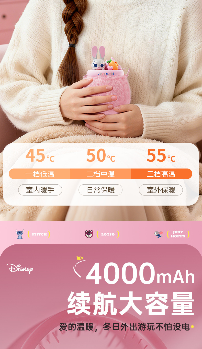 Disney calentador de manos recargable fresa oso Judy calentamiento automático portátil artefacto Kulomi calentador bebé