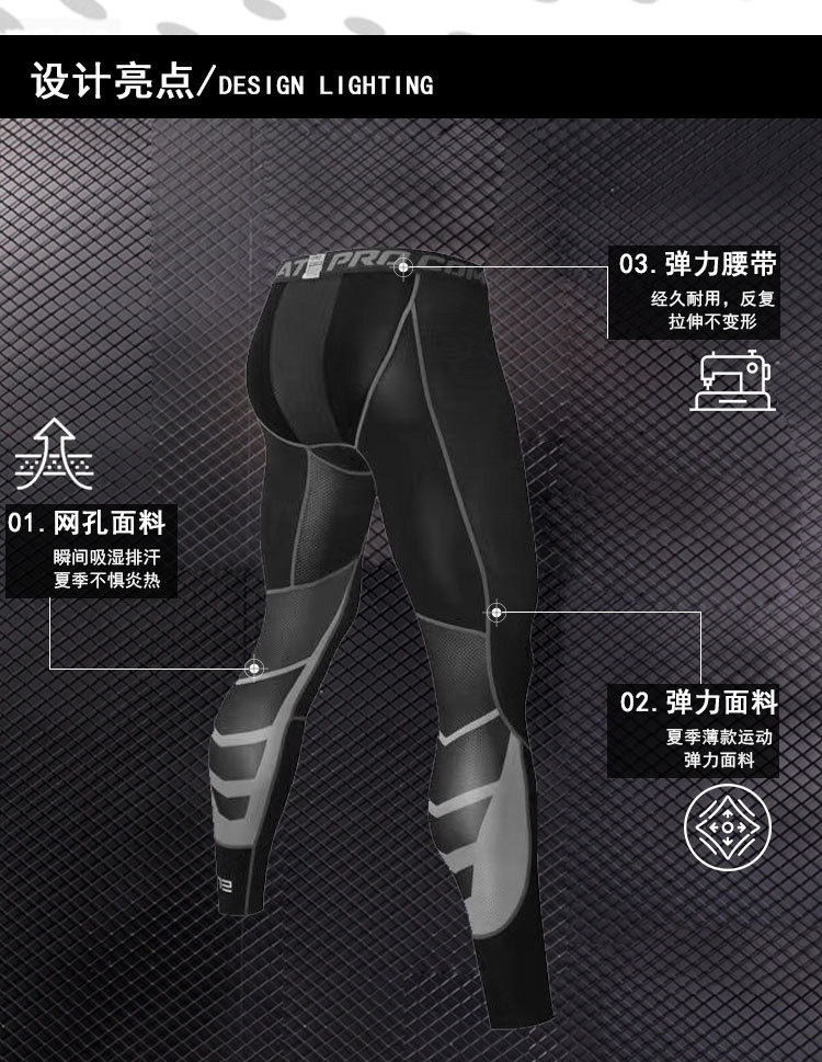 Pantalones de gimnasio para hombres de gimnasio para carreras de baloncesto impresión de pantalones apretados de nueve puntos para hombres que absorben sudor de alta velocidad elástica pantalones de compresión seca en stock